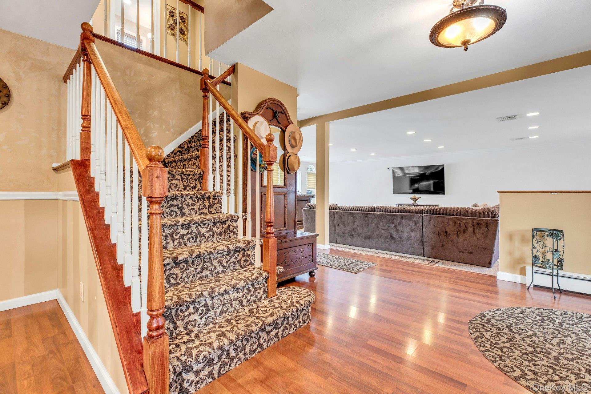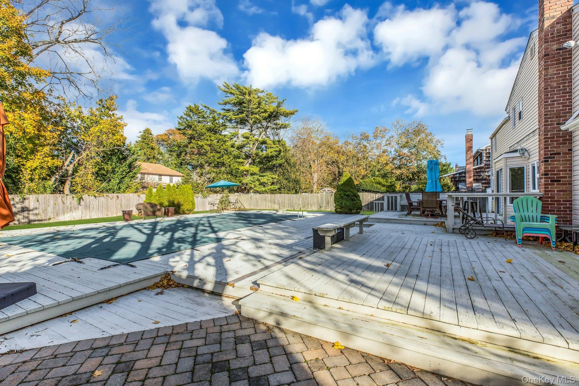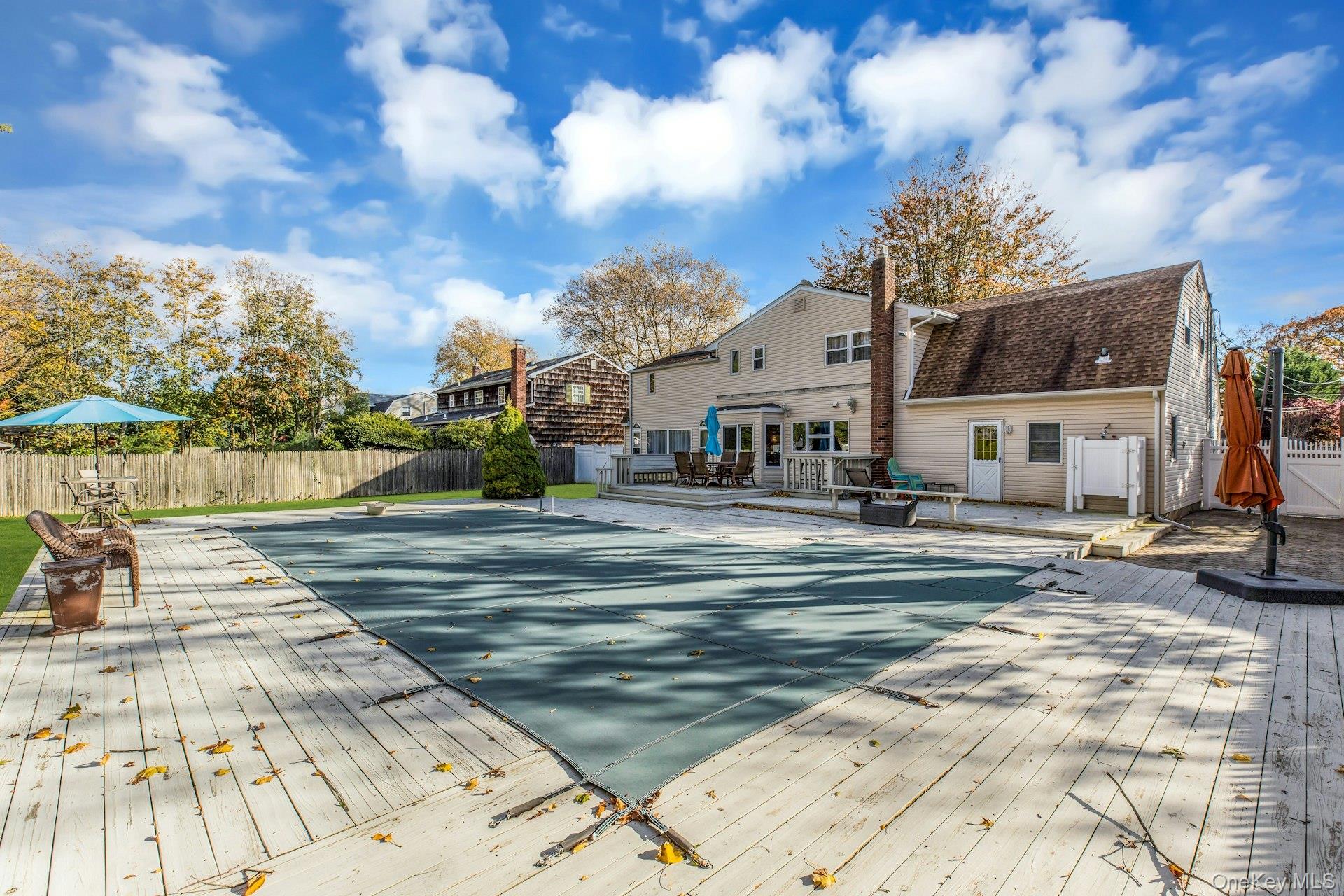 Located on one of the prettiest streets in south Islip, 27 Hollister Lane Colonial offers over 2600 Sq Ft with front & rear staircases leading you to 5 spacious bedrooms including a king-size primary en-suite. Summer months cool off in your 16' x 32' steel wall, salt water in ground pool or stay inside with your brand new ( 8/24) central air. Like to entertain? Freshly painted oversized eat in kitchen with large dining area features granite counters overlooking a super-sized living room (was 2 rooms). Main floor laundry room and updated powder room. Updated 200 AMP electric and energy efficient Sunrun leased solar panels with 23yrs remaining lease with a low monthly lease payment of $147. Ample storage with part basement and 1 1/2 car garage. Close to beautiful downtown Islip, LIRR and all major highways. This is a home you can truly never outgrow.