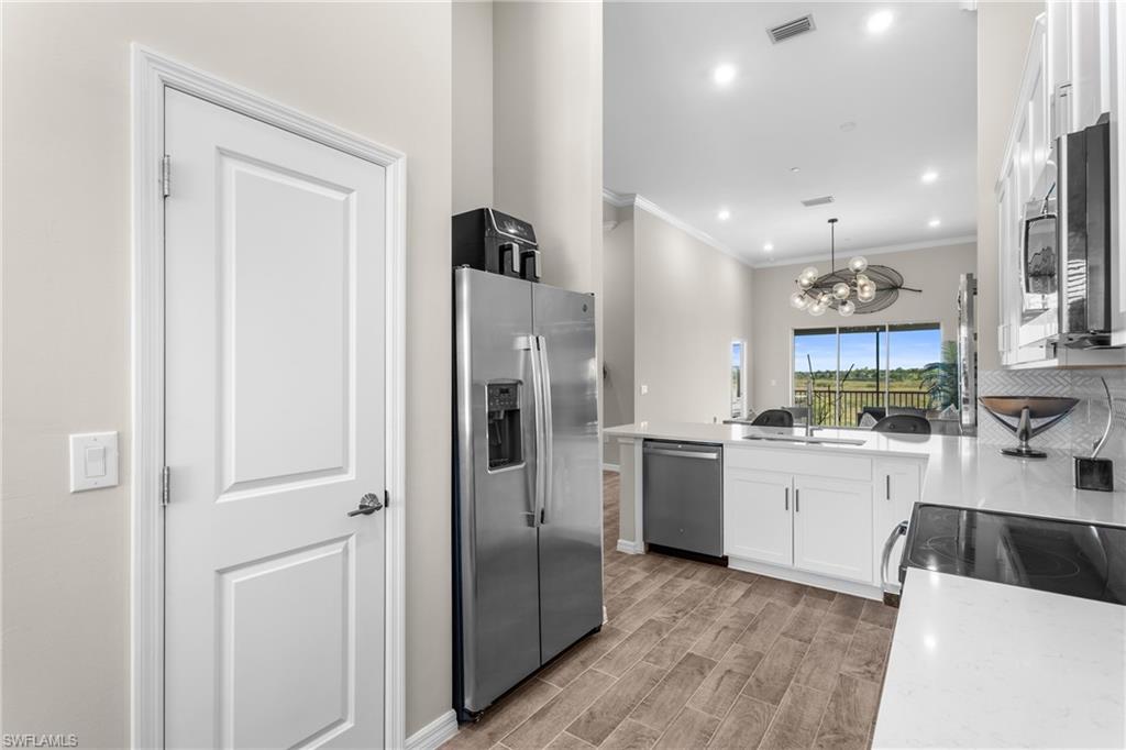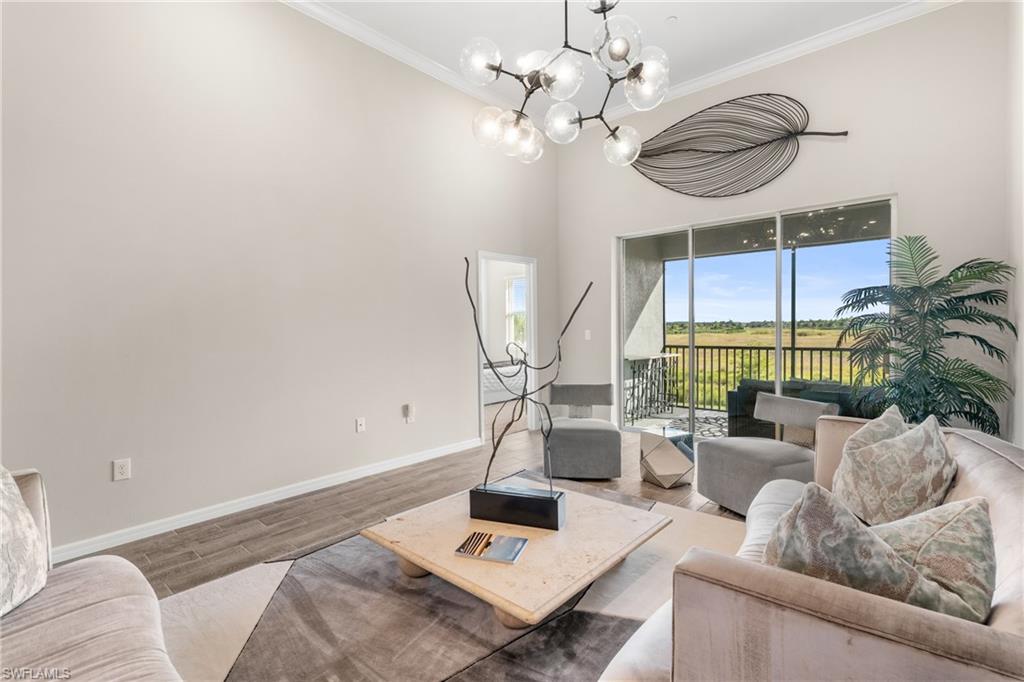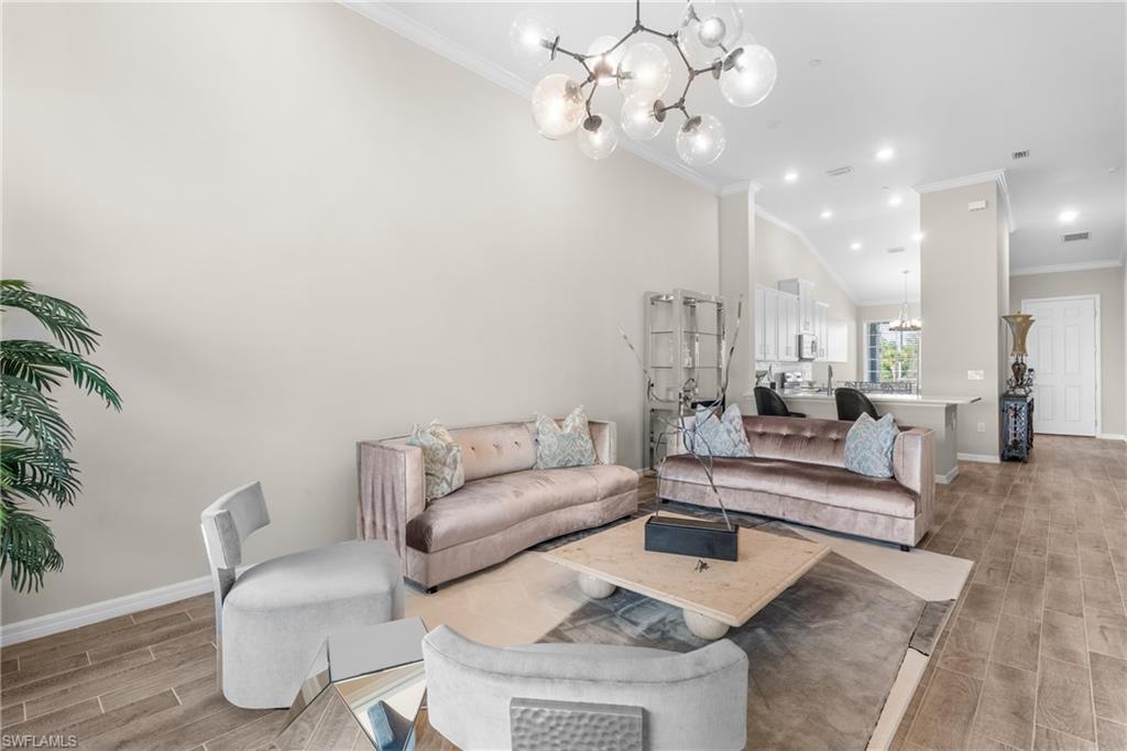 Enjoy exceptionally easy, resort style Florida-Living at this perfectly maintained Esplanade Lake Club condo! Barely lived in; this 2nd floor condo includes southern views overlooking a pristine and quiet preserve and a detached single-car garage just steps away from the front door! Esplanade Lake Club is conveniently located within a 10 minute drive to RSW and 5 minutes to I-75 and Gulf Coast Town Center (Costco, Super Target and more); Esplanade Lake Club offers something for everyone - resort style pool and community clubhouse with a pool side restaurant, the Bahama Bar for lunch/dinner and those famous SWFL sunsets on Lake Como (over 350 acres to explore), fitness center, tennis, pickle-ball, two dog parks, a tot-lot play area, miles of sidewalks, spa room, kayak/canoe/paddleboard launch area, a full time lifestyle and activities director, Toasted Cafe (breakfast and lunch options), boating and water sport activities, all within a 30-40 minute drive to beautiful downtown Naples or downtown Fort Myers. This condo offers: 2 bedrooms, 2 full bathrooms with a den/lounge area and totals over 1, 500 square feet! Enjoy volume vaulted ceilings throughout and wood look tile floors in the main living areas which means easy maintenance. Upgraded finishes include: shaker-style cabinetry with quartz countertops throughout; stainless steel kitchen appliances; crown-molding throughout; custom closet systems in the primary bedroom; and more! A condo-only community pool is a short walk away too! Do not wait to see this well appointed and cared for property today!