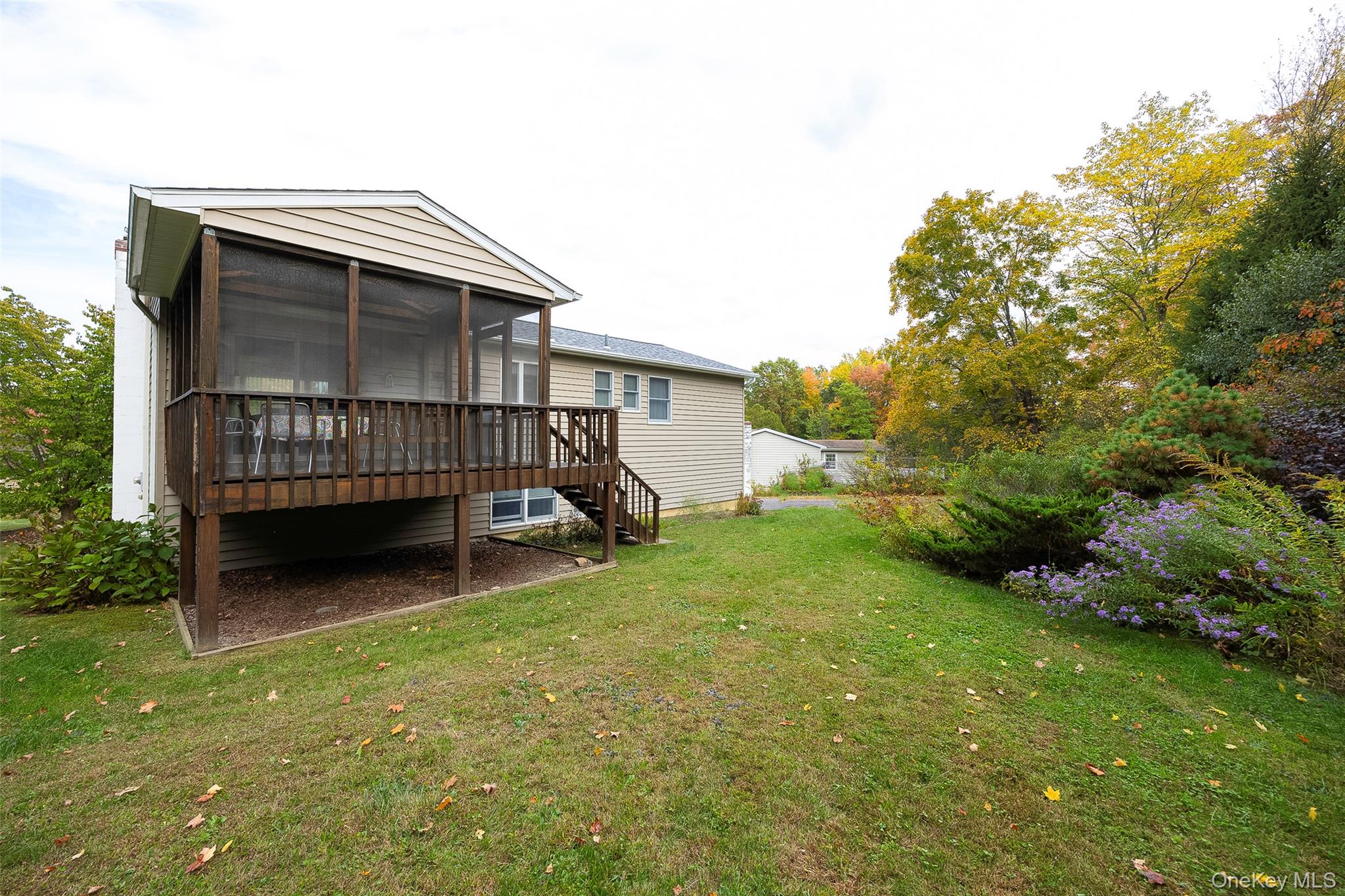 Situated at the end of a quiet cul-de-sac, find this impeccably maintained 4 bedroom raised ranch. Living room w/fireplace flows seamlessly to dining room with access to screened porch overlooking the private backyard. Spacious eat-in kitchen w/pantry. Primary bedroom w/two closets and ensuite bathroom, plus two additional bedrooms on main level. Lower level includes large family room, fourth bedroom, half bathroom & laundry room, creating the the perfect configuration for guest quarters or in-law suite. Two car garage for abundant storage. Enjoy the conveniences of a new roof, central a/c, natural gas, municipal water & sewer. Park like yard is surround by mature landscaping and wooded buffers for privacy. Located just minutes from schools, shopping, dining, Route 9 & I-84. An exceptional opportunity not to be missed.