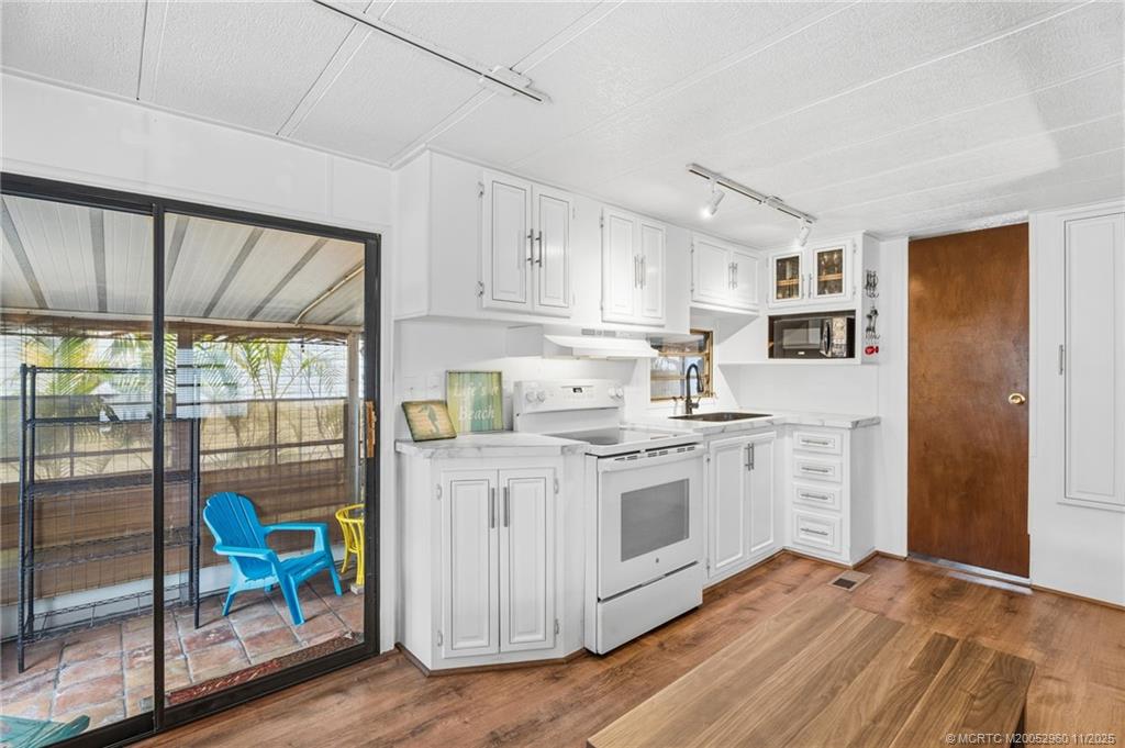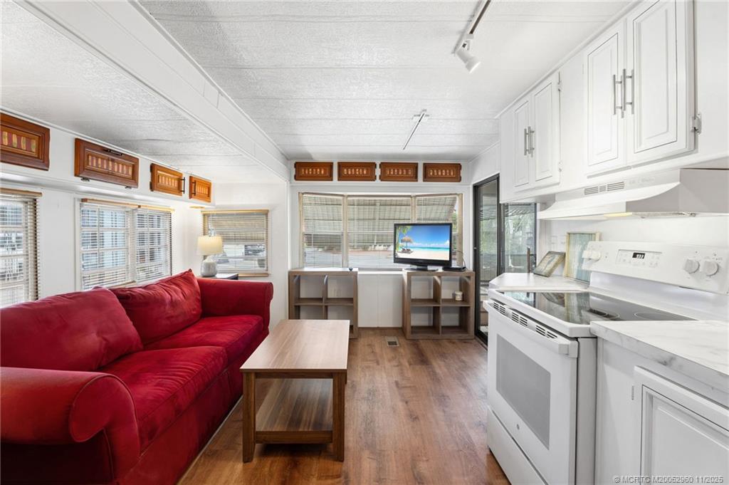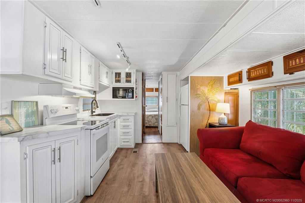 This charming 1-bedroom, 1-bath manufactured home offers 2-car parking and is just a 4-minute walk to the community clubhouse, where you’ll enjoy resort-style amenities including two pools, pickleball, tennis, bocce, shuffleboard, basketball, a new café, gym, and year-round festivals. Inside features vinyl plank flooring throughout, a walk-in closet, and new kitchen countertops. The tiled porch offers a peaceful, private sitting area surrounded by trees—perfect for relaxing after a day at the beach. Listed at land value, this property offers great potential as a rental for the many contract workers and seasonal guests who love to surf the Atlantic (just across the street with private beach access), or tear down and build your dream coastal home. Enjoy vibrant island living with endless possibilities!