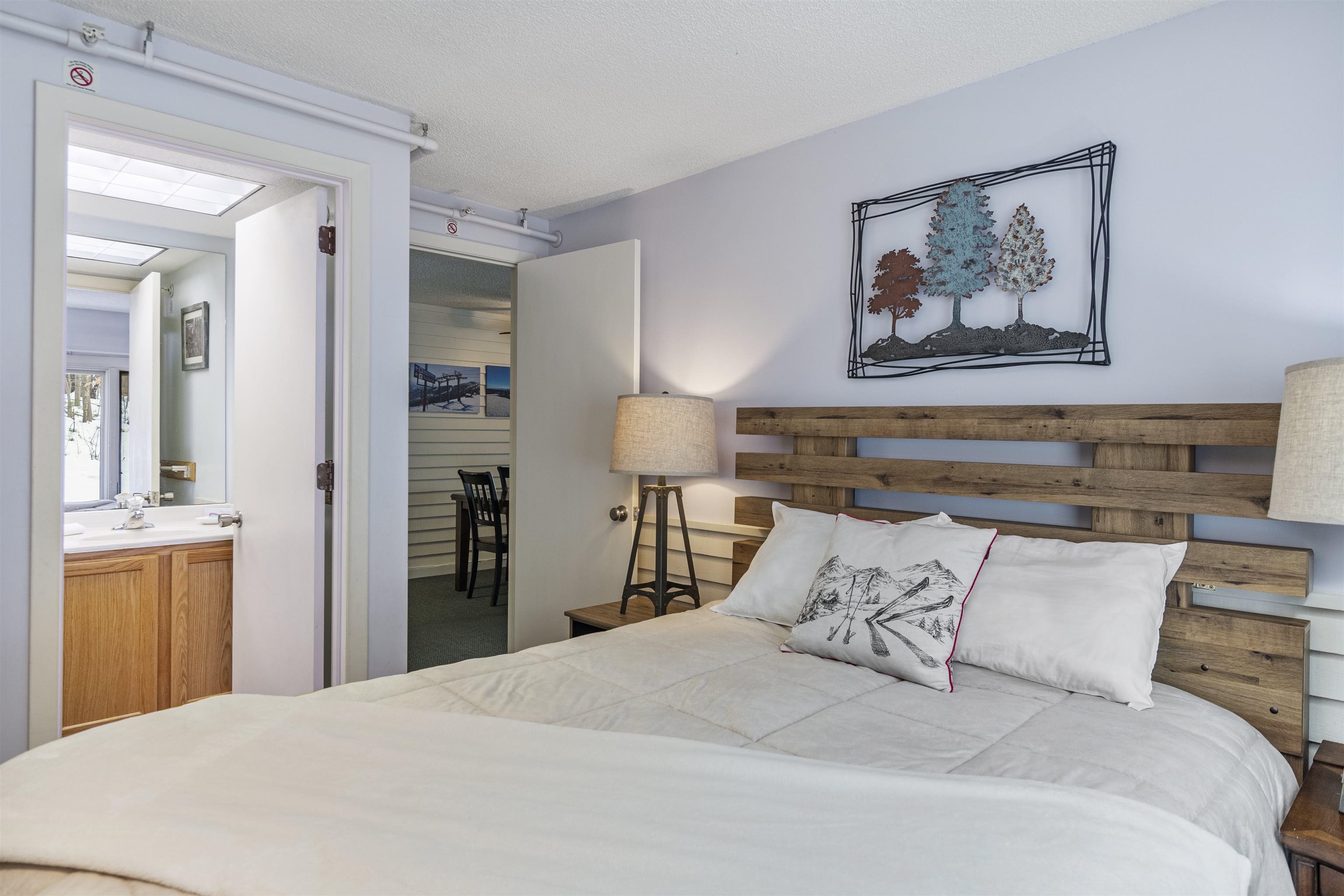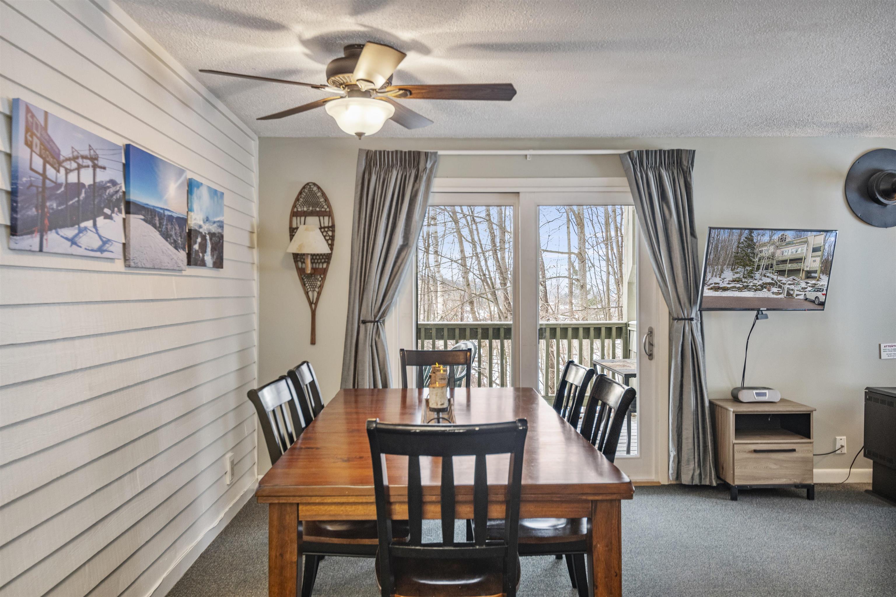 We are excited to present a unit that is truly ready for immediate occupancy. Complete with included furnishings and perfect for those ready to hit the slopes this season. This world-class complex offers an unparalleled location near all of Stowe's essential amenities. Situated at the bottom of the complex's hill, you are just steps away from local favorites such as The Alchemist Brewery, Idletyme Brewing Company and Restaurant, Picasa, and access to Stowe's famous bike path. The unit itself has been freshly painted and decorated to embody the quintessential Vermont mountain theme. It features an open living area that flows out to a large covered deck with beautiful mountain views. The sleeping arrangements include a primary suite, a second bedroom with twin beds, and a pull-out sofa, offering ample space for guests. For recreation, the Clubhouse is conveniently located directly across from this building and provides a large indoor pool, a hot tub, a sauna, exercise equipment, and lounge areas, along with changing locker rooms. Additional conveniences include the Stowe bus line, which drives by the complex for relaxing mountain access and the allowance of both short-term rentals and pets. Seller is a licensed Realtor in the state of Vermont.