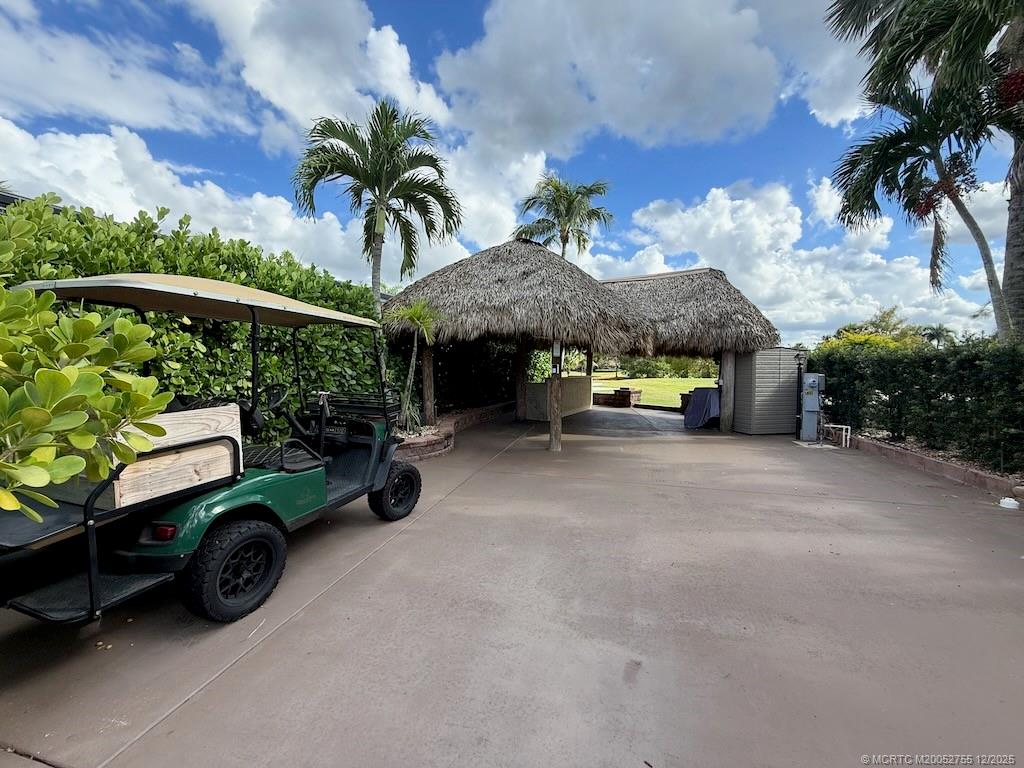 Experience the ultimate in resort living with this oversized 2, 640 sq. ft. lot in the highly sought-after MotorCoach Resort St. Lucie West! Perfectly situated on a desirable street, this property offers a rare peninsula location with panoramic views of the golf course and shimmering lake. Wake up to peaceful sunrises on your left, unwind with vibrant sunsets on your right, and enjoy the tranquil beauty of three lighted fountains that make this setting truly one-of-a-kind. The large tiki features a granite-topped custom kitchen—perfect for entertaining—with plenty of space to relax or dine outdoors in comfort. Surrounded by mature, lush landscaping for added privacy and charm, this meticulously maintained lot captures the best of Florida’s outdoor lifestyle. A gas golf cart is also available for separate purchase, making it even easier to explore the resort. This property is a must-see for anyone seeking beauty, serenity, and resort-style living!