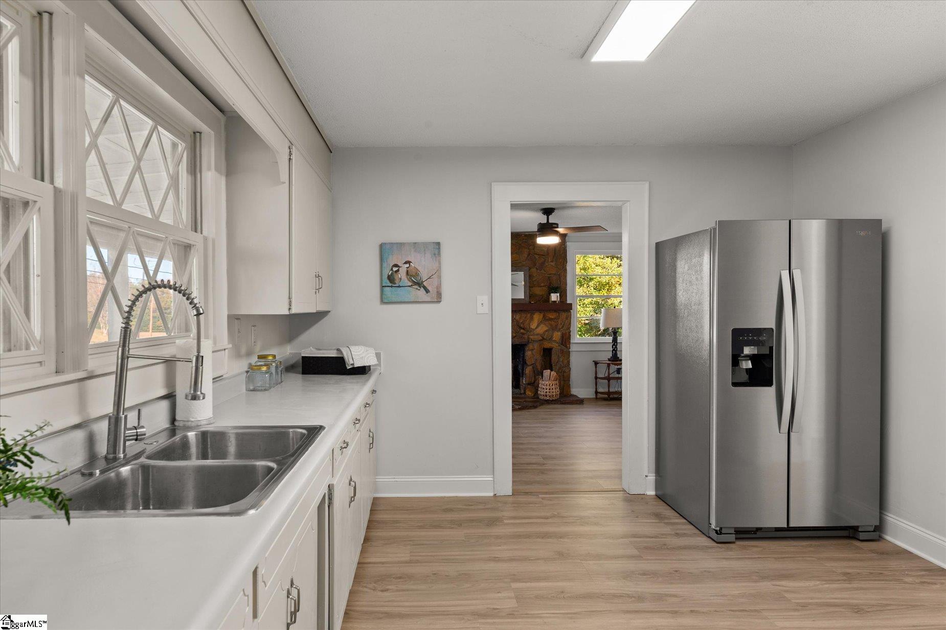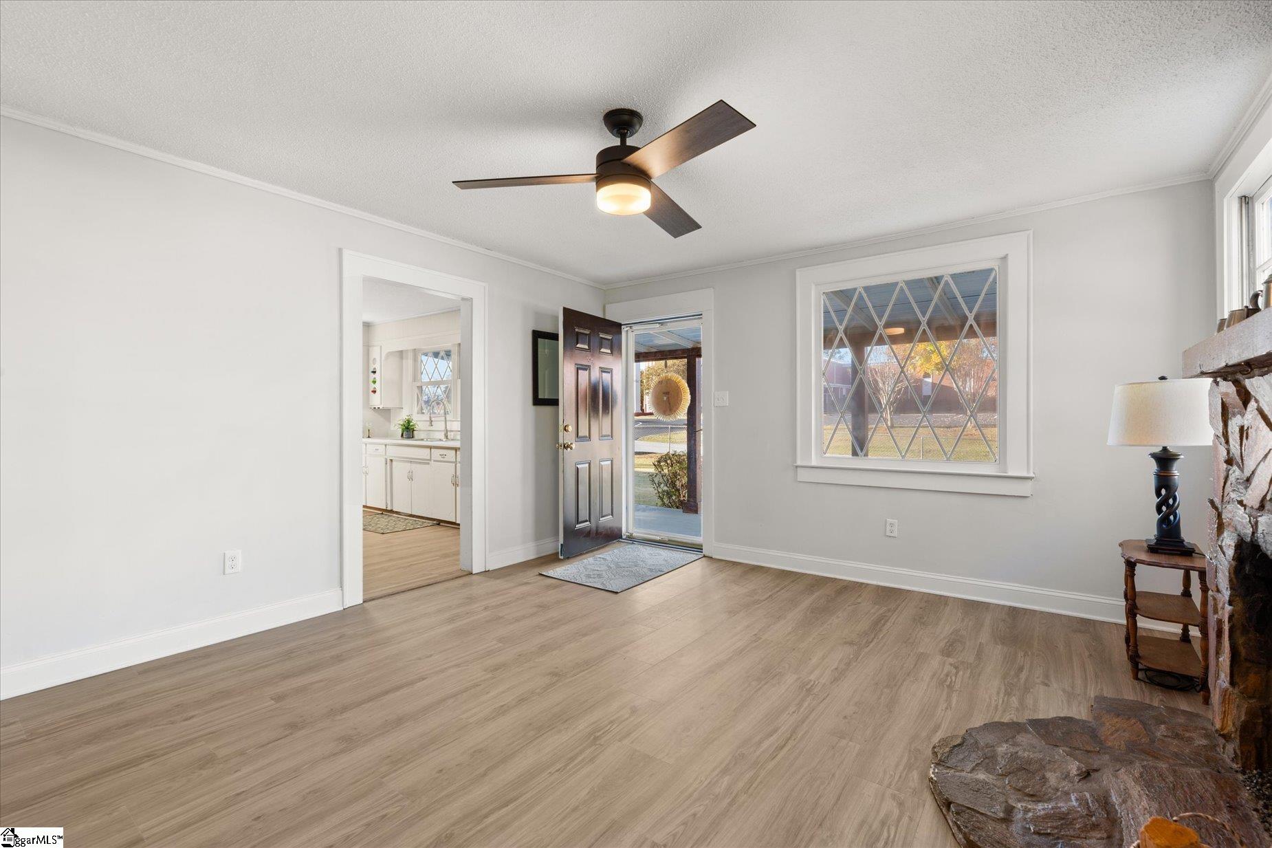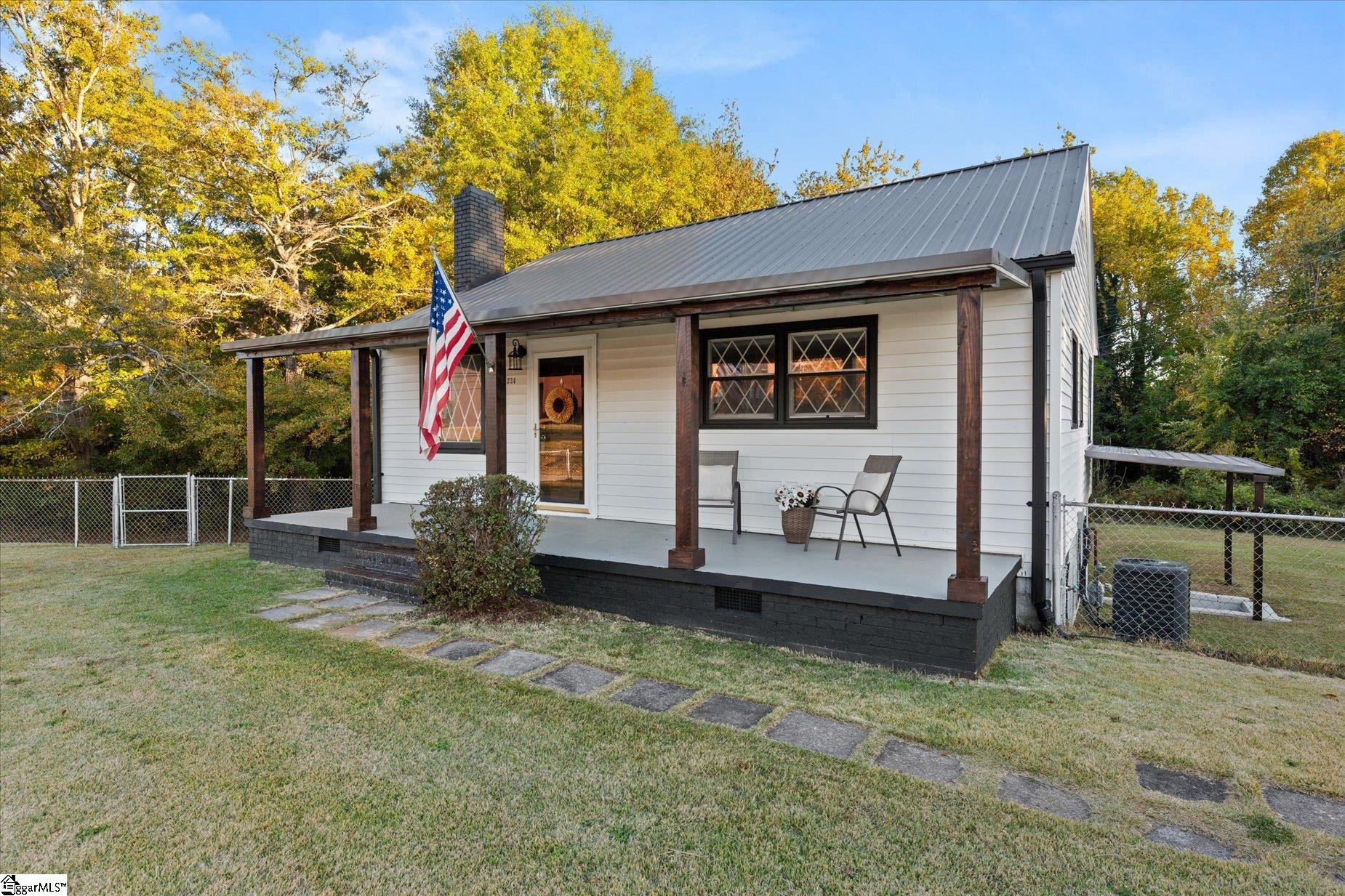 This house will absolutely captivate you, with a BRAND NEW PRICE! Situated in the emerging Wellford community. An incredible location that you definitely don't want to overlook. The home has been recently updated and boasts fantastic curb appeal. It offers 2 bedrooms and 1 bathroom, along with some additional features that I believe will catch your interest. Let's explore further. The property is just under 1 acre. It includes a flat front yard enclosed by a chain-link fence. The gate leads you to the front of the house, which features a spacious rocking chair porch with newly added columns that enhance its country charm. The roof has been replaced with a brand-new metal one. Upon entering, you find yourself in the den, a cozy space with a stone fireplace and a new mantle; the floors have been upgraded to luxurious planks. This will be your go-to room for watching movies or football games by the fire. The kitchen has an eat-in table and chairs right in the center, along with new countertops and updated cabinets featuring fresh paint and new hardware. A brand-new stainless steel fridge and stove are included with the home. There is a designated laundry area for an electric washer and dryer. The full bathroom has been remodeled with a new cabinet and countertop. You will find two spacious bedrooms, each with closets and refinished original hardwood floors. One would make an excellent primary bedroom, while the other could serve as your home office. Now, let’s head downstairs to the basement. A large unfinished area that you could complete, or you might prefer the extra storage space without having to go outside; it even has its own exit door. You will appreciate the extra-deep 1-car garage equipped with an electric door opener. It’s the ideal place to park your vehicle and work on it whenever you wish, making it a fantastic workshop. This property is a gem with a newer water heater, a new HVAC system, a new roof, fresh paint, updated and replaced flooring, new lighting throughout, updated electrical systems, and more. So, what are you waiting for? Let’s schedule an appointment, and see it for yourself before someone else does!
