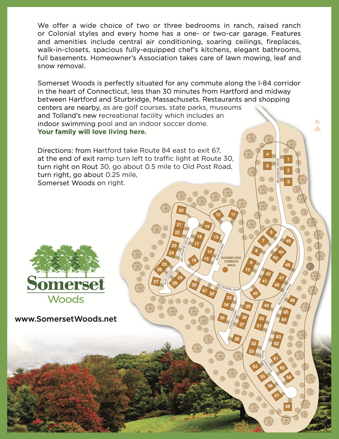 Discover the epitome of convenience and style with our newest model, designed for one-level living in the charming community of Somerset Woods, Tolland, CT. This innovative home features an open and flexible living space, perfect for modern lifestyles and the needs of today's homeowners. The very low HOA fee covers lawn care and snow removal so you can focus on the things that matter to you. The kitchen is complete with Quartz countertops and a selection of cabinet colors to choose from. Expandable Lower Level: The walk-out lower level offers endless possibilities! Easily convert it into a recreation room, home theater, or playroom, nearly doubling your living space. Energy Efficiency: Built with eco-friendly features to enhance comfort and reduce utility costs such as a Natural Gas furnace and Tankless water heater. Peaceful Neighborhood: Nestled in a tranquil area, perfect for families, retirees, or anyone seeking a quiet lifestyle. An easy commute to UConn Storrs Campus and Hartford and a convenient escape to Boston or New York City, just 2 hours away. Dot miss this opportunity to own one of the few remaining ranch style homes in Somerset Woods.