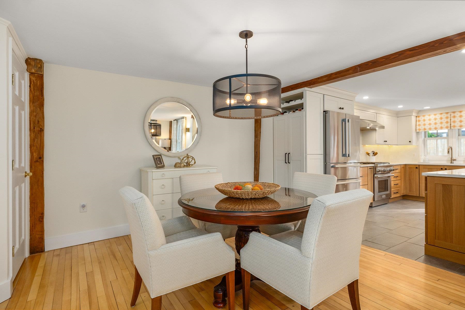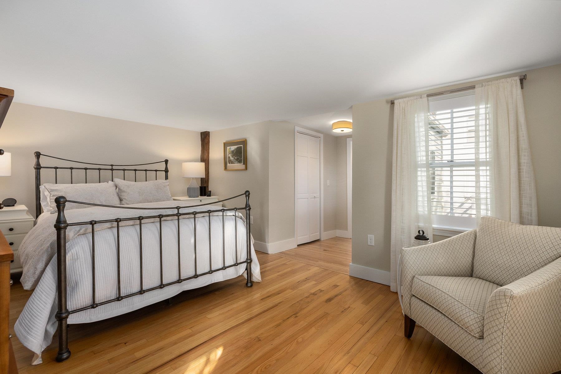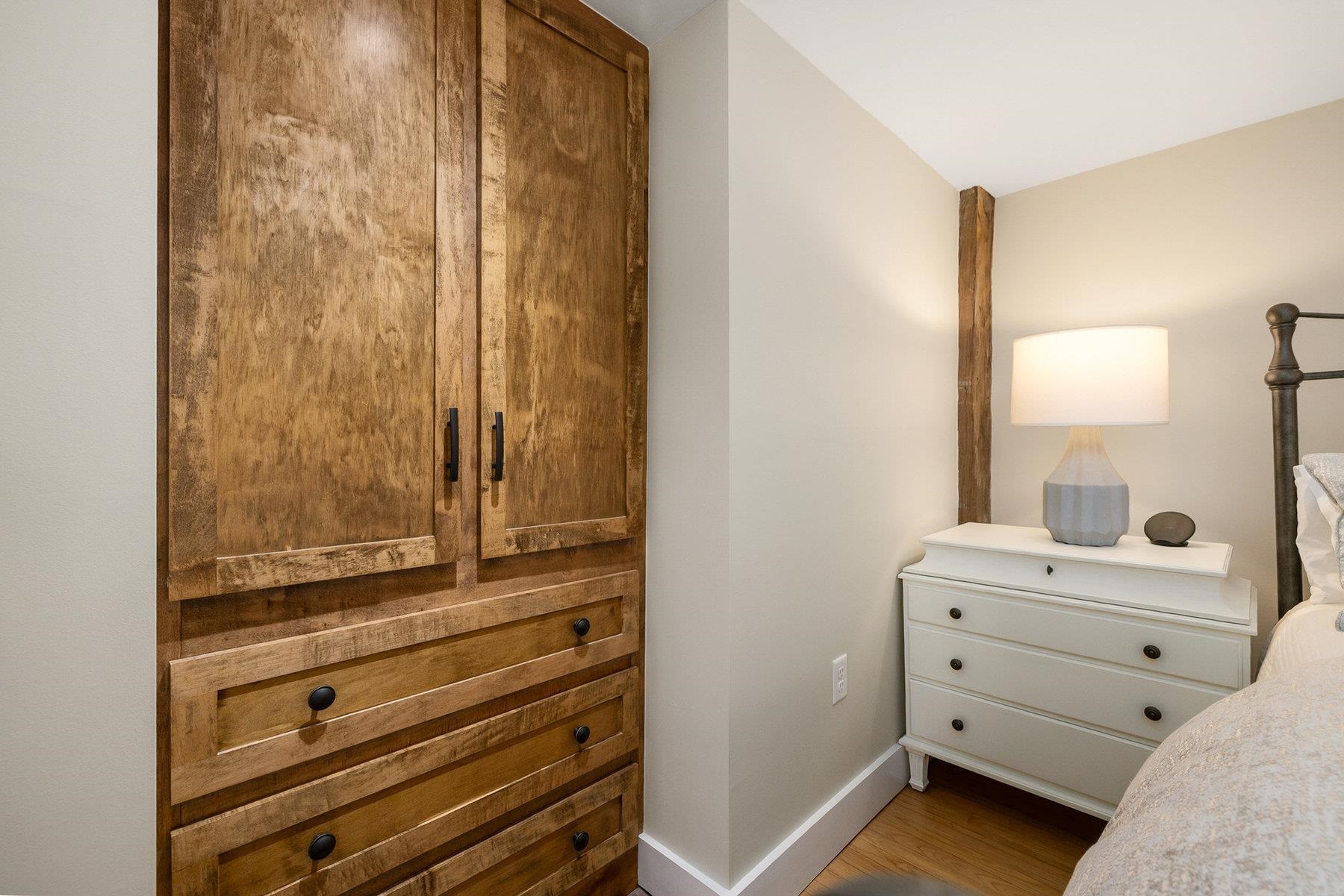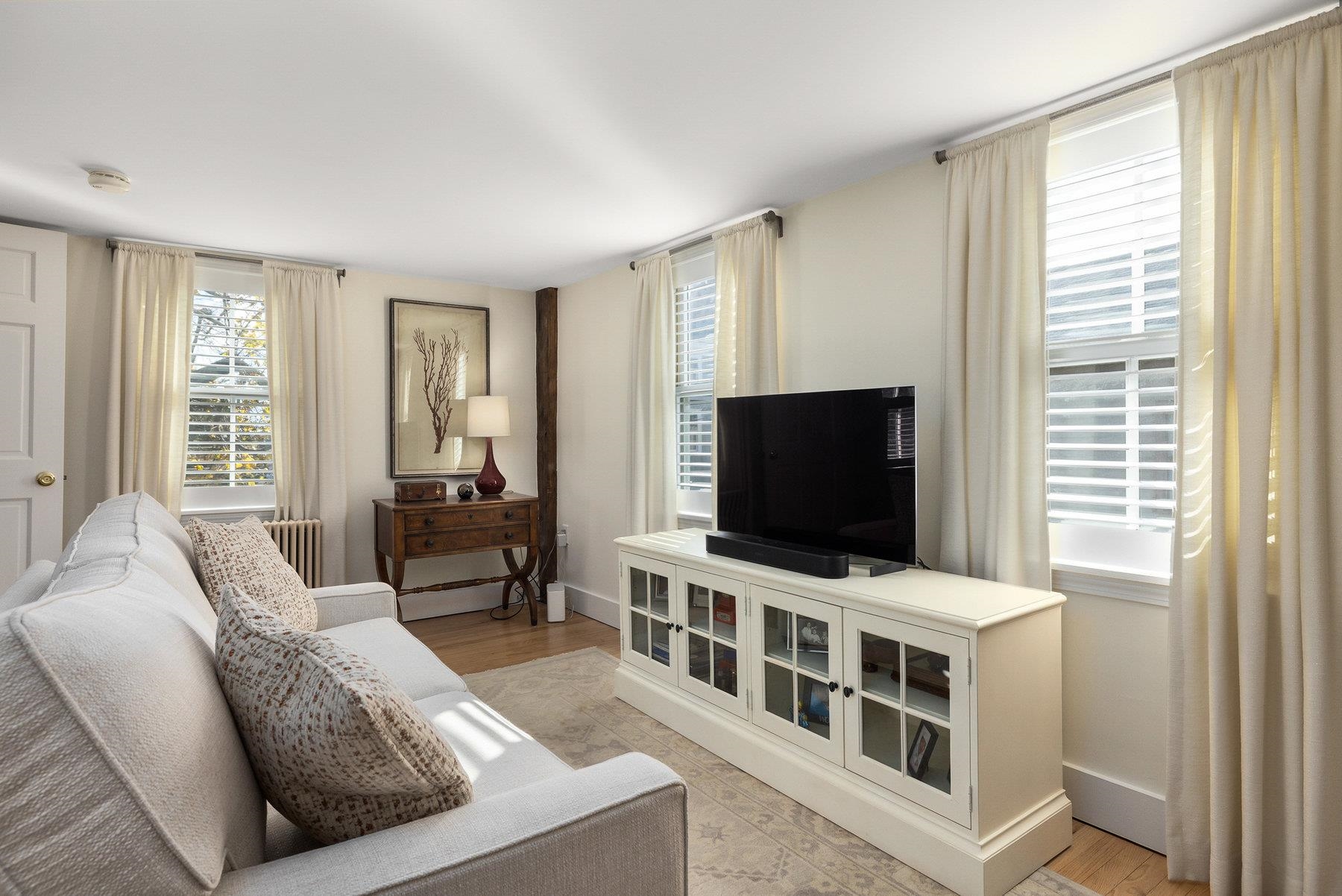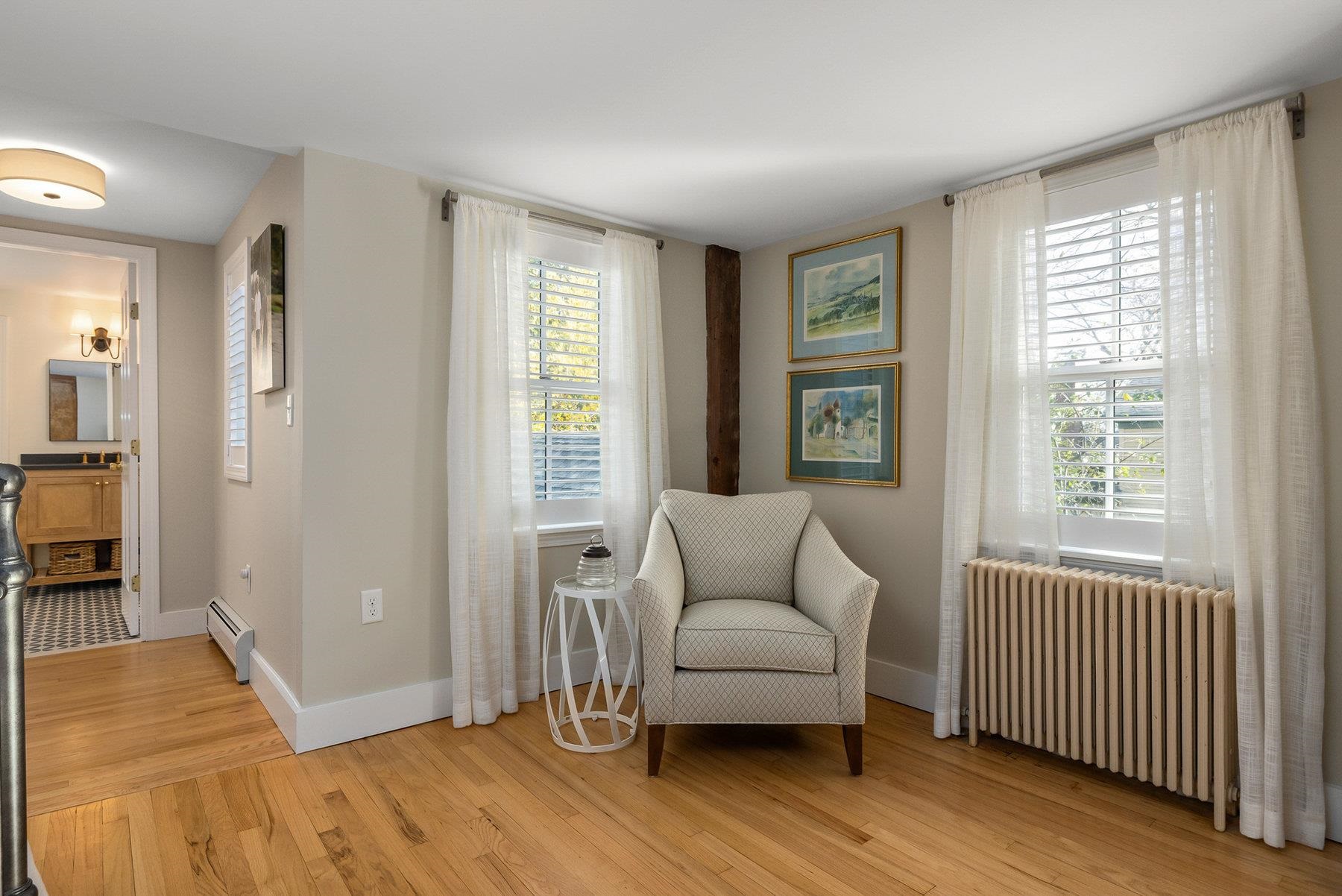 Tucked in the heart of Portsmouth’s South End, this beautifully reimagined home combines timeless character with thoughtful modern updates. The kitchen shines with custom cabinetry, quartz countertops, with Thermador & Bosch appliances, while the adjoining living area offers a warm, inviting spot to relax by the new electric insert in the wood burning fireplace. Upstairs, the spacious primary suite features a walk-in closet, custom built-ins, and an elegant en-suite bath. A second bedroom with its own newly updated full bath ensures comfort for guests or family. Originally renovated top-to-bottom in 2008 and enhanced again in 2020, the home continues to evolve with style and care. Classic details - exposed beams, gunstock corners, and wide wood floors - bring a sense of history to the light-filled spaces. Every detail has been carefully maintained and improved -from the refreshed landscaping with irrigation to the newly painted interior and updated heating system. Outside, a private stone patio and pocket garden create a peaceful retreat, and a garage with a brick driveway provides three coveted off-street parking spaces. Ideally located near Portsmouth’s best restaurants, parks, and waterfront attractions, this impeccable South End residence offers the very best of in-town living.