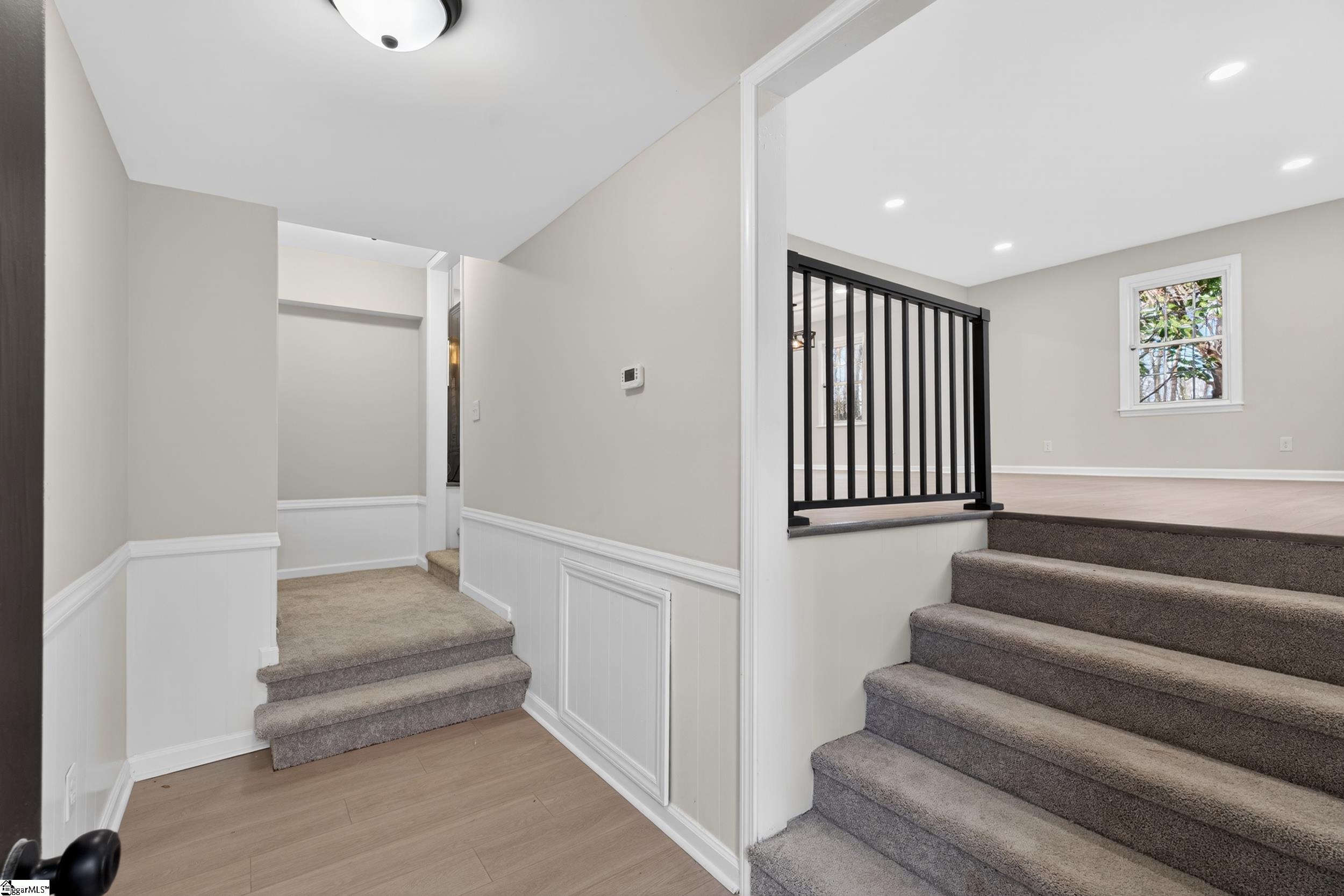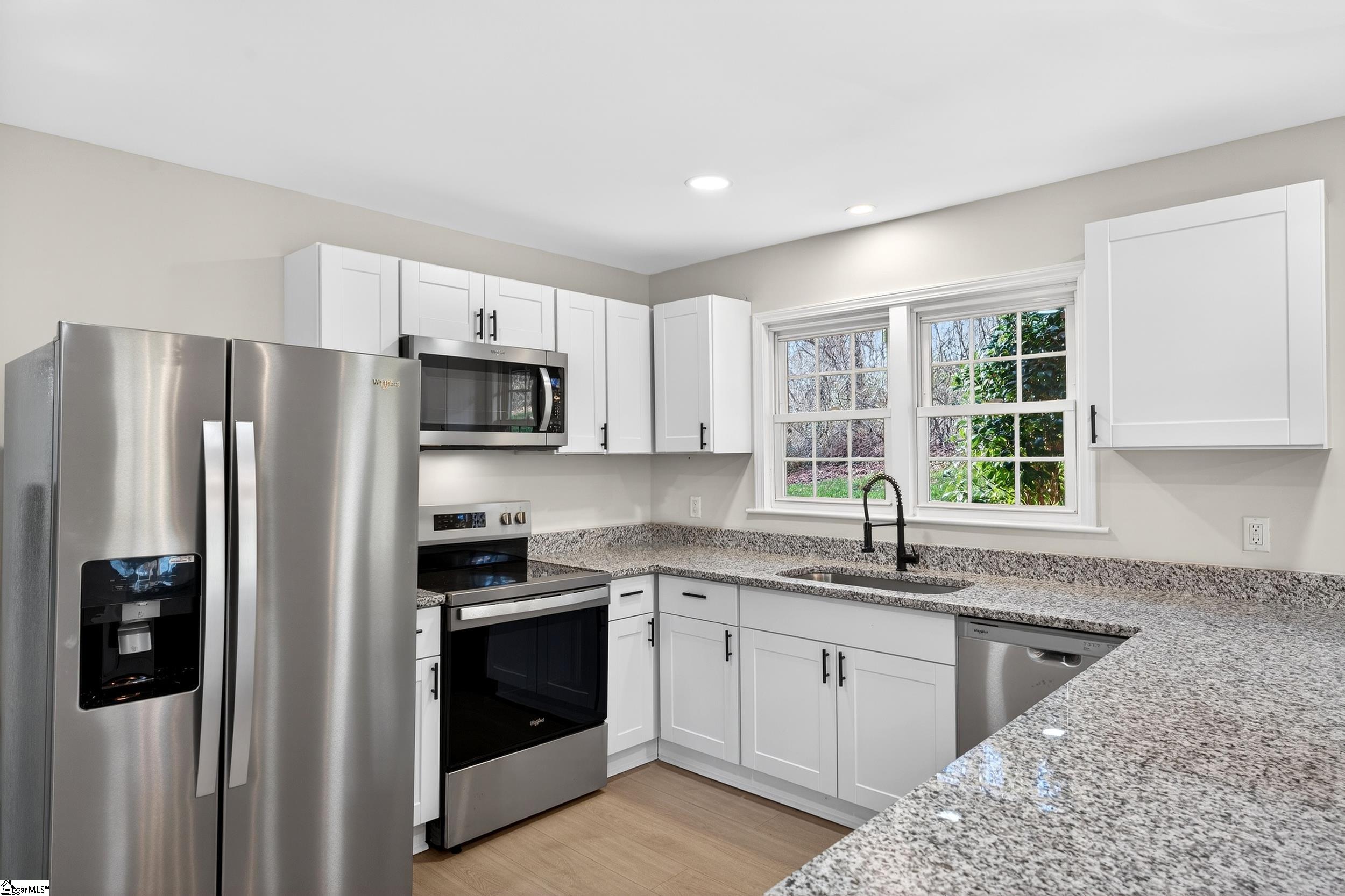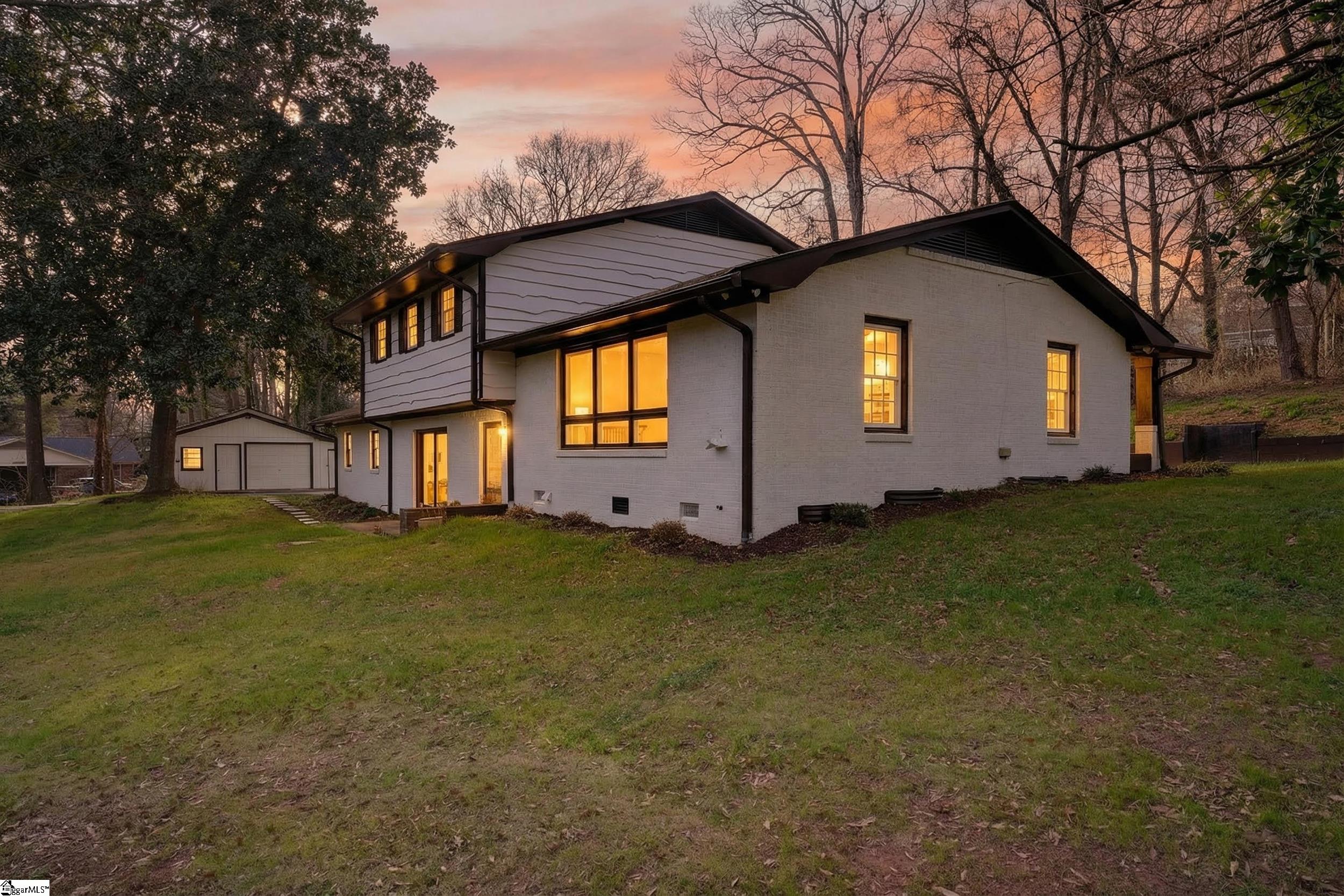 SPACE FOR EVERYONE AND HUGE DETACHED SHOP WITH NO HOA! Experience the perfect blend of space and style in this fully remodeled split-level home, offering over 2, 200 square feet of modern living in a quiet Spartanburg neighborhood with no HOA. The main level welcomes you with an open layout connecting the kitchen, dining, and living areas. Perfect for entertaining or everyday living. The kitchen features granite countertops, stainless steel appliances, shaker cabinetry, and a large peninsula surrounded by natural light. Upstairs, you’ll find three comfortable bedrooms and a beautifully renovated full bathroom with premium tile, backlit mirrors, and modern fixtures. Downstairs, a spacious den provides the perfect flex area for a media room, home office, or guest space accompanied by the fourth bedroom and a second fully updated bathroom with premium tile, plus a large laundry and storage room. Outside, enjoy a relaxed private setting with mature trees, a fire pit area, and an impressive detached workshop and garage totaling over 1, 000 square feet with electricity, plumbing, and multiple garage doors. The attached two-car garage, dual driveways, and extra gravel parking make hosting, storage and access easy. Freshly renovated painted inside and out, this move-in-ready home combines comfort, convenience, and style just minutes from downtown Spartanburg, I-85, shopping, and local parks. Schedule your tour today!