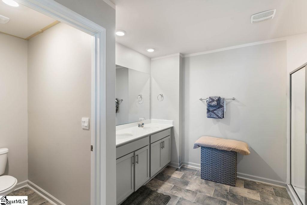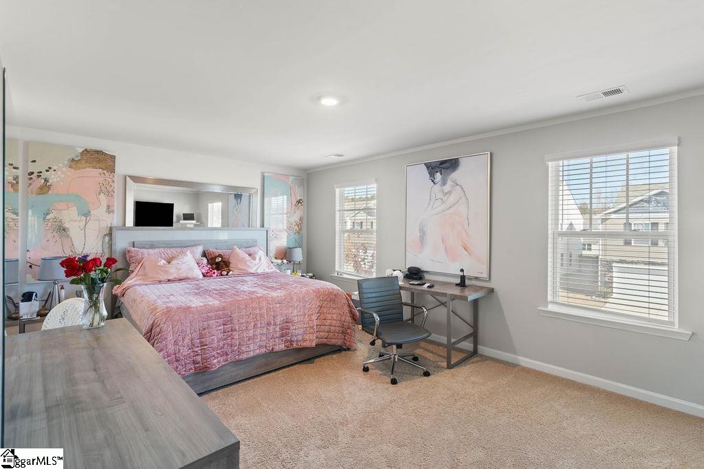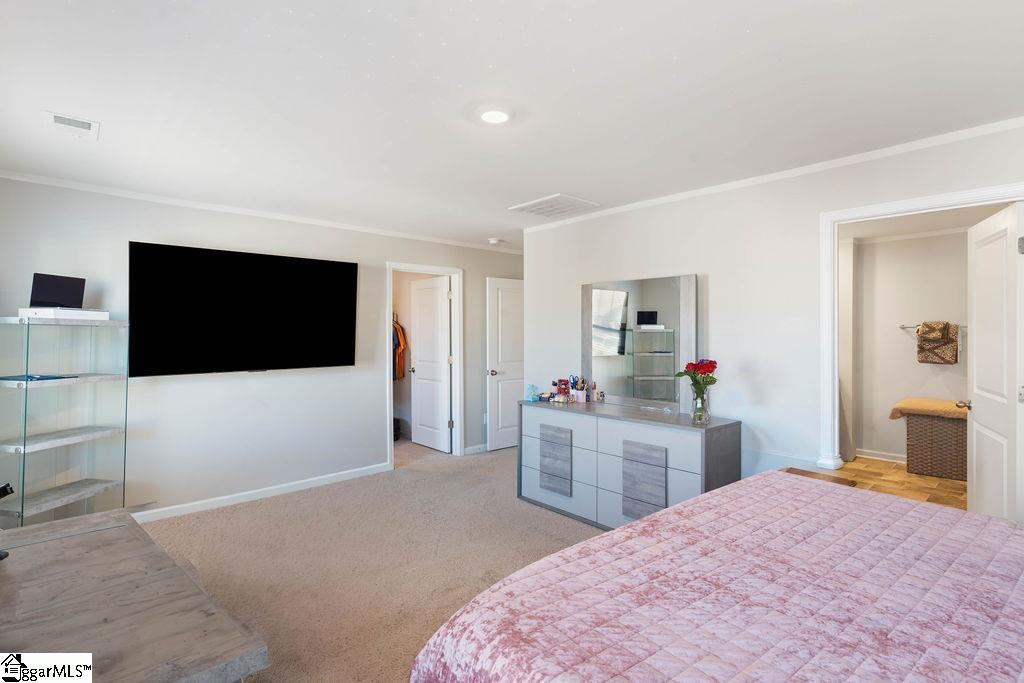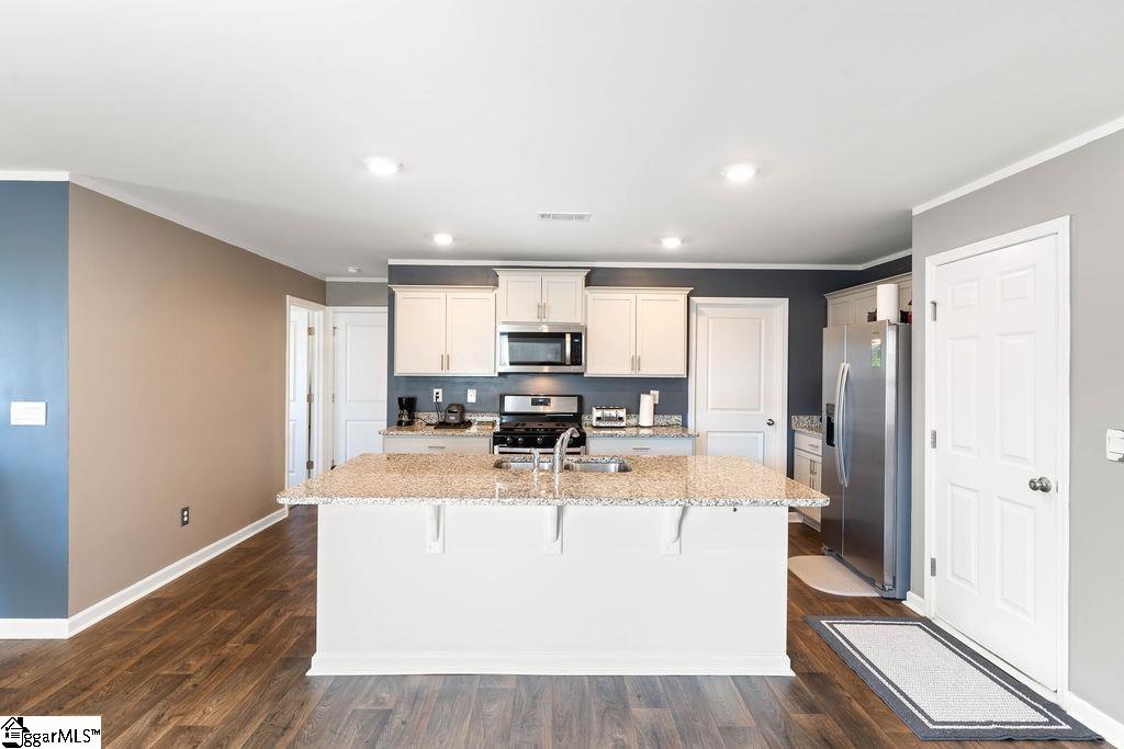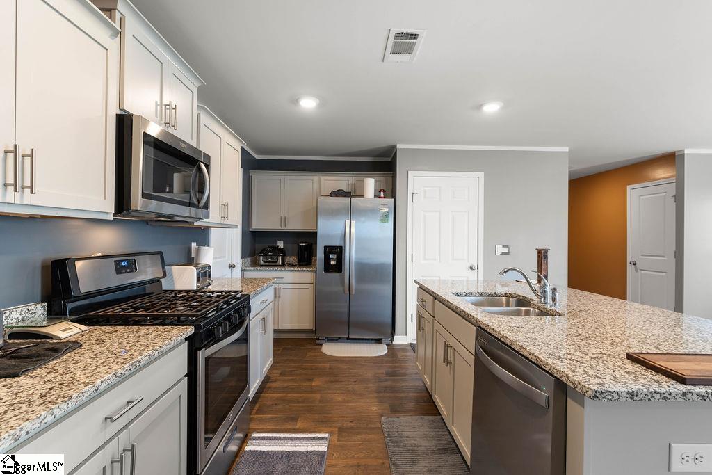 BETTER THAN NEW IN LENHARDT GROVE! Just three years young, this 5-bedroom, 3-bath residence perfectly blends expansive space with contemporary style. The open-concept main level is anchored by a chef-inspired kitchen featuring a large granite island, stainless appliances, and a massive walk-in pantry for ultimate storage. A coveted main-floor guest bedroom with an adjacent full bath offers the perfect setup for visitors or a private home office. The great room, centered by a cozy gas-log fireplace, flows seamlessly to a fully fenced backyard—ideal for play and pets. Upstairs, a central loft provides a versatile second living area, flanked by a laundry room and four bedrooms, including a private primary suite with a separate water closet and a generous walk-in closet. Enjoy resort-style amenities including a pool and cabana, all just minutes from Downtown Easley and Hwy 123!