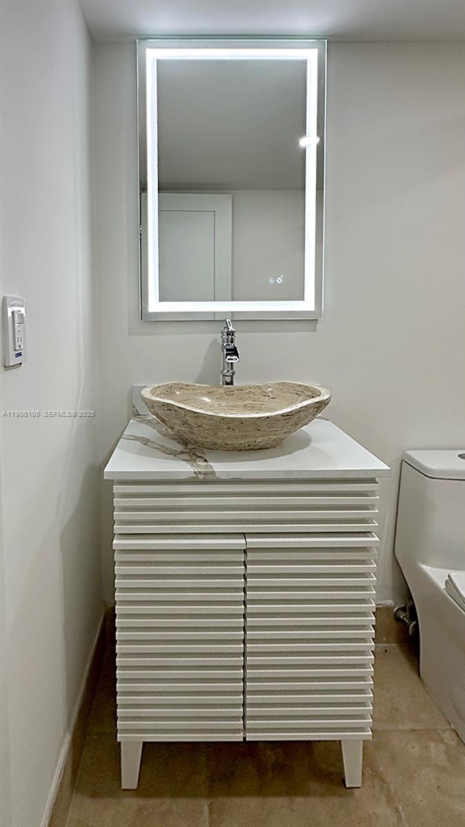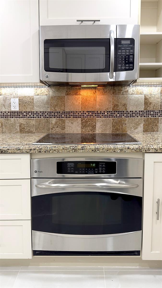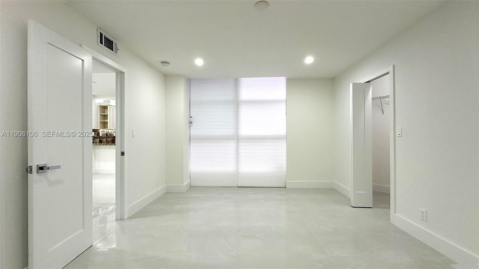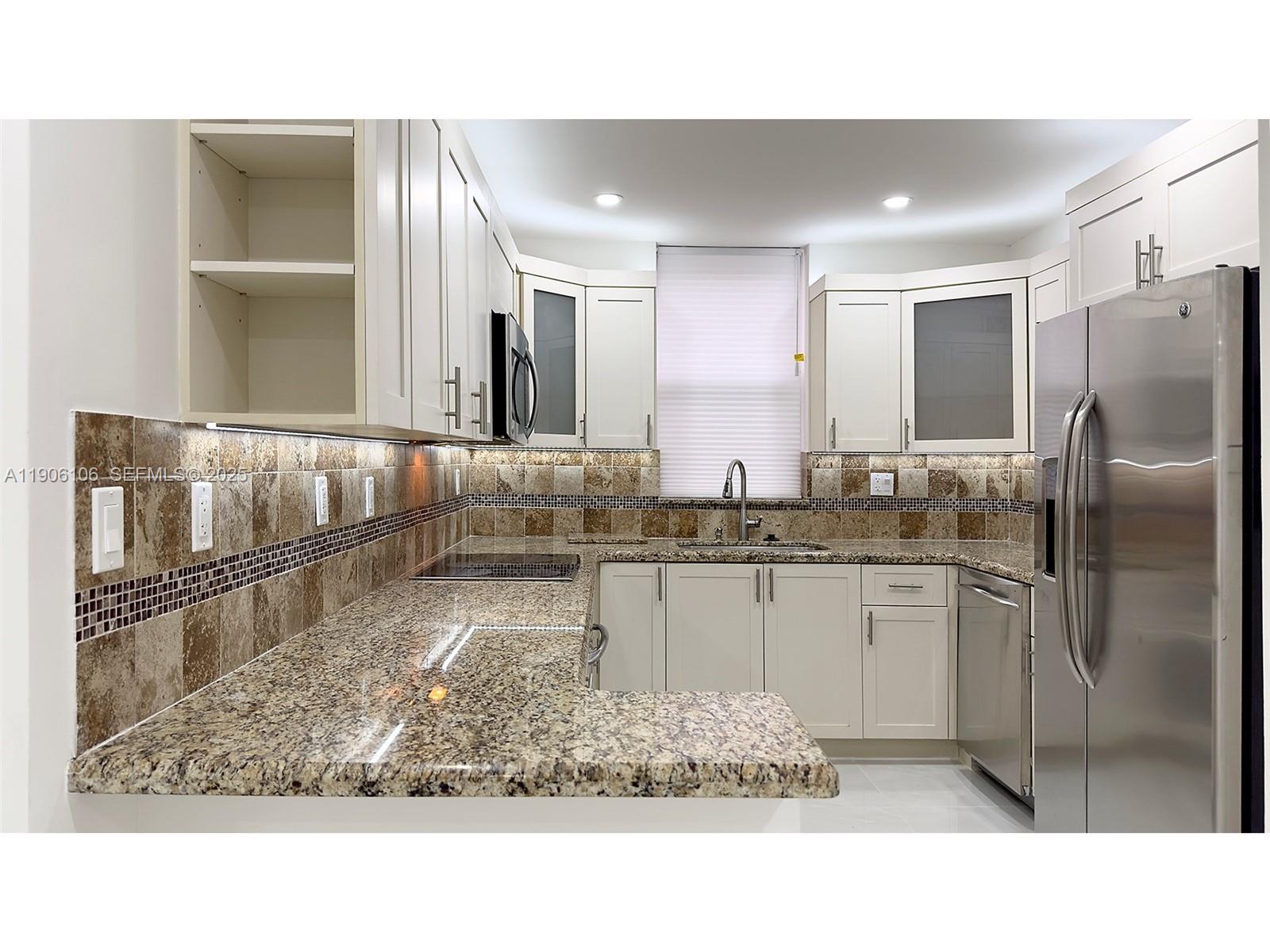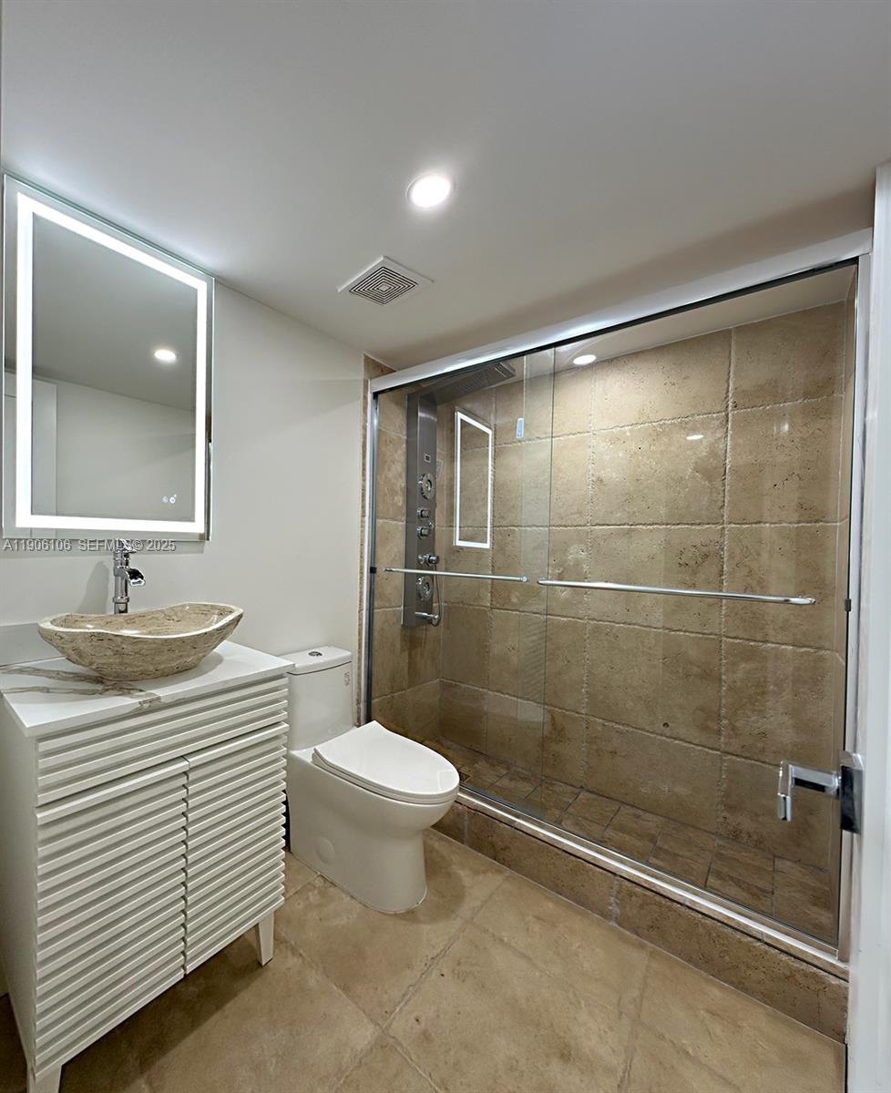 features two spacious bedrooms, Den and two bathrooms, along with new porcelain floors and LED lighting throughout.