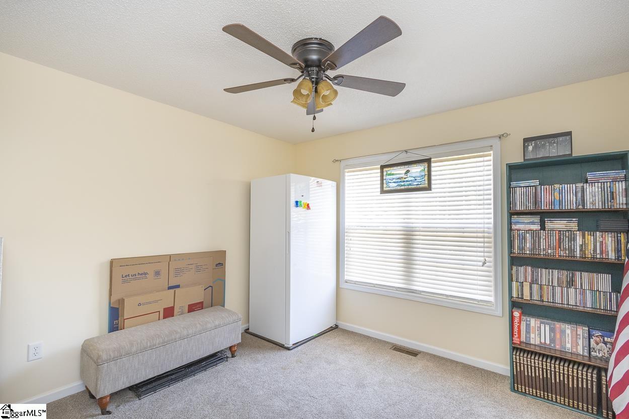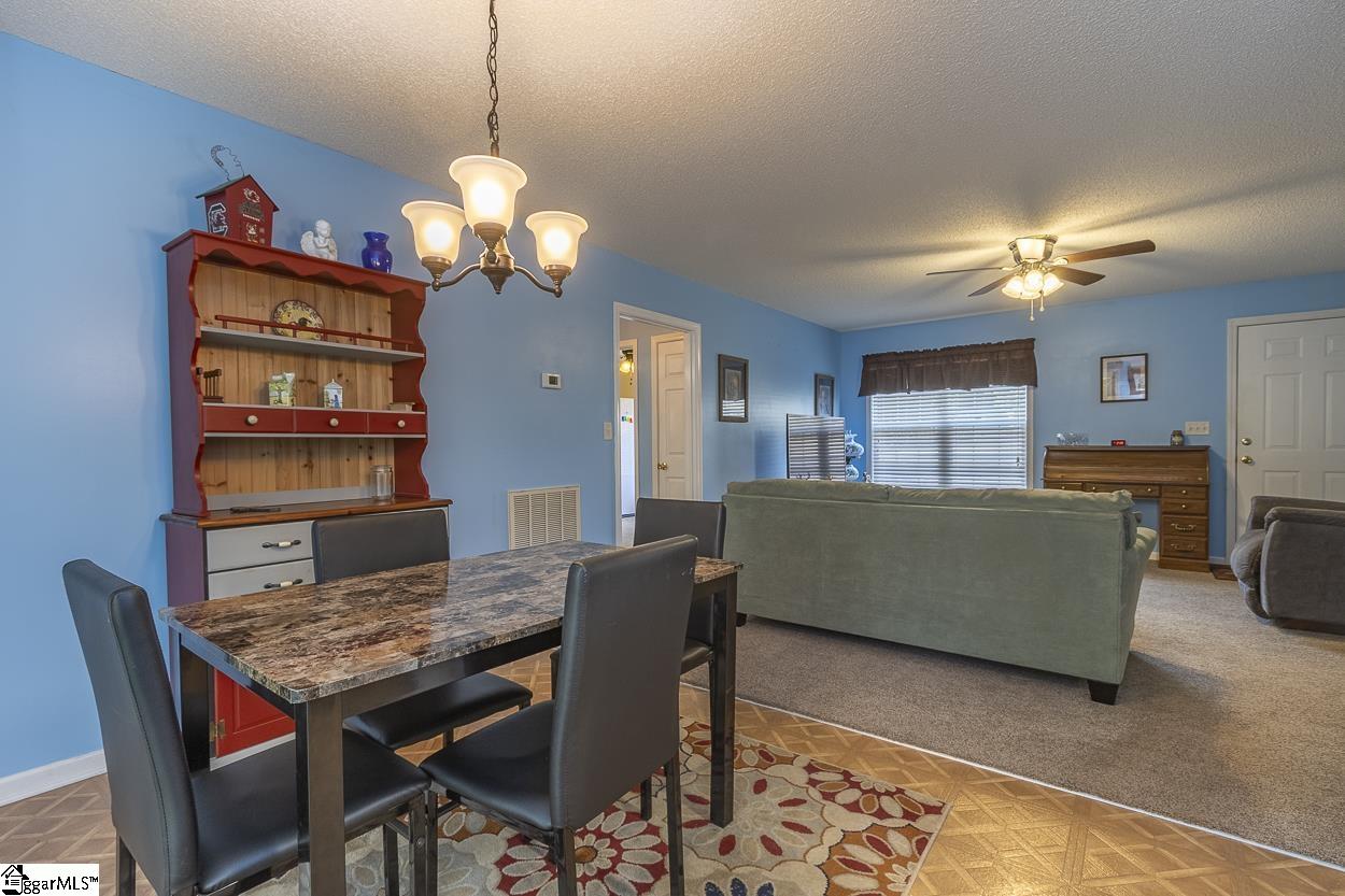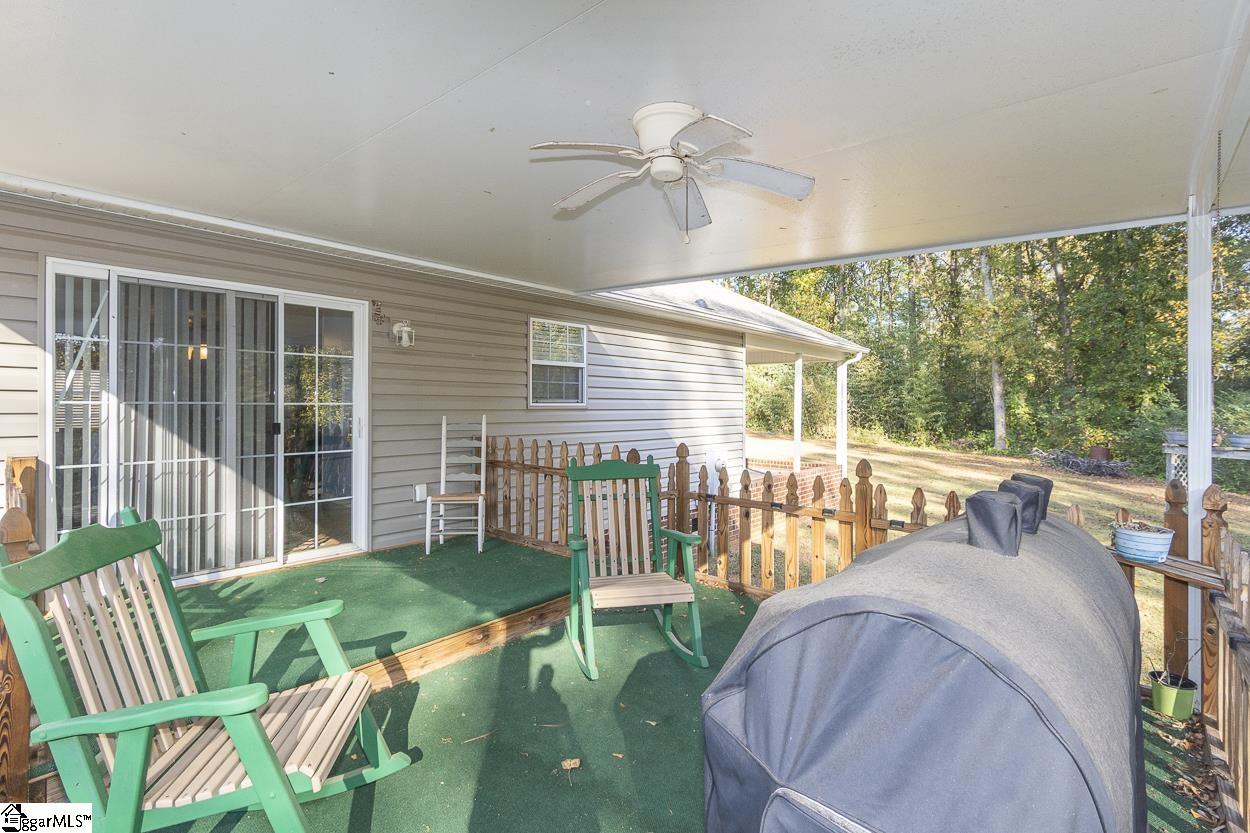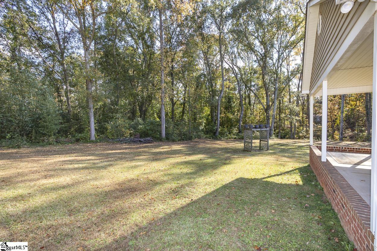 Property location qualifies for 100% USDA Rural Housing Loan financing. Single level home with no HOA nor fees and situated within a wooded and established neighborhood. Easy to maintain exerior finishes of vinyl and brick with mature landscaping. Covered parking is a combination of attached carport and detached garage. Detached building at ~600' and is finished with concrete flooring and electricity; perfect for a workshop or storage. At almost 1 acre lot the WOW is when you walk to backyard. Serene is the word with the expanse of the open grassed area, grand trees, a natural area down to the creek. Entry to the home brings you to the living room and is open to the eat in / dining area. Galley style kitchen where all appliances remain and extra storage shelved pantry. Laundry closet and side entry access door to carport complete this area. Ever popular split bedroom floorplan; with Primary featuring a walk in closet and private bathroom with newer walk in shower. Two secondary bedrooms share a hallway located full bathroom. From dining area one will access the rear covered porch; perfect for grilling and dining. Country setting property is close to south side Anderson shopping, District 3 schools and vast number of employers.