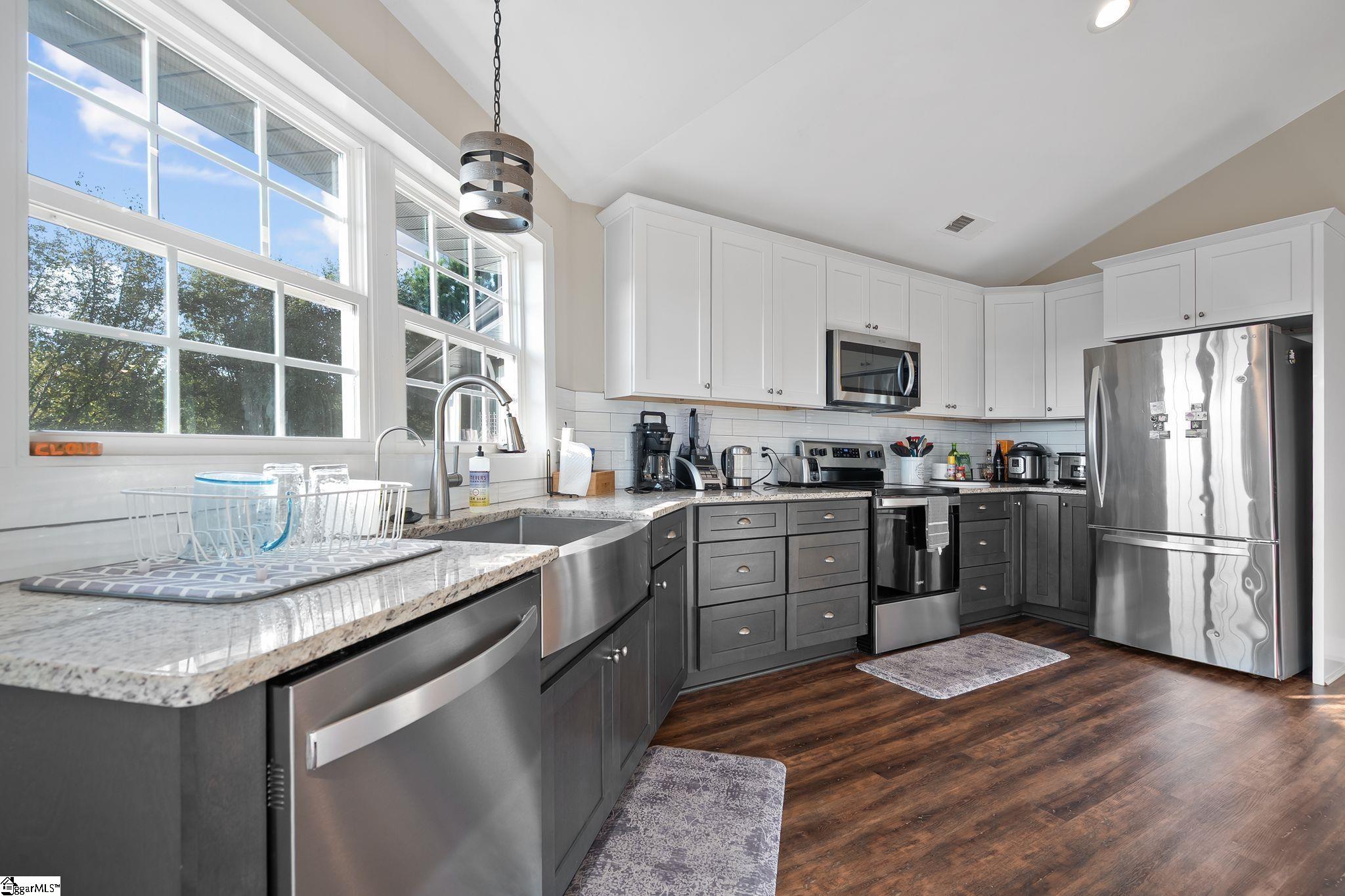 We present 1010 Wall Cir. , a meticulously renovated residence that merges timeless charm with sophisticated contemporary design. The home underwent a thorough renovation in 2020, with recent bathroom upgrades ensuring the highest standard of modern comfort. This three-bedroom, three-bathroom home offers a premium living experience defined by quality finishes and exceptional privacy. The residence is positioned on a serene two-acre parcel, buffered by expansive agricultural land. Upon entry, the open floor plan and abundant natural light convey a sense of spaciousness. The bright living and dining areas transition seamlessly into a substantial great room, offering superior flow for daily living and entertaining. High-end features include soaring cathedral ceilings and durable, stylish LVP/laminate flooring. The finished basement offers flexible space, while the extensive back deck takes full advantage of breathtaking 180-degree sunset views. The eat-in kitchen is a study in modern functionality and design. It features a suite of top-tier stainless-steel appliances, elegant granite countertops, a classic farmhouse sink, and a chic tile backsplash, all centered around a practical kitchen island. The spacious primary suite is a genuine retreat, offering ample storage, serene backyard views, and direct access to the deck. The en-suite bathroom—a highlight of the recent improvements—is finished to a luxury standard, featuring a walk-in shower, a sophisticated freestanding tub, and dual sinks set into exquisite quartz countertops. Currently featuring manicured lawns and a generous deck, the existing outdoor space is perfect for leisure. Strategically located in the peaceful rural setting of Chesnee, the home offers excellent access to major economic hubs, with a manageable drive to downtown Greenville, Spartanburg, and Charlotte. Proximity to Lake Blalock and Lake Bowen enhances the lifestyle; essential amenities are within a 15-minute drive. Practical considerations are met with a well-organized two-car attached garage. We invite you to explore this exceptional proposition to acquire an impeccably updated home with the rare potential to secure a sizable private estate. Schedule your showing today.