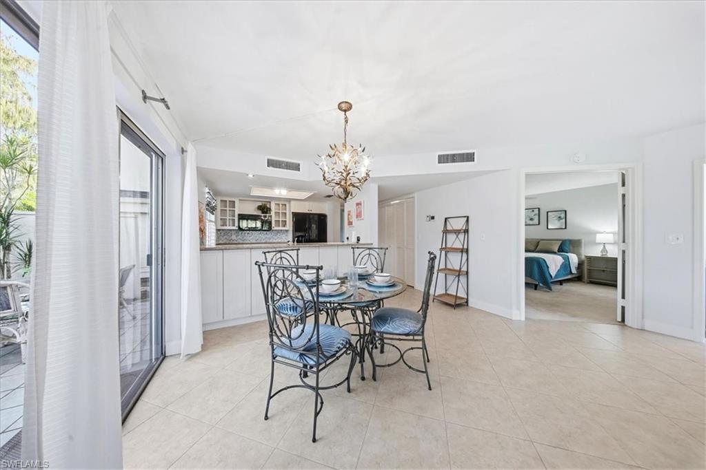 Welcome to Camelot at Kings Lake—a bright, well-maintained first-floor 2BR/2BA condo offering 1, 165 sq ft of comfortable Florida living. Enjoy the privacy of a separate front entry and a spacious open layout that flows from the living and dining areas into an enclosed Florida sunroom, ideal for a den, sitting area, or flexible bonus space. The community features lush walking/biking paths, a community pool, and tennis/pickleball, all within a quiet, beautifully landscaped setting. Conveniently located near Kings Lake Square shopping and dining, and just minutes to downtown Naples, 5th Avenue, and Gulf beaches.