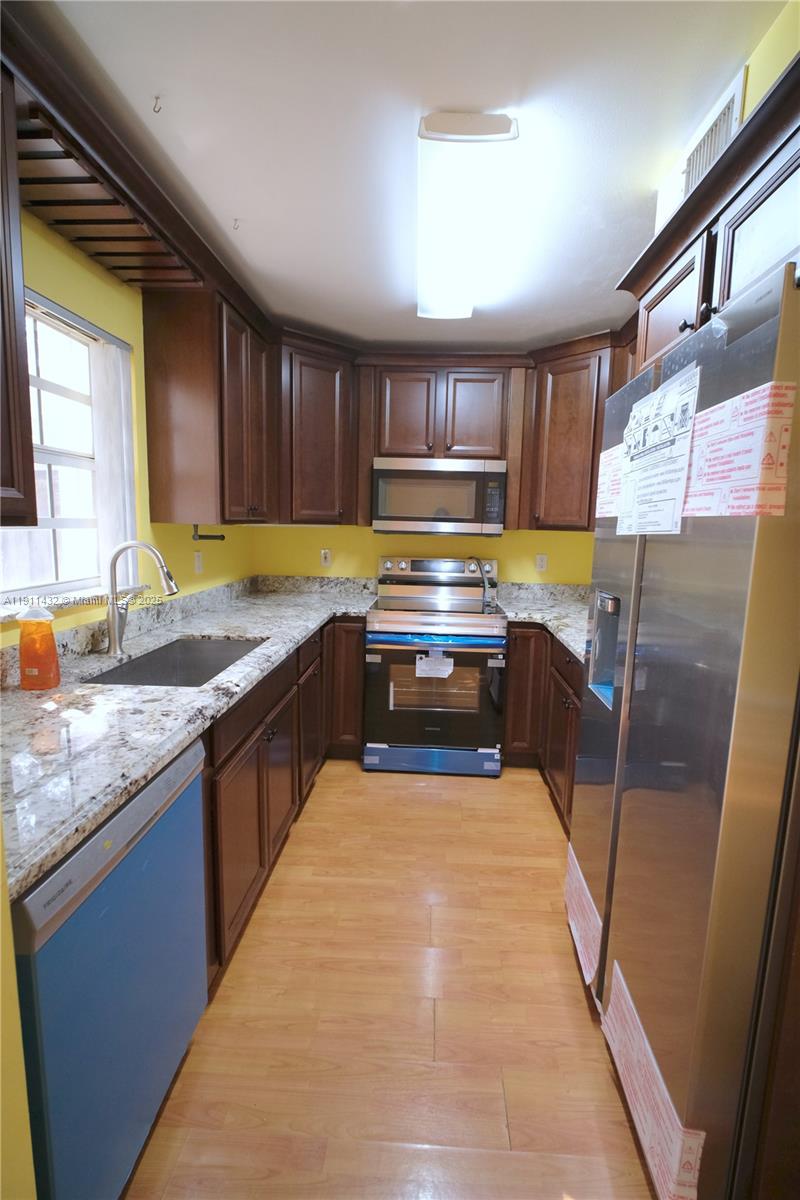 Beautiful 3/2/1 townhome with attached garage in highly desirable Flamingo Gardens, Cooper City. Spacious layout, 1, 668 sq ft with brand-new, unused stainless-steel fridge, range, and dishwasher, plus washer & dryer in garage. All bedrooms feature ceiling fans with remotes and generous closet space. Accordion shutters on every window provide easy storm protection. Kitchen includes granite countertops and ample storage. Enjoy a private patio for entertaining and easy access to community amenities: pool, well-kept playground, dog park, tennis, volleyball, & basketball courts. HOA allows immediate leasing, no approval to move in, and corporate ownership OK. Truly investor-friendly! Rare opportunity! Rarely available in this sought-after area. Come see it today!