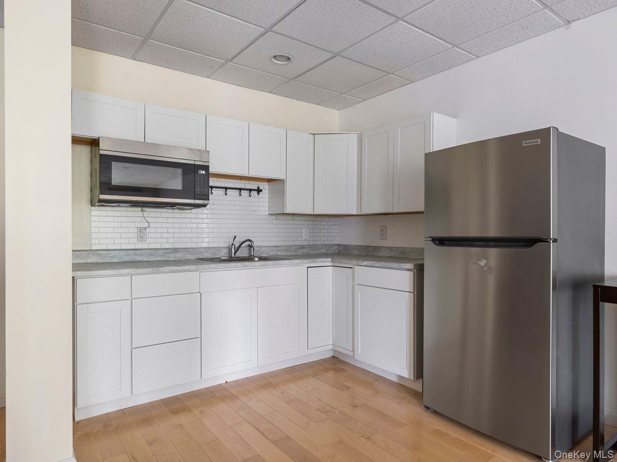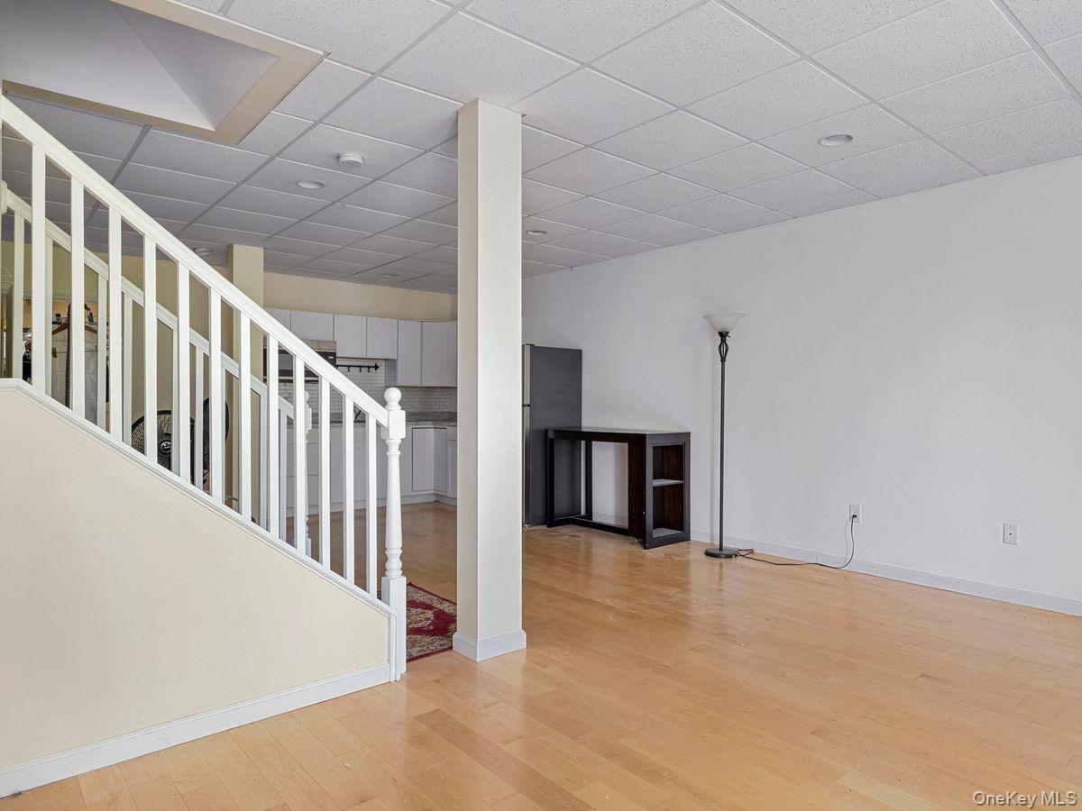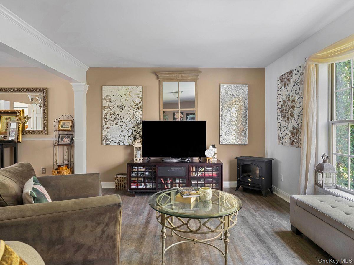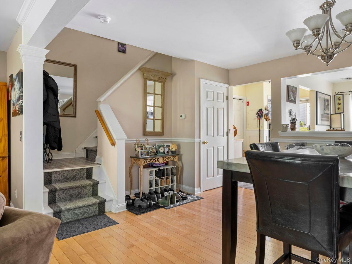 The first level offers a bright eat-in kitchen that opens into a combined dining and living area, creating a warm, connected space perfect for everyday living and entertaining.