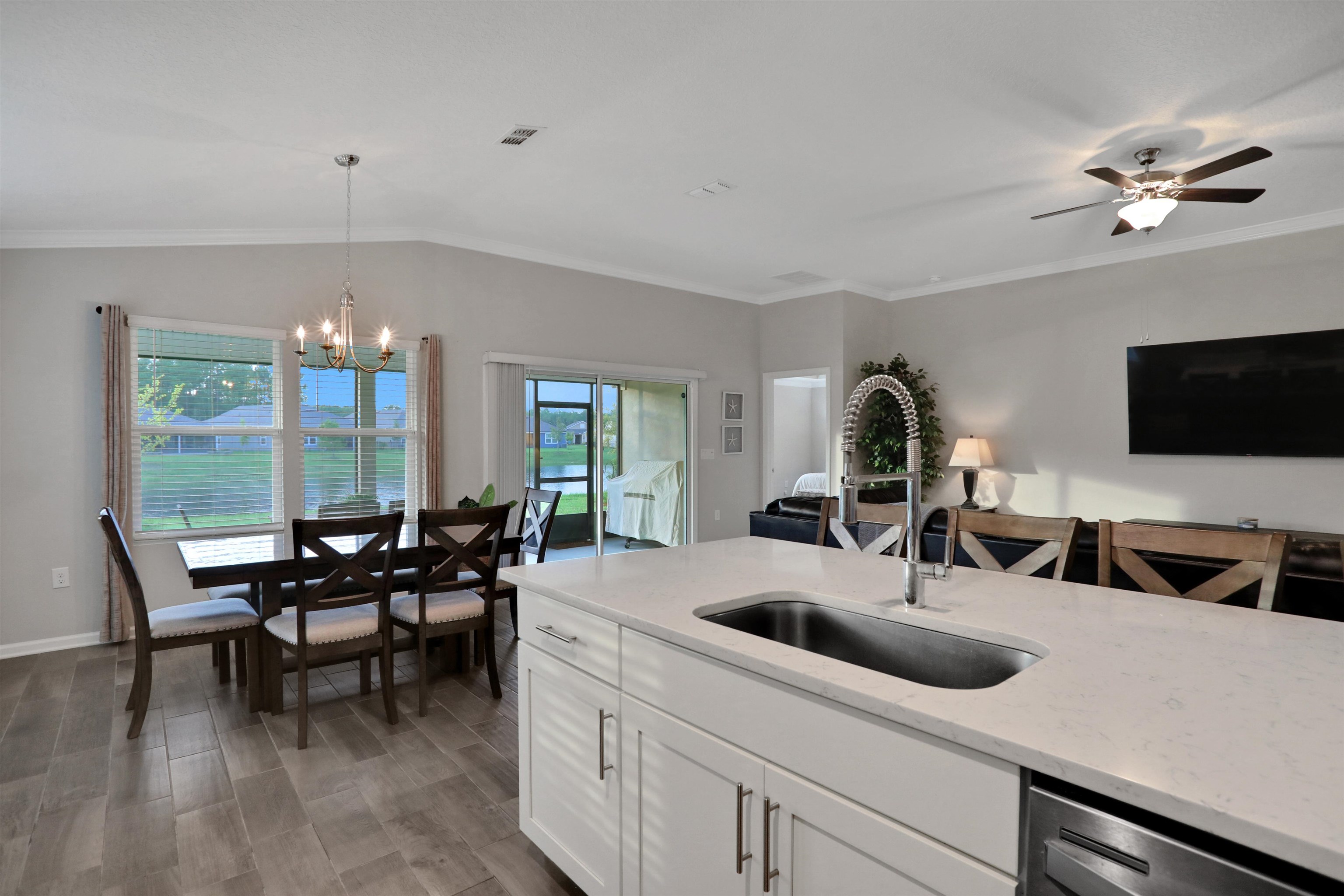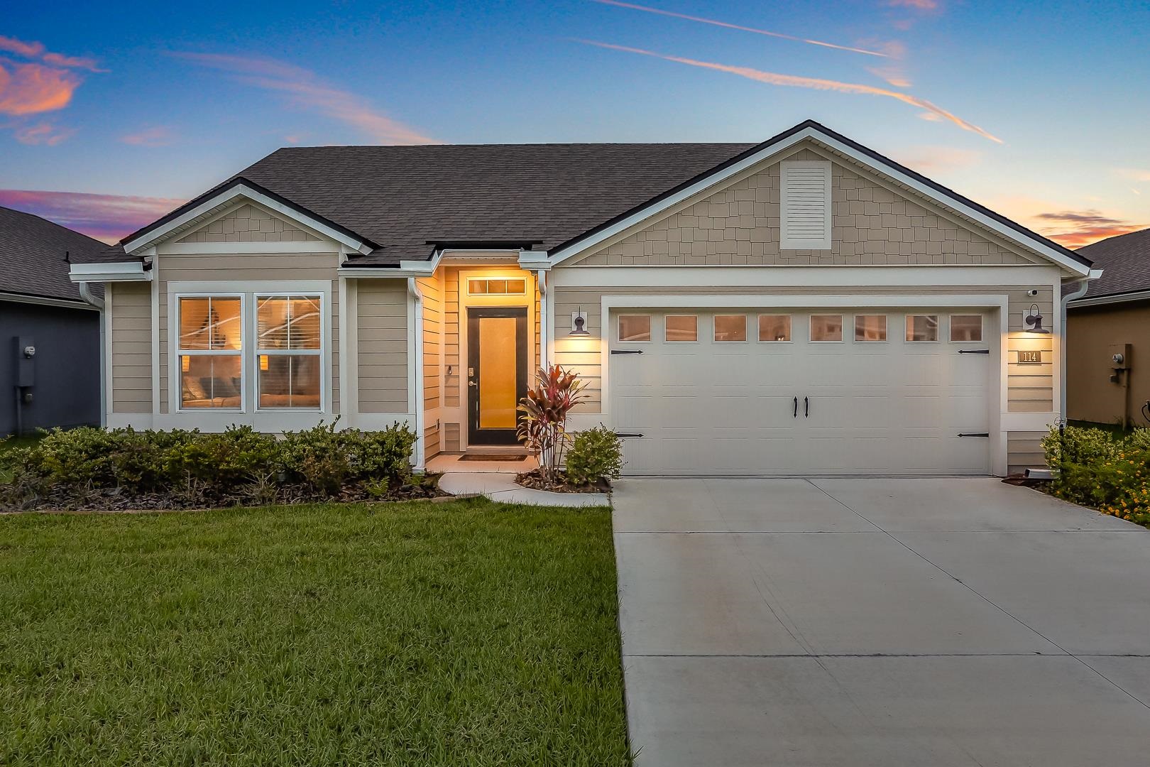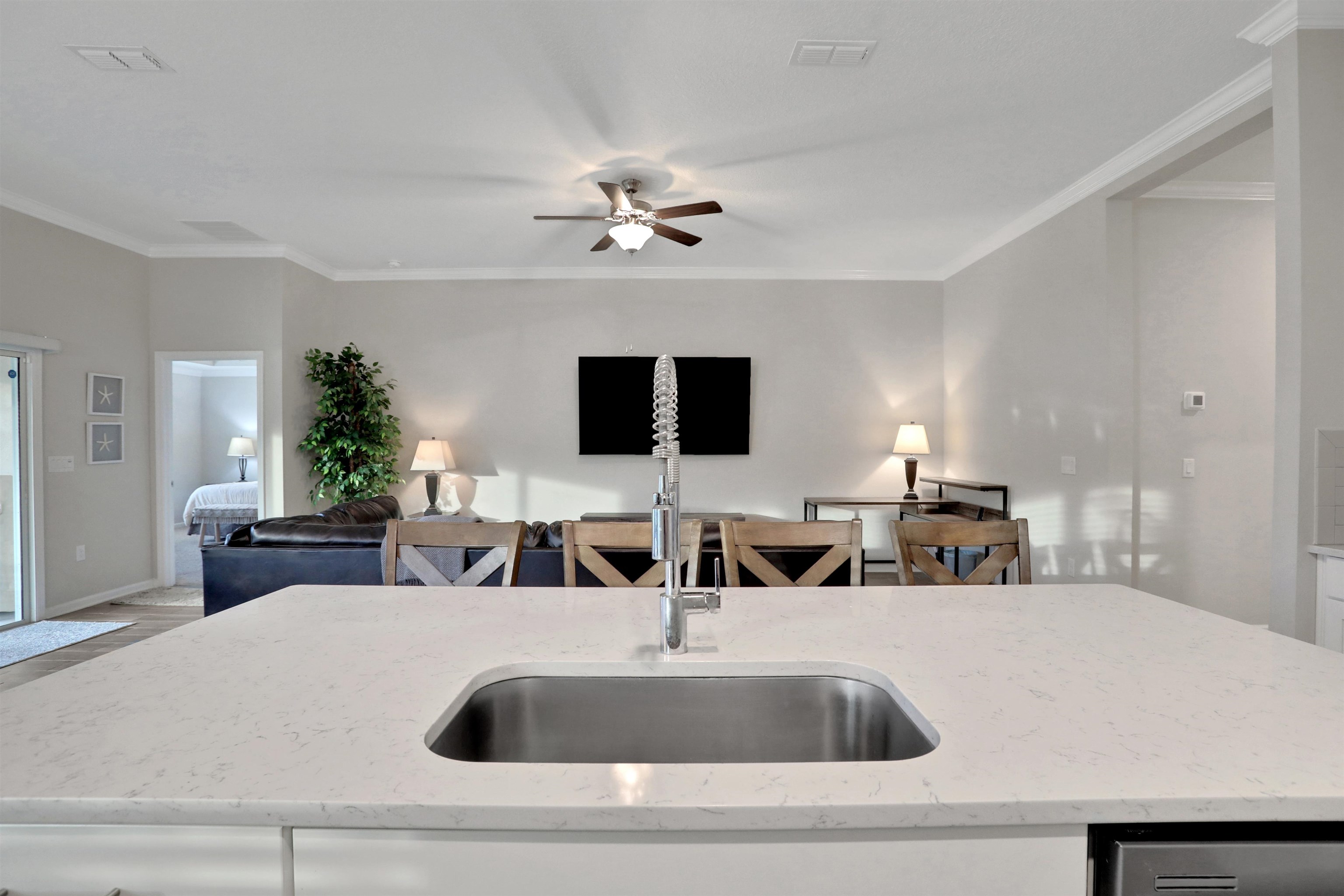 This beautiful home has 2 master bedrooms and a 3rd as well for office or guests. 3 Full bathrooms. Great big living and kitchen area with a quartz counter dining area. Stainless steel appliances. Fans in every room, crown molding. Large T. V. 's in every room. Completely furnished. Cabinets and work space in the garage. HOA covers the lawn maintenance. Community pool, gym, dog park, pickle ball and walking paths. So close to world golf village and historic downtown St Augustine.