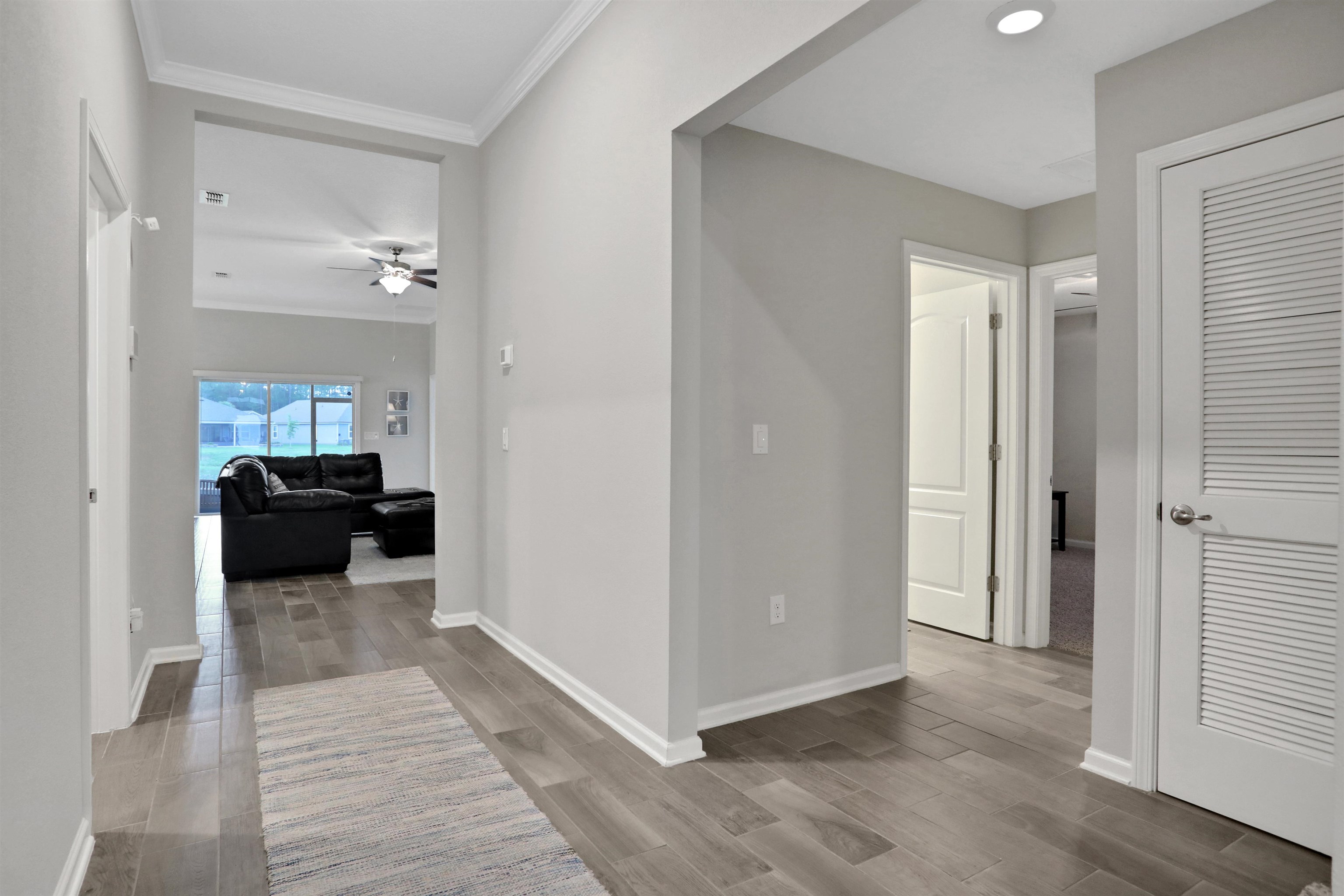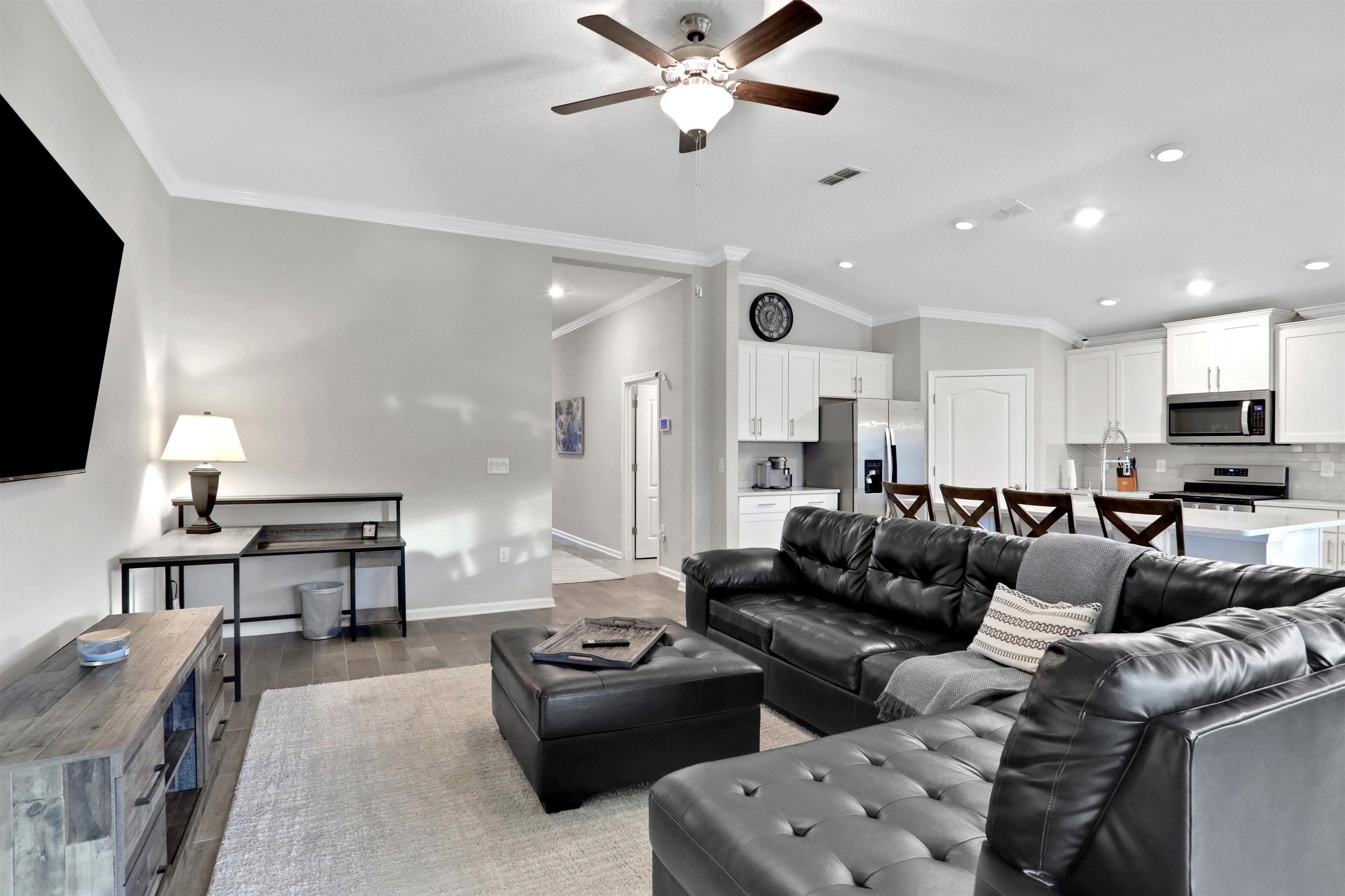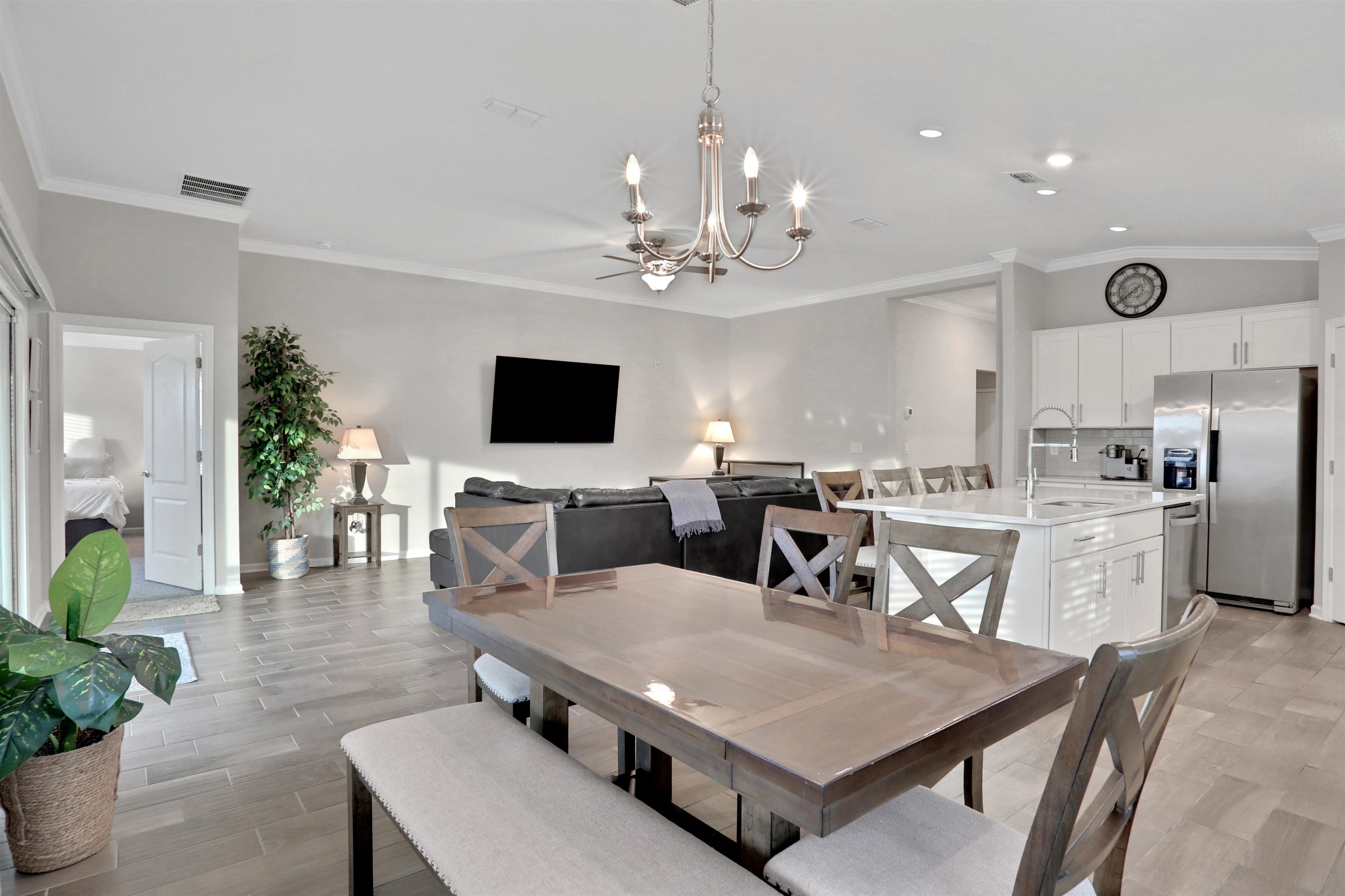 This beautiful home has 2 master bedrooms and a 3rd as well for office or guests. 3 Full bathrooms. Great big living and kitchen area with a quartz counter dining area. Stainless steel appliances. Fans in every room, crown molding. Large T. V. 's in every room. Completely furnished. Cabinets and work space in the garage. HOA covers the lawn maintenance. Community pool, gym, dog park, pickle ball and walking paths. So close to world golf village and historic downtown St Augustine.