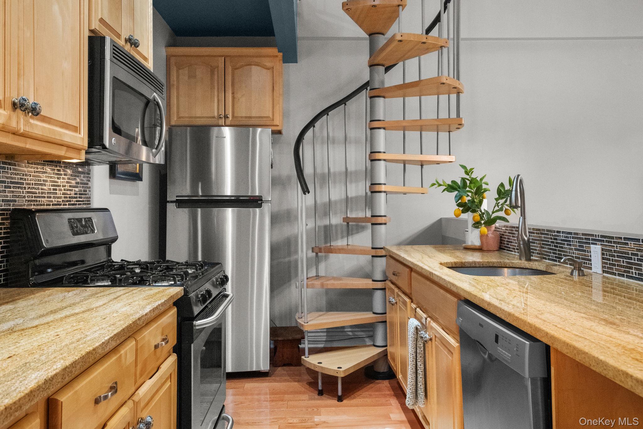 Discover this stunning penthouse in Ossining’s landmark 1820s schoolhouse conversion, where SoHo loft vibes blend with Hudson Valley charm. With dramatic architectural lines including soaring ceilings, exposed brick, wood beams, copper piping, and clerestory windows, every detail tells a story. The open-concept main level features a sunlit living room, elevated kitchen with granite counters and stainless appliances, and a designer half bath. Upstairs, a loft provides the perfect flex space for an office or guest area. The lower level offers two ensuite bedrooms with high ceilings and oversized windows, including a spacious primary suite with walk-in closet and spa-inspired bath. Private washer and dryer in home and on-site storage. Two assigned parking spaces included. Within a few blocks to the shops, cafes, Metro-North, Ossining’s beautiful Hudson Riverfront with marinas, Old Croton Aqueduct Trail, and Ossining’s vibrant downtown scene.