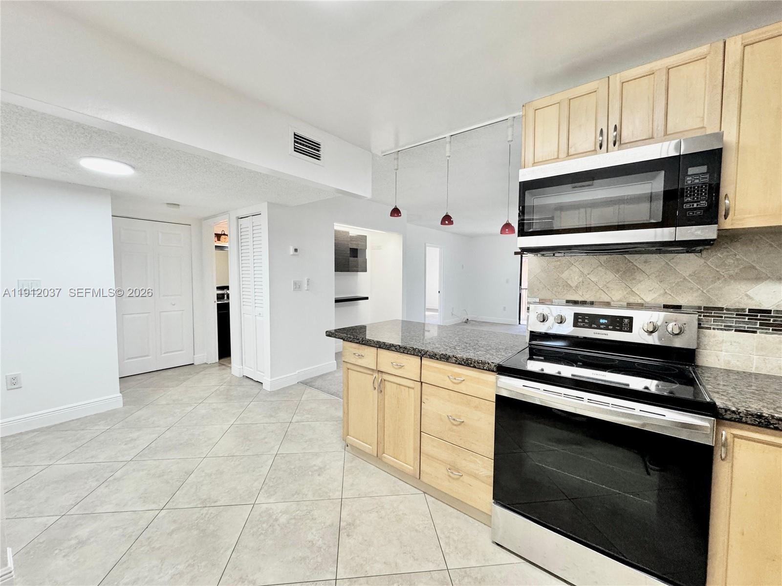Excellent Location in Sunrise! Beautiful corner unit 2-bed/2-bath condo offering 1, 080 sq ft of spacious living in a well-maintained community. This stunningly renovated residence features an open-concept kitchen with custom wood cabinetry, quartz countertops, backsplash, and stainless steel appliances. Both bathrooms have been fully upgraded with porcelain tile and modern granite vanities. Enjoy the convenience of washer & dryer inside, accordion hurricane shutters, and two large screened patios—perfect for relaxing or entertaining. Water included in rent. Assigned parking. Ideally located near major highways, restaurants, and shopping centers. Priced to rent immediately.
