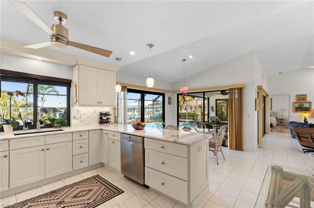 Find your dream home right in the heart of Marco Island. Set on an oversized corner lot surrounded by lush landscaping and fruit trees, this inviting 3-bedroom, 2-bath residence offers a comfortable layout that feels both open and welcoming. The kitchen, updated in 2018, connects easily to the living room where you can take in peaceful canal views through large windows that fill the space with light. The primary suite is spacious and relaxing, with vaulted ceilings, 24” tile floors, a generous walk-in closet, and a beautiful bathroom featuring a soaking tub, walk-in shower, and double vanity. Tile floors run throughout the home, giving it a clean, low-maintenance style that fits the Marco lifestyle perfectly. Step outside to your own private retreat. The pool area overlooks the canal and includes a private dock—ideal for boaters, anglers, or anyone who loves to be on the water. With less than a 10-minute ride to the Marco River, you’ll have easy access to waterfront dining, fishing spots, and some of the best sunsets on the coast. Built with quality and peace of mind in mind, the home features a metal tile roof, new impact windows and doors (except on the covered lanai, which is protected by a hurricane shutter), and two hot water heaters. The two-car garage offers plenty of extra storage space. This is a rare opportunity to own a home that truly captures the best of Marco Island living—comfortable, beautifully maintained, and ready for you to enjoy.