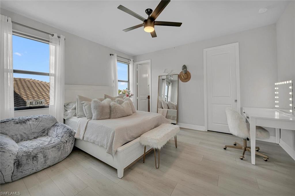 This stunning 6 bed, 6 bath Catalina Model home is a must see. The stately upgrades and luxurious features included in this home are the epitome of modern living in a sought-after location. Upon entering, you instantly feel at home as you take in the magnificent chandelier in the foyer. The heart of this home lies in the stunning kitchen, which comes equipped with quartz countertops, SS appliances, natural gas cooktop, soft close drawers, pull-out drawers, and an island that features a beverage cooler. The spacious Ground Floor Master Suite includes his and hers walk in closets with built in cabinetry, a spacious Master Bath featuring dual sinks, fabulous walk-in shower and separate water closet. There are 2 additional bedrooms and laundry room with new washer and dryer on the ground level. The 2nd level features very a spacious bonus/flex room, 2 large ensuite bedrooms and a 3rd bedroom with separate full bath. Other features include: Large porcelain throughout the main living area, new luxury vinyl flooring in all 6 bedrooms and loft, Impact resistant windows/doors, electric Kevlar Hurricane screens on the back of the home and a reverse osmosis system for purified water throughout the home. Step outside onto the screened, western facing lanai where relaxation and entertainment converge. Delight in the heated saltwater pool and spa, surrounded by a paver deck. An outdoor fireplace adds warmth and ambiance, while the outdoor kitchen offers a gas grill and kegerator to cater to your culinary desires. Practice your putting skills on the custom putting green or simply bask in the Florida sunshine. The 3-car garage offers ample storage space and features epoxy flooring for a polished finish and even comes equipped with a Tesla car charger. Experience luxury living at its finest in Stonecreek, which offers resort style amenities featuring a stunning clubhouse, resort-style pool, tennis, basketball, and pickleball courts, a playground, and a dog park. Stonecreek is a quick drive to the lovely Naples beaches, restaurants, and shopping centers. Don't miss this opportunity!