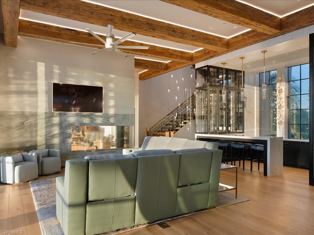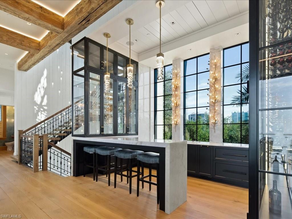 A stunning new home in The Strand at Bay Colony - one of Naples’ most exclusive beachfront communities. Designed by Stofft Cooney Architects and built by BCB Homes, this 5-bedroom, 5. 5-bath custom residence blends contemporary coastal design with timeless craftsmanship. Light-filled open spaces feature wide-plank Legno Bastone floors, a 3-sided fireplace, and incredible natural finishes throughout. The gourmet kitchen includes high end appliances, Blue Roma quartzite counters, a full butler’s pantry, and a 400-bottle wine room. The top-floor primary suite offers sweeping Gulf views, dual closets, a spa bath, morning bar, and fitness studio. Outdoor living is a priority here with a resort-style pool, water feature wall, EVO grill, and reclaimed pecky cypress ceilings. It’s built to the highest standards with hurricane-rated windows & doors, generator, Control4 home automation, and private elevator. Wake up to the sound of the surf and walk straight onto the private sands of Bay Colony, or spend the day at the Beach and Tennis Club enjoying oceanfront dining and poolside relaxation. Behind you is 570 acres of untouched conservation land which offers a rare balance of nature and total privacy along Naples’ most coveted coastline.