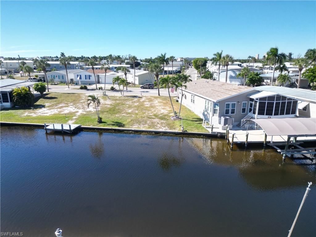 Bayside Estates has essentially two half’s, split down the middle by Stevens Blvd. There is the retention pond side and the saltwater side. Both have their benefits. This lot is located on the retention pond side so there is always plenty of water in the canals. Once on the other side of the boat lift, the waterway to Hurricane Bay, Hell Peckney Bay, the Gulf of Mexico and beyond is completely unobstructed. Go shopping and pick out the manufactured home of your liking and have it delivered to this lovely lot and begin partaking in the benefits of this highly desirable community. As you can see, this lot has thousands of dollars in custom paver work, making your new home shine brightly. When looking to buy a vacant lot in Bayside Estates, you might consider a lot that has a seawall that is in good condition and a lot that already has a boat dock and boat lift included. This is one such lot. The boat lift has the aluminum structure in place for a boat cover. Bayside Estates is the best kept secret of Fort Myers Beach. This incredibly active and friendly 55+ community is the crown jewel on the gulf coast. Bayside estates is only 2. 5 miles to the beach and is accessible by either car or boat--right from either your driveway or private boat dock. A very popular activity is riding your electric bicycles to the beach for the day and visit the world-famous Jimmy Buffett’s Margaritaville. Just don't step on a pop-top!!. Nearly all of the major retail vendors are within a very short driving distance for ultimate convenience. For those who don’t know a lot about Bayside Estates, it is a very fun place to call home---some would even say it’s a mature person’s playground. Whether you want to play pickleball, tennis or bocce ball or hang out at the community pool, or simply cruise the hood in your golf cart, there is always something going on around here. People are friendly and you will be warmly welcomed.