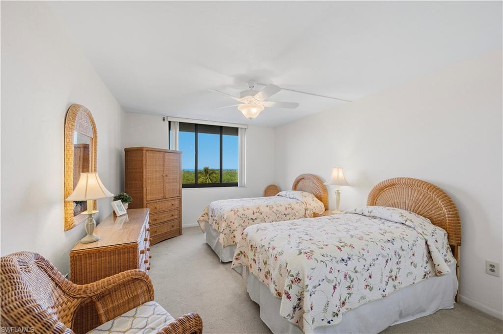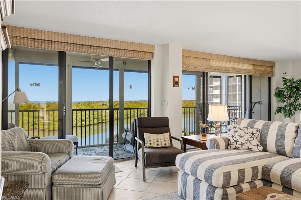 Experience gorgeous sunsets and unobstructed gulf and bay views from your rarely available 3 bedroom, 3 bath condo boasting over 2100 sq ft of coastal living! The expansive lanai which runs the length of the great room and primary bedroom offers panoramic vistas of dolphin, manatees and herons within the mangrove preserve of Delnor Wiggins State Park. Only a 5 minute stroll to Vanderbilt Beach while providing peace of mind with electric shutters and a coveted covered parking spot. Plenty of room for your beach toys and bikes with 2 exterior storage units and condo fees cover everything but electric. 9, 30 day leases are permitted and Vanderbilt Surf Colony 1 has it all with a Private Lap Pool, Tennis, Pickleball, Bocce and Kayak lease spaces. Marina Boat Docks for lease pending availability. The Vanderbilt Surf Colony lobby has also been completely remodeled to include a fully equipped exercise room and social room with kitchen and ping pong table. The building also boasts a new roof, elevators, exterior paint and lanais. The condo is offered turnkey furnished so there is nothing to do but relax and enjoy your condo located on Naples "best kept secret peninsula", tucked away from the hubbub but minutes to Mercato fine dining, shops and entertainment. Paradise awaits!