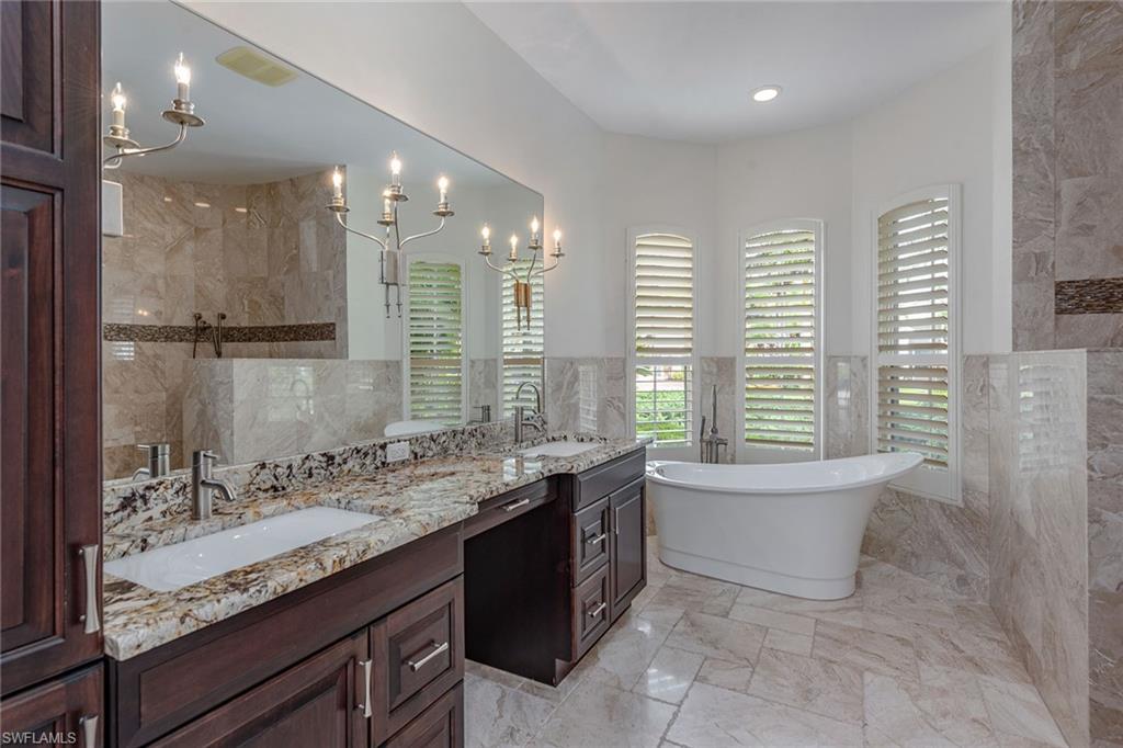 Positioned to capture sweeping west-facing water and golf course views, this refined three-bedroom, two-and-a-half-bath estate home in Eagle Creek Golf and Country Club offers a rare blend of privacy, elegance and resort-inspired living. As the sun sinks over the fairways, enjoy an unrivaled front-row seat to Naples famed sunsets from nearly every vantage point. Inside, marble flooring flows throughout most of the residence, setting a sophisticated tone that carries from the foyer into the bright and open living spaces. The updated kitchen, designed with form and function in mind, features solid wood cabinetry, premium appliances and a walk-in pantry, a thoughtful blend of timeless design and everyday utility. The light-filled primary suite is a serene retreat, with long views of the pool and tranquil vistas beyond. Two custom walk-in closets and a bath finished in elegant marble add a quiet sense of luxury. Outdoors, the residence unfolds into a destination all its own. A large covered lanai and expansive marble pool deck frame the oversized pool and spa, while a panoramic screen enclosure ensures every view remains uninterrupted. It’s a space designed to be peaceful and social, equally suited for quiet mornings or evening gatherings. Recent updates, including a newer tile roof, air conditioning system and water heater, provide peace of mind and lasting value. A short distance away, the newly renovated Eagle Creek clubhouse invites residents to experience championship golf, elevated dining and a vibrant social calendar. For those seeking wellness and leisure, the nearby Crystal Lake clubhouse offers outdoor dining, a fitness facility, tennis and pickleball, and a resort-style pool set among lush landscaping. This is more than a home, it’s a lifestyle framed by views, and tailored for the best of country club living.