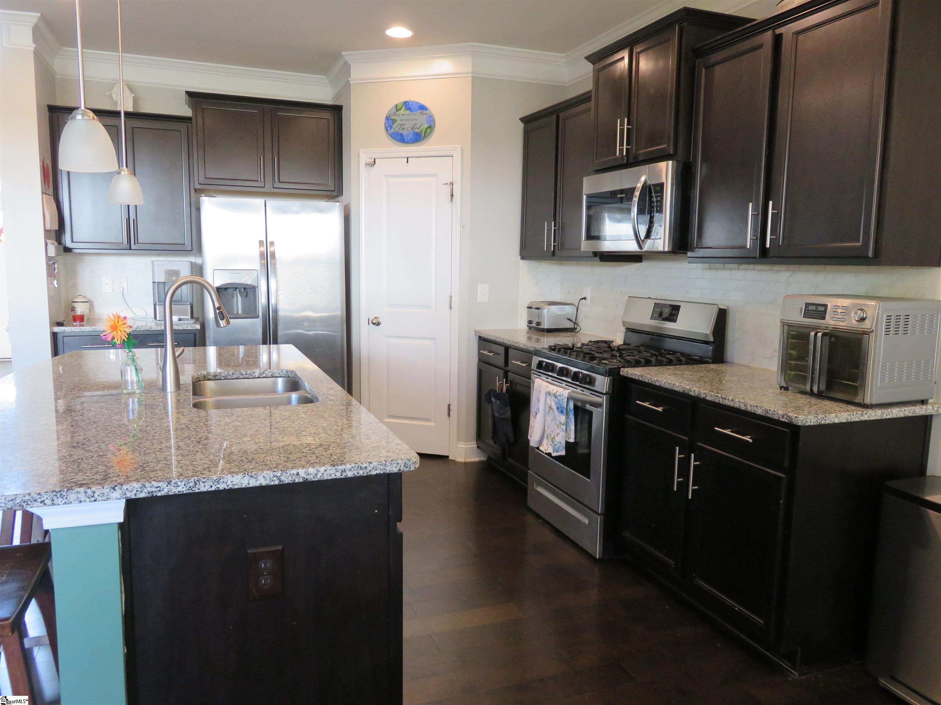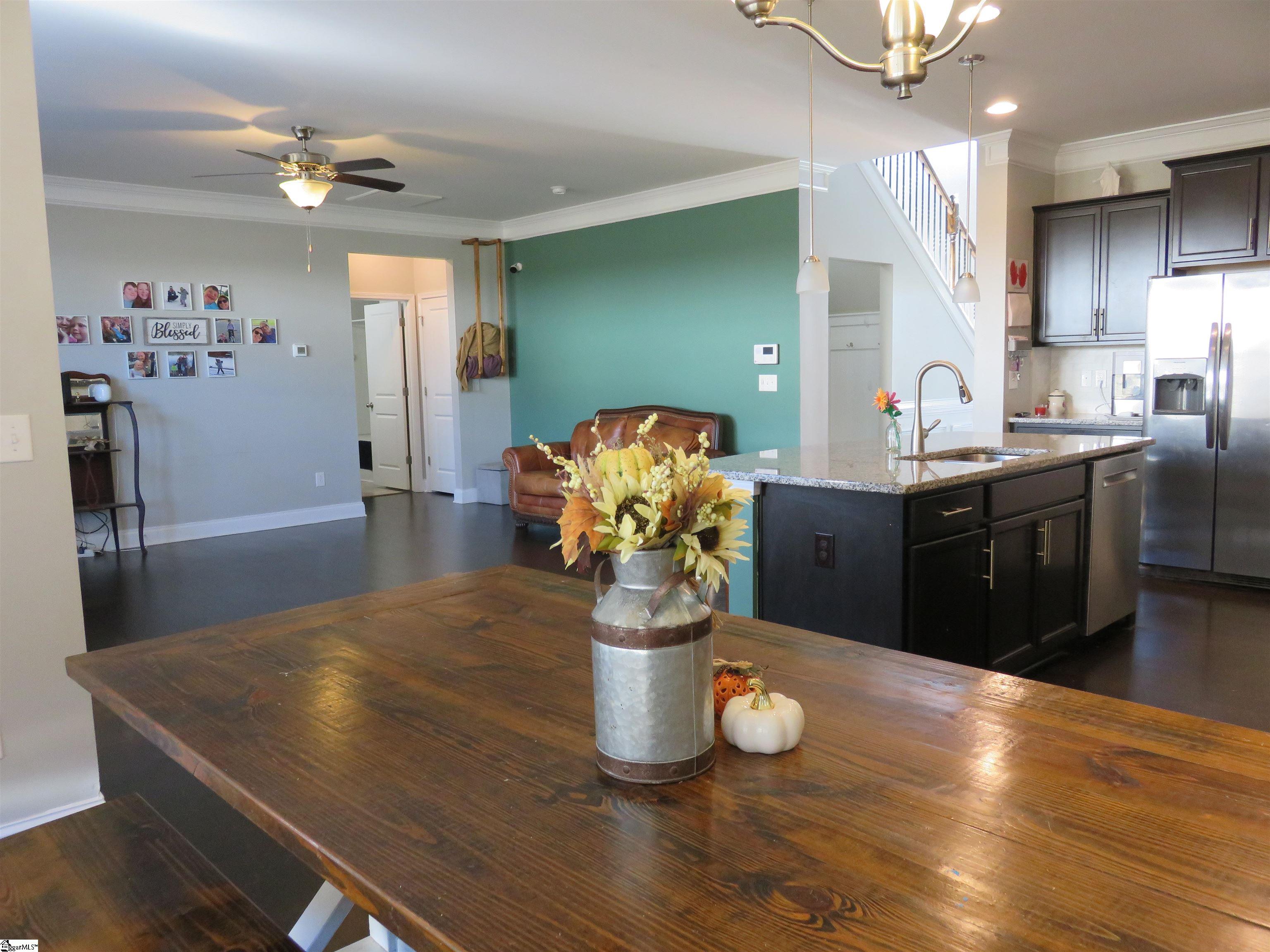 Your new home awaits in Franklin Pointe! This massive 2558 square foot home built in 2018 sits in a quiet Greer cul-de-sac and offers 4 bedrooms, 3 full bathrooms, and additional space for all of your needs both inside and out. Showcased in the formal dining room are beautiful coffered ceilings and chair rail molding, and it has been closed off to give you the option to use it, as is it now, for a home office or additional flex space. You'll find 9 foot ceilings throughout the downstairs and the open living area features a gas fireplace, huge 7. 5 foot granite-topped island, walk-in pantry, gas range amongst all stainless steel appliances, and a casual dining/breakfast area. Upstairs, you'll find a very accommodating primary bedroom complete with trey ceiling and a French door entry that opens to your upstairs foyer that could serve quite well as a sitting/reading nook. The primary bathroom offers a garden tub and separate shower, and no shortage of space in your walk-in closet. 2 additional bedrooms and full bathroom round out the 2nd level along with a spacious rec/flex room above the garage. You have extra overhead storage in your 2-car garage and also in the attic. The covered back porch will be perfect for entertaining or embracing outdoor living while enjoying the privacy of your fully fenced back yard. Roof is new as of June 2025, dishwasher installed 2024, new irrigation in the front yard, storage building in back to convey. Schedule your showing today!