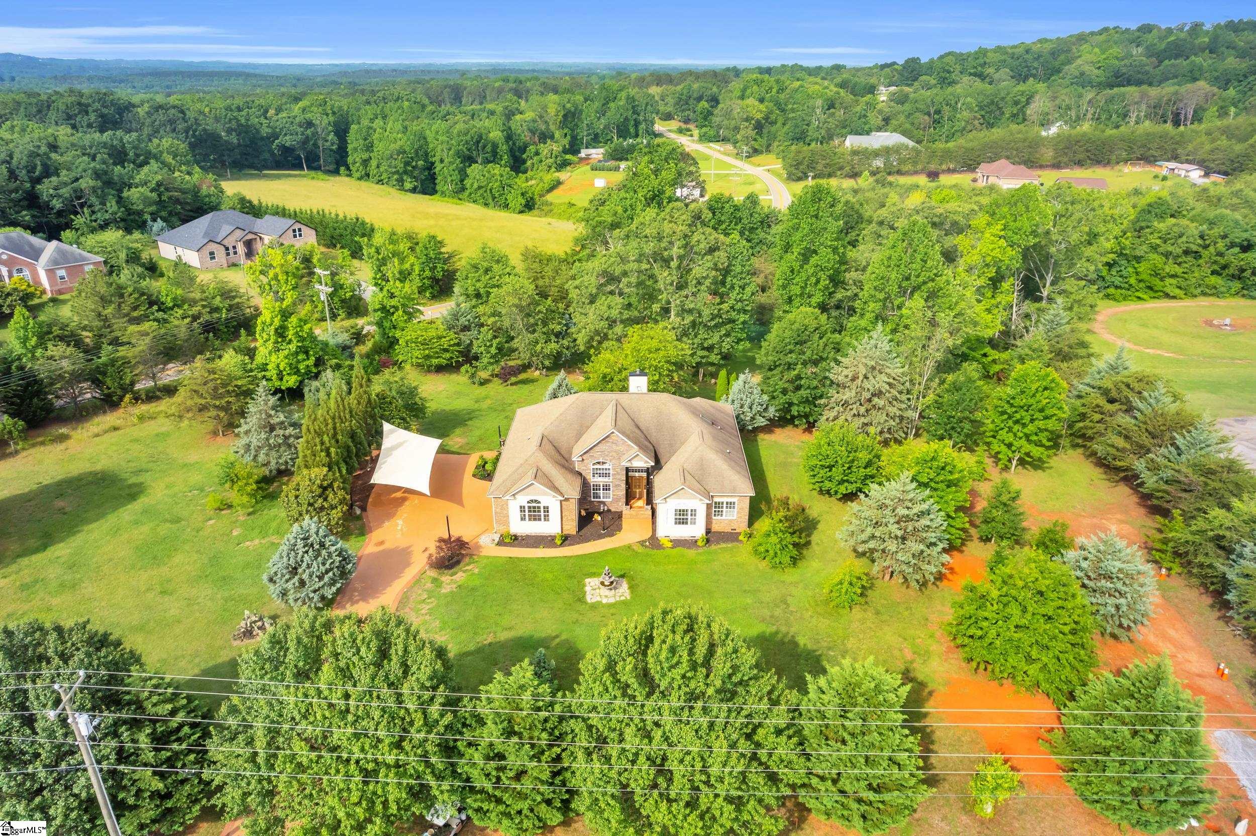 NO HOA! It is truly a dream! Discover the perfect blend of luxury and tranquility with this stunning custom 4-bedroom, 2-bathroom home set on a gorgeous 2-acre lot in beautiful Campobello. Boasting an impressive 2, 831 square feet, this residence features soaring two-story ceilings in all main area, an awesome loft and bridge that overlook the living area and kitchen, and a thoughtfully designed floorplan that is truly one of a kind. Enjoy the expansive outdoor space with a very large parking/patio area adorned with shade sails, alongside an extra-large garage complete with workshop space. Surrounded by breathtaking landscapes featuring rare trees, this property offers peace and serenity while being conveniently located near top-rated schools and easy access to highways and I26. Homes like this don’t come up for sale often—seize your chance to own a piece of paradise that has been tenderly loved!