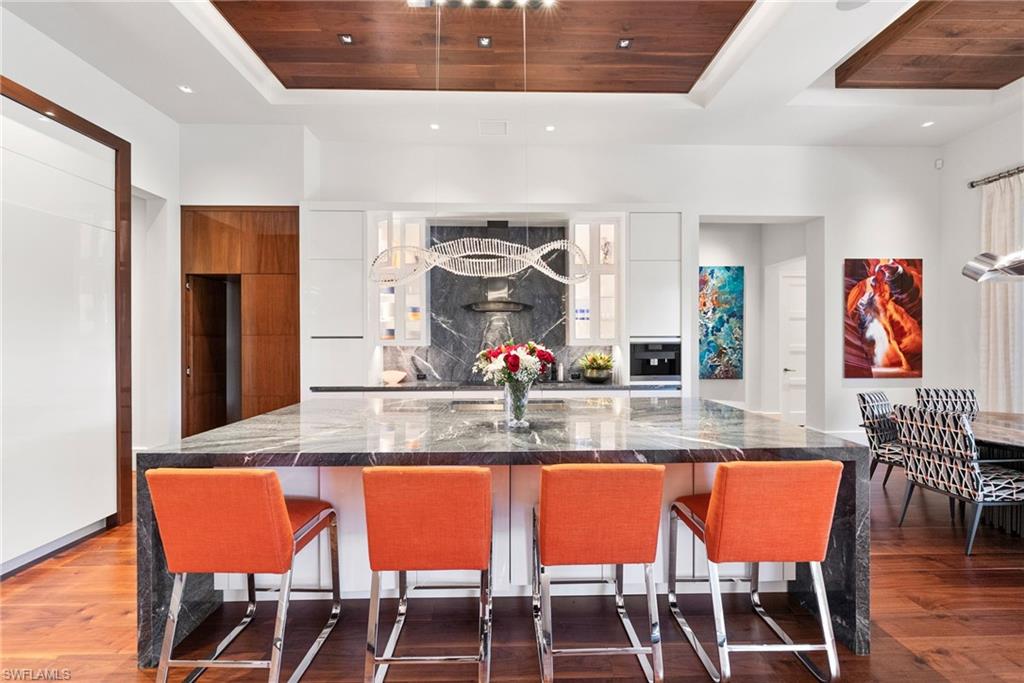 A residence conceived with the poise and indulgence of a world-class Las Vegas retreat—nestled within the exclusive enclave of Bonita Bay. Commandingly set along the 18th fairway of the Marsh Course, this 2022 architectural statement by Harwick Homes, in collaboration with renowned designer Sherri DuPont, redefines bespoke living through an extraordinary fusion of artistry, innovation, and precision craftsmanship. Each space within the home reflects a distinct vision of grandeur: five ensuite bedrooms plus a study, framed by expressive architecture and opulent material selections. The interiors unfold like a private gallery—where custom furnishings, commissioned art, and sculptural lighting create a cinematic interplay of texture, color, and form. Every detail was conceived not simply to impress, but to immerse. The outdoor realm rivals a five-star resort, with expansive terraces, tranquil water features, and a resort-caliber pool environment that transitions seamlessly from day to dusk, overlooking the course’s most dramatic vistas. Entertaining flows effortlessly between interior and exterior spaces, each crafted for both lavish gatherings and quiet reflection.