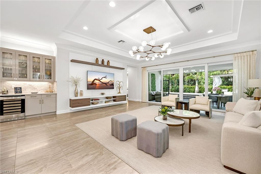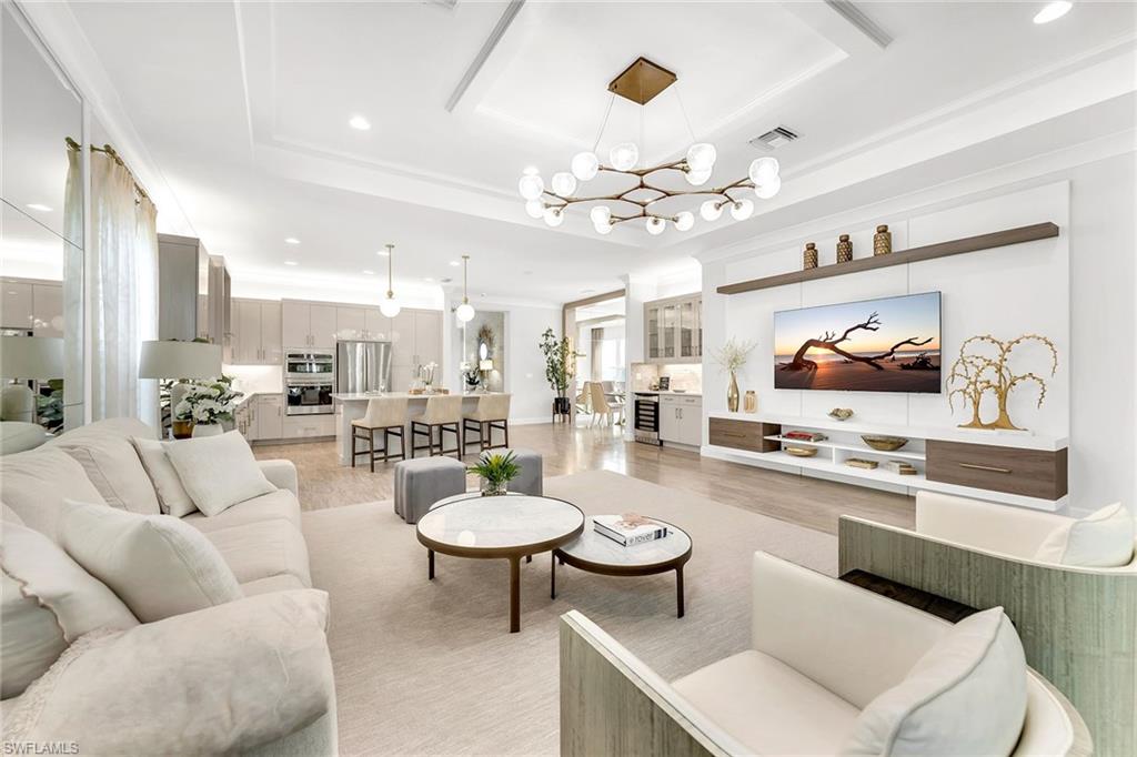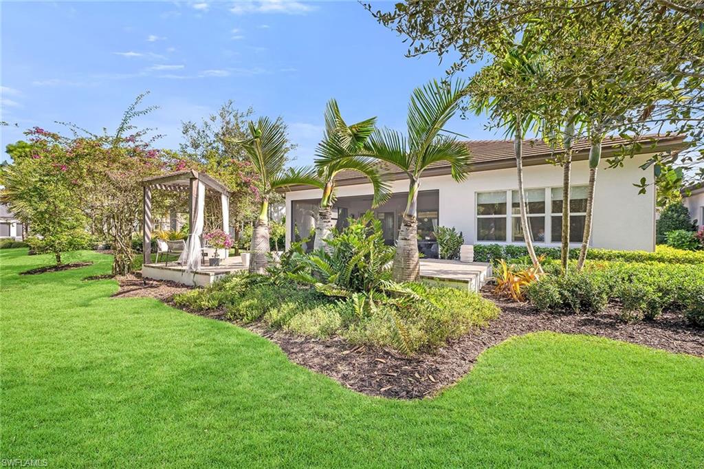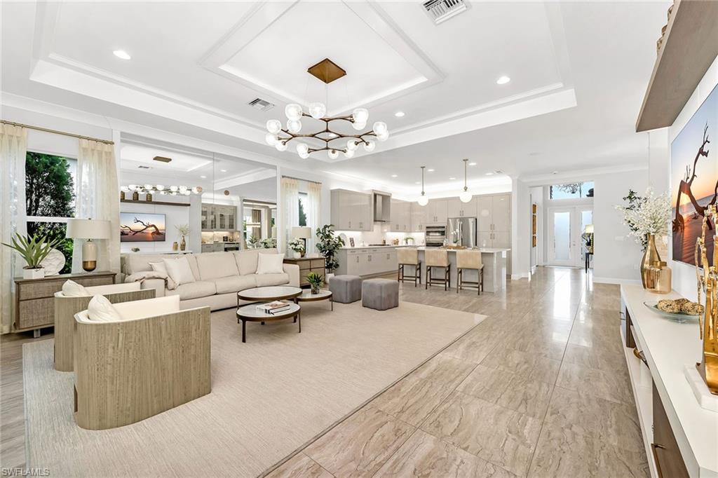 Former developer-owned, fully furnished and professionally decorated Sanddollar model, this turnkey residence has been hardly lived in and beautifully enhanced by the owner. Ideally on a lushly landscaped cul-de-sac within a former Parade of Homes enclave, the setting offers privacy and showcase appeal. New community in a no-flood zone. Beautiful open floor plan includes all furniture and accessories as seen, complete with upgrades galore by renowned builder/developer GL Homes is now available for sale in the 55-plus new, resort-style gated community, Valencia Trails. This former model is 2, 469 square feet with two bedrooms plus den/optional third bedroom, 2. 5 baths, extended/oversized and screened picturesque lanai with stunning private views of the preserve, and rear and side door entry leading to a beautiful multi-level custom pavers patio with romantic bougainvillea arbor, decorative chandelier and fire pit, all visible from front entry. Absolutely stunning and spacious open floor plan with soaring 14-foot entryway ceilings. Upgraded lighting, generous custom built-in closets, coffered ceilings, upgraded millwork and bath fixtures. Oversized dining area, and beautifully integrated custom wine bar/coffee station. Gorgeous contemporary kitchen features recessed lighting, upgraded appliances, oversized island and plenty of cabinetry. Reasonable dues, and no annual fees or membership. Dues include central station alarm system with a medical alert system, rubbish removal, landscape maintenance services and staffed main gate. Enjoy your new state-of-the-art clubhouse featuring a restaurant and bar, resort-style pool, lap pool, resistance pool, gym, live music, art classes, cooking classes, day spa, tennis, pickleball, group activities, numerous clubs, Broadway-style shows, trips, visiting farmers markets, vendor shopping, large and small dog parks, and miles of recreational/biking trails. Easy maintenance and luxury lifestyle, one of a kind. Enjoy your three clubhouse pools and let someone else handle the maintenance. Save the headache, hassle and thousands of dollars moving your furniture.