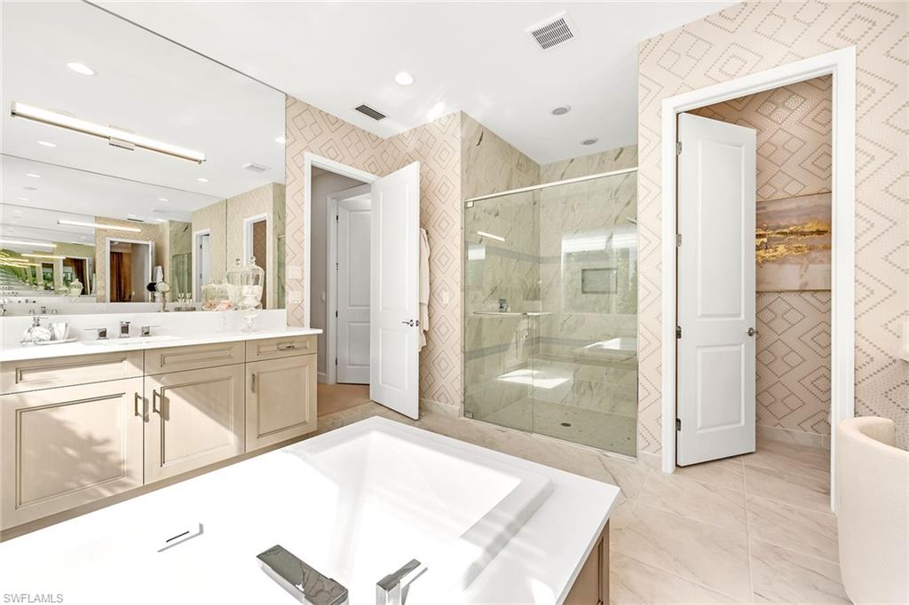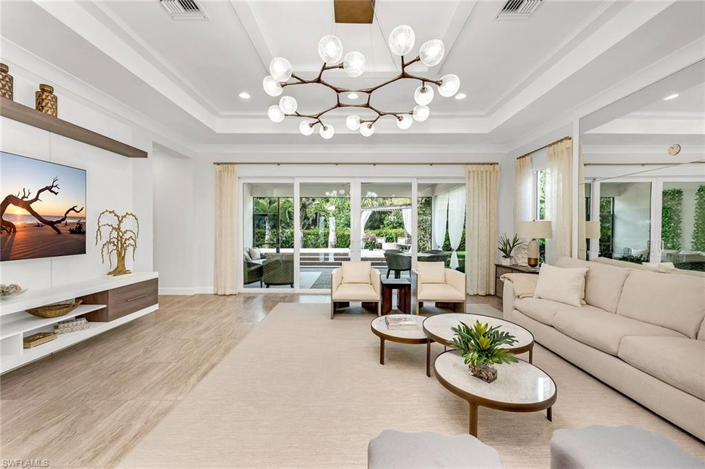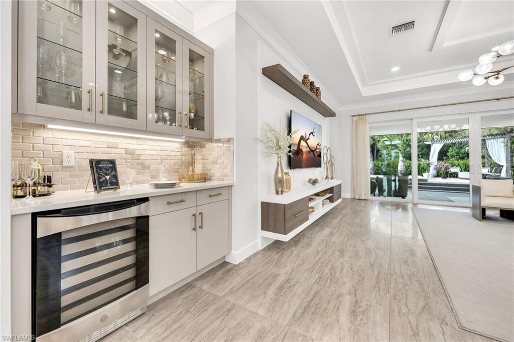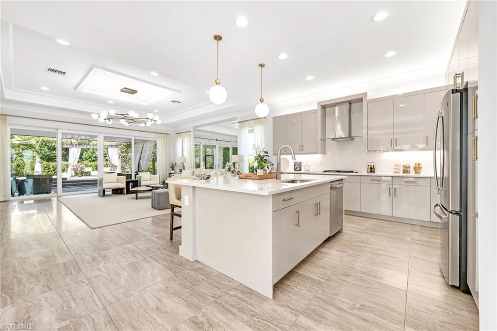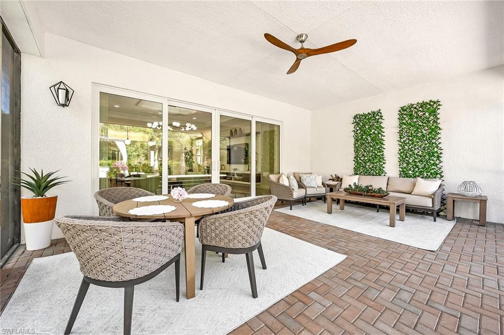 Former developer-owned, fully furnished and professionally decorated Sanddollar model, this turnkey residence has been hardly lived in and beautifully enhanced by the owner. Ideally on a lushly landscaped cul-de-sac within a former Parade of Homes enclave, the setting offers privacy and showcase appeal. New community in a no-flood zone. Beautiful open floor plan includes all furniture and accessories as seen, complete with upgrades galore by renowned builder/developer GL Homes is now available for sale in the 55-plus new, resort-style gated community, Valencia Trails. This former model is 2, 469 square feet with two bedrooms plus den/optional third bedroom, 2. 5 baths, extended/oversized and screened picturesque lanai with stunning private views of the preserve, and rear and side door entry leading to a beautiful multi-level custom pavers patio with romantic bougainvillea arbor, decorative chandelier and fire pit, all visible from front entry. Absolutely stunning and spacious open floor plan with soaring 14-foot entryway ceilings. Upgraded lighting, generous custom built-in closets, coffered ceilings, upgraded millwork and bath fixtures. Oversized dining area, and beautifully integrated custom wine bar/coffee station. Gorgeous contemporary kitchen features recessed lighting, upgraded appliances, oversized island and plenty of cabinetry. Reasonable dues, and no annual fees or membership. Dues include central station alarm system with a medical alert system, rubbish removal, landscape maintenance services and staffed main gate. Enjoy your new state-of-the-art clubhouse featuring a restaurant and bar, resort-style pool, lap pool, resistance pool, gym, live music, art classes, cooking classes, day spa, tennis, pickleball, group activities, numerous clubs, Broadway-style shows, trips, visiting farmers markets, vendor shopping, large and small dog parks, and miles of recreational/biking trails. Easy maintenance and luxury lifestyle, one of a kind. Enjoy your three clubhouse pools and let someone else handle the maintenance. Save the headache, hassle and thousands of dollars moving your furniture.