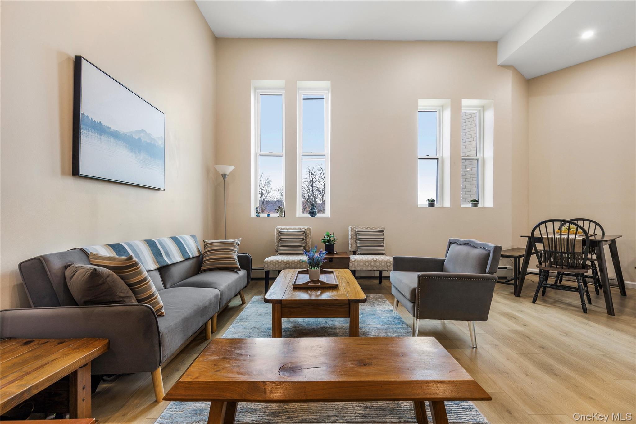 Step into this stunning loft-style duplex, where soaring ceilings and seasonal Hudson River views create an airy, inviting atmosphere. Ideally located just minutes from the Peekskill train station, vibrant waterfront, and acclaimed local dining, this home combines style, comfort, and convenience. The main level features an open-concept living and dining area bathed in natural light from brand-new oversized windows. The updated kitchen offers sleek stainless-steel appliances—perfect for both cooking and entertaining—while a renovated powder room adds everyday ease. Upstairs, the spacious primary suite includes a bright, fully renovated bathroom and a generous walk-in closet. The second bedroom offers ample closet space, its own private bath, and an in-unit washer/dryer hook-up. Residents of Waterview Estates enjoy premium amenities, including a swimming pool and tennis court. The home also comes with two assigned parking spaces and is pet-friendly (one dog up to 50 lbs or two cats). Just a one-hour commute to New York City via Metro-North or car, this home offers the perfect blend of tranquil riverfront living and urban accessibility!