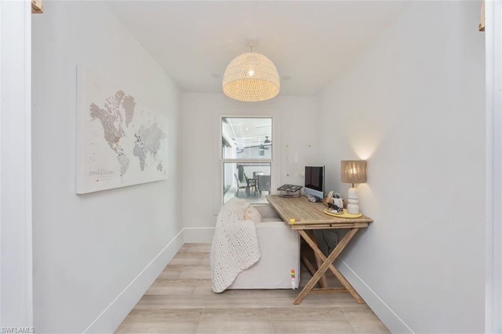Outdoors is a true waterfront Oasis with easy Gulf Access that will make any boater rejoice. The private backyard dock has a 12, 000 lb boat lift with 10’ beam and a wet slip. The backyard is a resort playground every day with a Sparkling pool, fully equipped outdoor kitchen, charming tiki hut, personal putting green, and a Rooftop perch for sunset views and golden-hour cocktails.