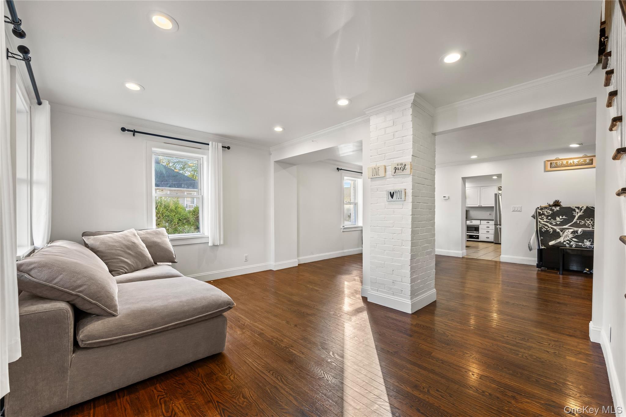 This move in condition Colonial features an expanded layout, interior 1846 square feet, with low taxes and part of the Blue-ribbon North Shore School District. First floor: living room, dining room, expansive country kitchen with breakfast bar, full bath, family room. Second floor: Primary bedroom plus 3 additional bedrooms, full bath. Full basement, partially finished and private driveway with 1-car garage. CAC, impressive SOLAR PANELS, and Gas heating system. Close to banks, supermarkets, fine dining and shopping. Close to LIRR.