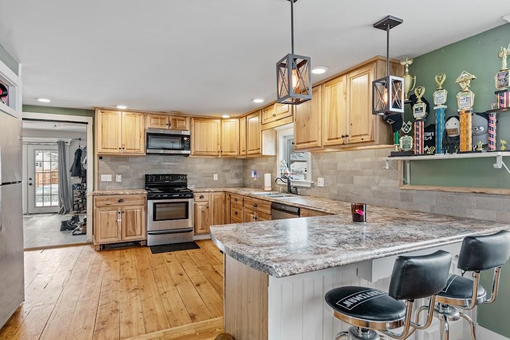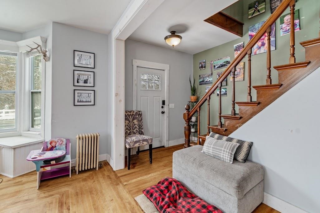 NO FLOOD ZONE – total peace of mind. Own a 1902 classic reborn: all the timeless charm, zero old-house headaches. Newer roof overhead. Dry fieldstone basement below with poured concrete floor, 7-year-new furnace, hot water heater, and upgraded electrical panel—systems locked in, nothing to fix. Just unpack and unwind. Throw open the iconic red door to stunning wood floors that twist in hypnotic grains. Soaring ceilings fire up your vibe; sunlight blasts through the bay window like molten gold. The beast mudroom crushes boots, gear, and bags. Storm the killer kitchen: massive counters, sleek stainless appliances, room to move while sauce reduces. Full bath on main level keeps flow effortless. Charge the original staircase to four big bedrooms, second full bath, and the ultimate flex: dedicated second-floor laundry that ends chore wars. Clever built-ins and storage ambush every corner. Roll into the oversized one-car garage with space to tinker. Fully fenced backyard demands action—roaring fire pit primed for epic roasts and star-soaked stories. All this in the beating heart of postcard-perfect Johnson: feel the thrum of the historic woolen mill, the sizzle of fajitas or fresh coffee pull, the brand-new General Store a short stride away. Nod to neighbors walking kids to elementary—no buses, no rush, just pure small-town love.