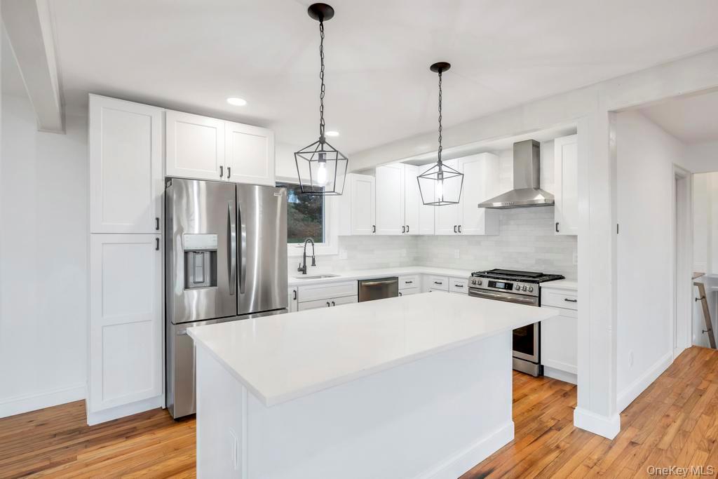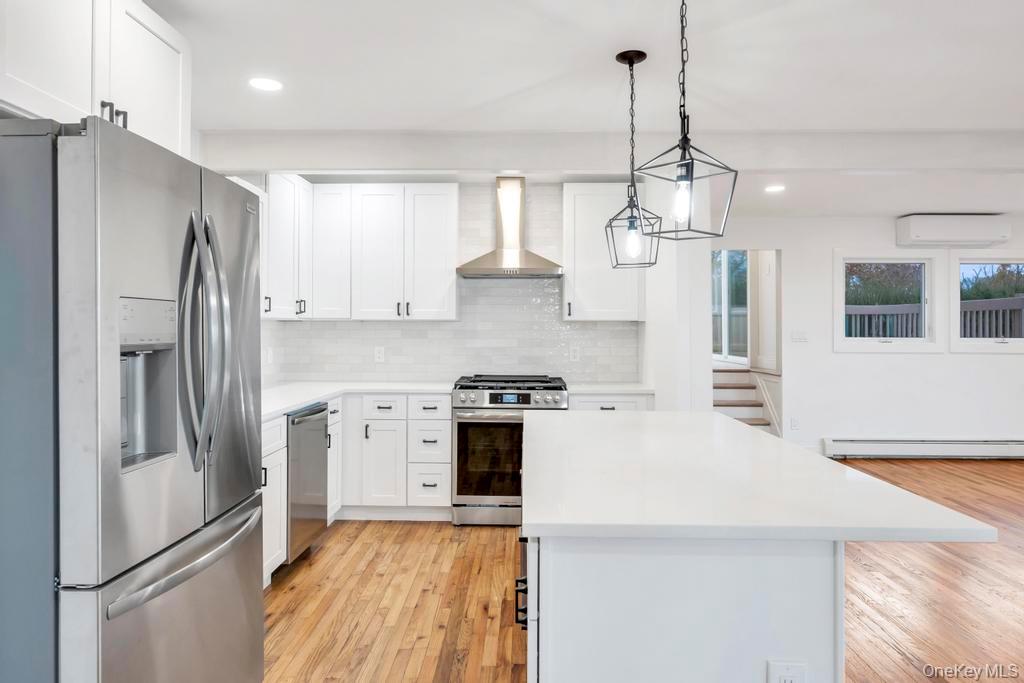 Experience coastal living at its finest in this fully renovated three bedroom, two bathroom waterfront home, perfectly positioned to capture sweeping, unobstructed views of the Long Island Sound. With 145 feet of private waterfront, this property offers an unmatched sense of peace, privacy, and connection to the shoreline. Inside, the home features an inviting open-concept layout flooded with natural light through an entire wall of oversized windows framing the water. The expansive living area flows effortlessly into the dining space and out to a wraparound deckāthe perfect setting for sunrise coffee, sunset dinners, or simply taking in the endless horizon. The kitchen has been thoughtfully updated with white shaker cabinetry, quartz countertops, stainless steel appliances, and a large center island, creating a clean, modern space ideal for cooking and entertaining. Throughout the home, refinished hardwood floors and fresh, contemporary finishes add warmth and sophistication. Both bathrooms have been stylishly renovated, featuring modern tilework, black matte fixtures, and crisp, minimalist design. The lower level includes bright, flexible living space ideal for a guest area, home office, or recreation room, complete with its own private entry. Step outside and the property truly becomes a retreat. The expansive deck offers commanding water views, while private access leads you directly to the beach below. Whether you are relaxing, hosting, or simply unwinding, every vantage point showcases the beauty of the Sound. Completely renovated and move-in ready, this home offers the perfect blend of modern design, comfortable living, and breathtaking natural surroundings. A rare opportunity to own a stylish, turnkey waterfront home where every day ends with a sunset over the water.