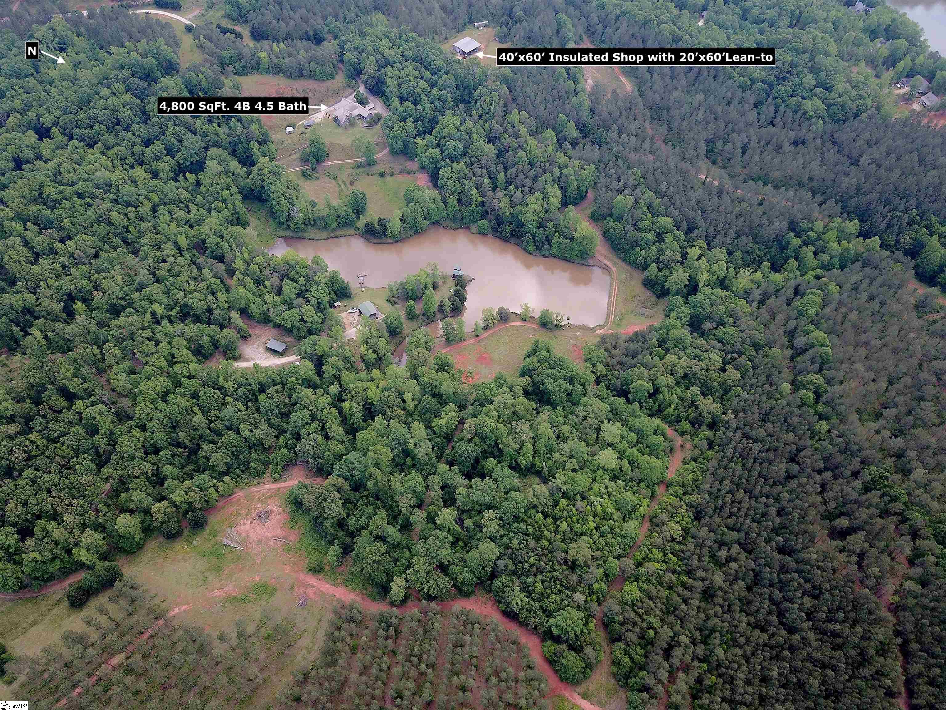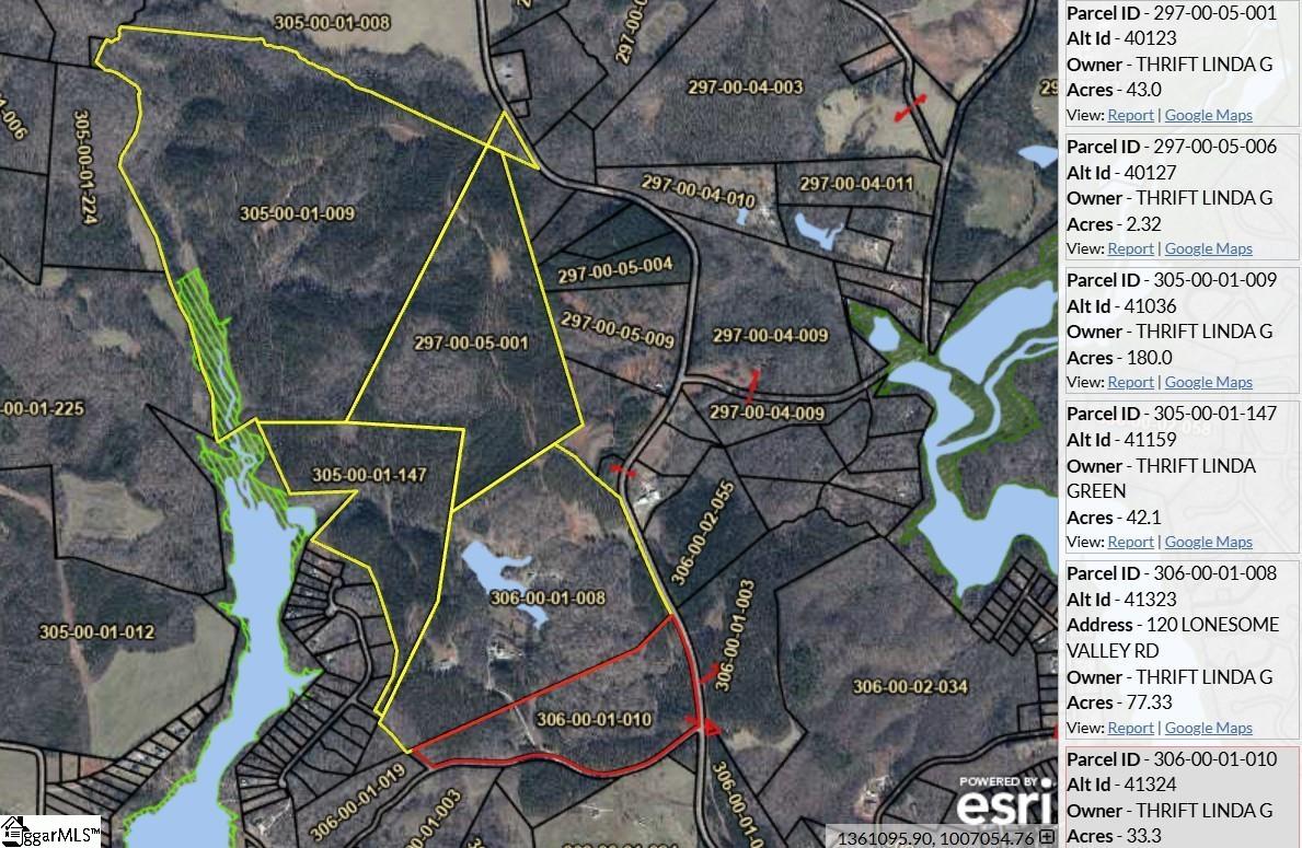 Some owner financing may be possible! Call Clyde for details, please. These 378 +/- Acre improved tracts are truly a very rare offering, located in the “Golden Corner” of South Carolina, Oconee County. This offering includes: 43. 0+/- Acres shown as TMS # 297-00-05-001 2. 32+/- Acres shown as TMS # 297-00-05-006 77. 33+/- Acres shown as TMS # 306-00-01-008 180+/- Acres shown as TMS # 305-00-01-009 42. 1+/- Acres shown as TMS # 305-00-01-147 33. 3+/- Acres shown as TMS # 306-00-01-010 And all improvements thereon. The improvements are almost too numerous to mention and include county water, a custom built, 3942 +/- Sq. Foot, 5-bedroom, 4 bath owner’s home circa 2001, a second, 1 Bedroom, 2 Bath “lake lodge” residence complete with full camper connection, and multiple outbuildings including a 2400+/- Sq. Ft. , red iron and steel shop with water and septic. 100’s of acres of 30+/- year, standing pine and hardwood timber are present. All timber, soil, & and mineral rights will be retained if owner financing is utilized for the purchase. Among the numerous features of the primary residence include the complete, single level living space design with Master on Main along with all the other bedrooms! Plus that 22’ X 21’ FLEX/FROG/bed/or specialty room upstairs with its own full bath. All the rooms downstairs feature high ceilings throughout including trays and crown as you would expect. There is almost no sheetrock, instead most of the interior walls are upgraded pine, popular, and cedar. In fact, all the closets feature true cedar plank walls. Floors are hardwood or tile throughout except for the FLEX. The Square footage of the home is per the plans and if significant, please measure. Those plans were modified from the 2-car garage plan shown to the 3 car version “as built” for instance. The heating (and cooling) is via electric heat pumps however there is also tertiary backup systems for heat via propane and wood. With over 2000’ road frontage on Dr. Johns Rd. , 2300’ road frontage on Lonesome Valley Rd. , and another 600+’ road frontage on Lake Breeze Way, ingress and egress onto these parcels is almost unlimited. Improvements on the site also includes a 2 ¾ +/- acre fishing and swimming pond with lake house (Measurements of the pond were made using Oconee County’s Parcel Viewer Measurement Tool - If significant, please verity). That pond is fed by 2 streams assuring a full pond even during the worst of drought conditions. Yet another PLUS: Lonesome Valley Rd. runs parallel with Mullins Ford Landing Rd. and Mullins Ford Landing is a public access point to Lake Hartwell and is basically one street away from your private estate! The boat launch is on the opposite side of the ridge line on Mullins Ford Landing Rd. so there should be no noise from that boat launch. There is city water on site with septic tanks for sewer (for all of the buildings, even the shop which has its own bathroom as well). No extra sewer fees and of course, no HOA or fees. An estate of this caliber and location do not come on the market very often! So come check it out today and make it yours before someone else does! From I-85 at Exit #1 (Hwy 11) Head North on SC Scenic Hwy 11 to LEFT on W Spearman Rd. Take a quick RIGHT on Mt. Pleasant Rd, then a LEFT on Blackjack Rd. RIGHT on Dr. Johns Rd. Entrance #1: Lonesome Valley Rd is the second LEFT past Mullins Ford Landing Rd. Entrance #2: The gated driveway to “The Lodge House” is located at 1944 Dr. Johns Rd. , about a quarter mile further north from Lonesome Valley Rd. and is about 1/10 a mile from that corner of the property! Entrance #3: There is also a third gated entrance about ½ mile further north on Dr. Johns Rd. See the tax map aerial photos for more details.