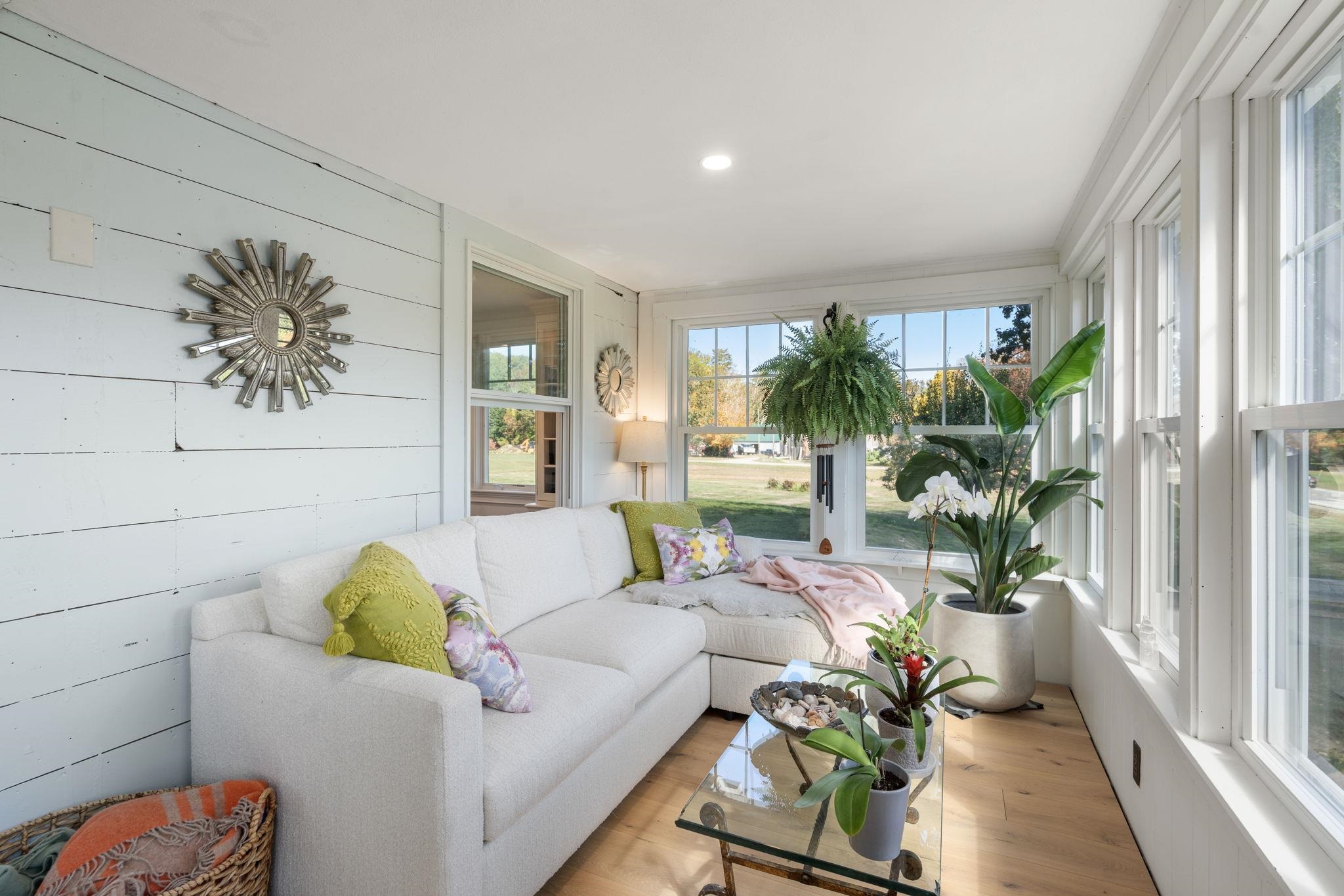 This stunning two-bedroom, two-and-a-half-bath antique restoration in Rye, NH seamlessly blends historic character with modern luxury. Thoughtfully redesigned, it features hard wood floors, exposed beams, and a light-filled open layout - and is delivered with luxury furnishings. The gourmet kitchen showcases custom cabinetry, high-end appliances, and quartz countertops, flowing effortlessly into elegant living and dining spaces. A quiet home-office and an enclosed porch add to the convenience of this home. Upstairs, both bedrooms offer luxury bedding and quiet comfort. The spa-inspired guest bath is artfully designed while the primary en-suite includes a custom walk-in closet and a serene retreat. Surrounded by professionally landscaped grounds and a stone patio, this home delivers refined coastal living with every contemporary comfort just minutes from Ryes beaches and downtown Portsmouth. Interior photos and additional details available upon request.