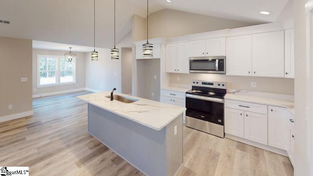 Close to an ACRE of Land!! Beautiful new construction Home in Gaffney! Open living concept. Split bedroom plan. 9 ft. ceilings, recessed lighting, LVP throughout home. Kitchen features SS appliances, Quartz counter tops, island for extra seating and entertaining! Great-room is open to kitchen and dining area. Large secondary bedrooms. Master features walk in closet. Private master bath with walk-in shower, water closet.