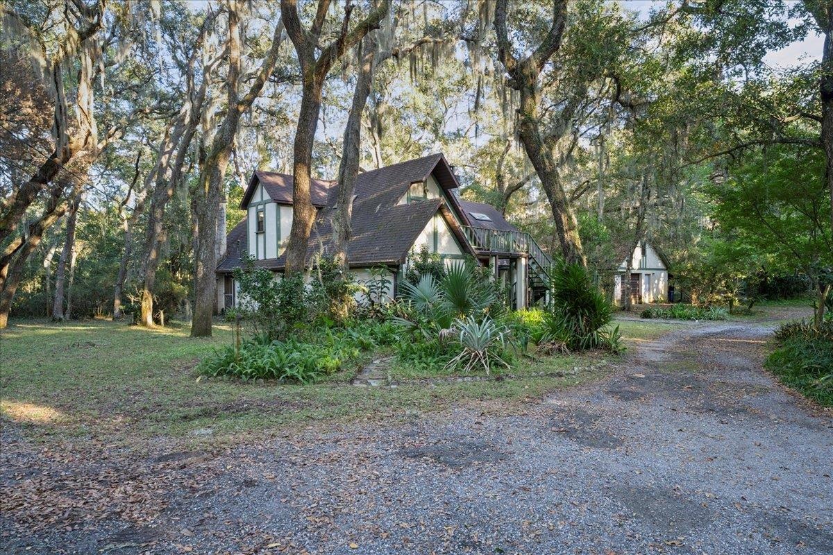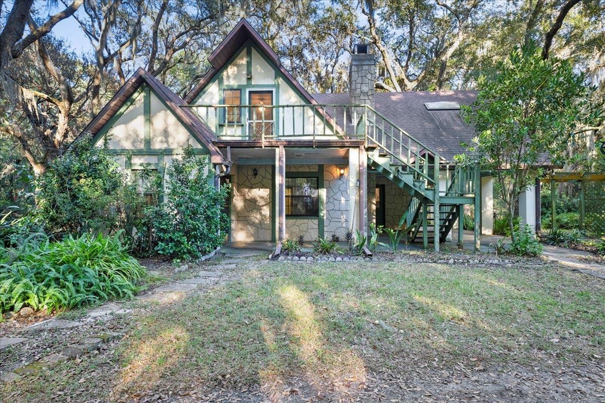 Discover a rare and remarkable property nestled beneath a canopy of live oaks in the heart of Saint Augustine. This three bedroom two and a half bath home sits on a serene wooded lot and radiates charm with cottage inspired architecture, stone accents, and the kind of character that feels straight out of a storybook. If you are searching for privacy, personality, and the chance to shape your ideal retreat, this property delivers from the moment you arrive. The interior features a spacious layout with a generous living area, built in cabinetry, and distinctive design touches throughout. The kitchen offers abundant counter space, an island, and ample storage, providing a perfect foundation for your dream culinary space. A spiral staircase leads to the upper level where additional living space opens to a private balcony overlooking the treetops. The grounds are just as special. A covered breezeway, multiple outdoor sitting areas, a detached garage or workshop create endless opportunities for hobbies, storage, or future expansion. Your private retreat awaits at the end of a quiet cul de sac on acres of land. Properties with this level of space and seclusion, yet only minutes from the city’s beaches, restaurants, and historic attractions, are exceptionally hard to find. Country Creek Lane offers a setting buyers wait for, complete with mature oak canopies, wide open green space, established vegetation, and fruit trees throughout the property. The home itself provides solid bones and timeless appeal, giving you a canvas to renovate or expand to match your vision. Whether you dream of a garden, workshop, guest house, or simply room for recreational toys, the land offers endless potential. Here you enjoy the peace of country style living with the convenience of being only fifteen minutes from everything that makes Saint Augustine beloved. Privacy and usable acreage this close to town is rarely available, making this a true standout for anyone seeking space, nature, and possibility in one address. Country Creek Lane is ready for its next chapter. Explore the gardens, entertain outdoors, or simply enjoy nature right outside your door. With quick access to shopping, dining, medical facilities, and the beaches and historic downtown, this is a unique opportunity to restore and personalize a truly special property. Bring your vision and make this enchanting retreat your own.