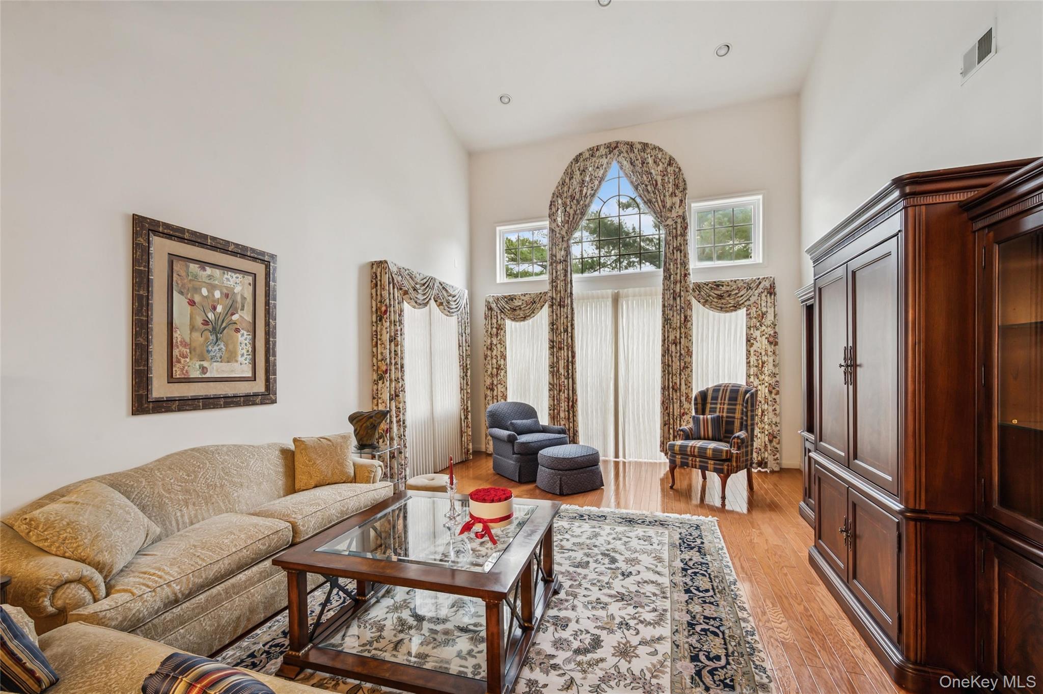 Enjoy Country Club living in this spacious Mirasol model townhouse located in The Greens at Half Hollow. This home offers 3 bedrooms, 2 1/2 bathrooms and a stunning main-level layout featuring a grand entryway, pristine wood floors, and a primary suite with a tray ceiling, three walk-in closets, a large bathroom, and a convenient laundry area. The great room boasts vaulted ceilings, floor-to-ceiling windows, and a sliding door leading to the patio. The kitchen includes granite countertops. The second floor features a loft area, two additional bedrooms, and a full bath. In addition to a 24-hour attended gatehouse and on-site security patrol, the community offers exceptional amenities: a beautiful clubhouse, indoor pool, gym, spa, sauna, steam room, card room, restaurant, library, concierge services, tennis courts, outdoor pool, walking trails, and optional golf. This is an adult community with a minimum age requirement of 55 and low taxes.
