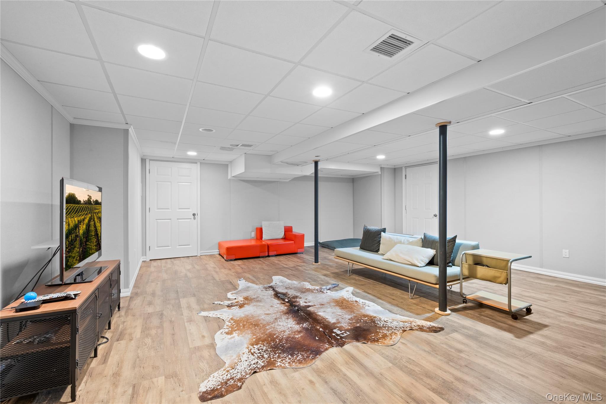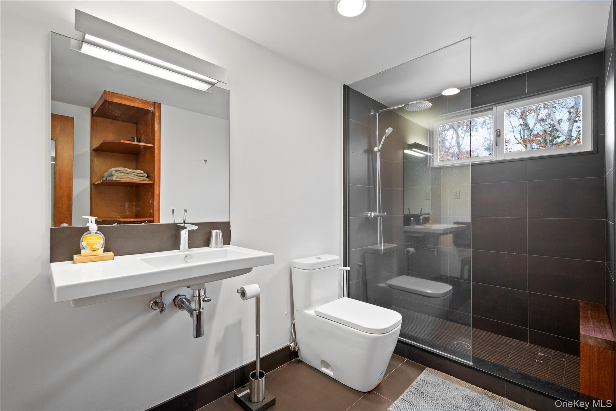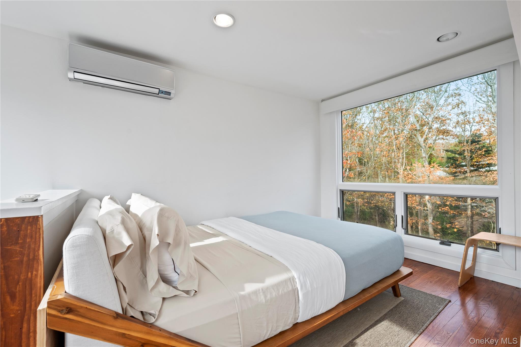 Beautifully situated on a quiet cul-de-sac residential lane, close to the shops of Amagansett, as well as the ocean beach, this bright and immaculate contemporary house is ideal. The 1. 2-acre grounds are well-landscaped, offering privacy to the large sun deck and heated saltwater swimming pool. Bathed in natural light, the interior of the house features a living room with fireplace, high ceiling and glass doors to the poolside patio. The kitchen has been recently renovated with soapstone countertops, stainless steel farm sink, Bosch appliances, Bertazzoni refrigerator, and an elegant dining room. The four bedrooms and three full baths include a first-floor primary ensuite with fireplace and a wall of glass sliding doors leading out to the deck and pool area. The third floor offers the perfect space for a home office with distant ocean views. The finished lower level offers a large media/rec room, laundry room, and gym with egress. Outside, there is also a detached garage, lovely pool house with full bath and wet bar, and an outdoor shower.