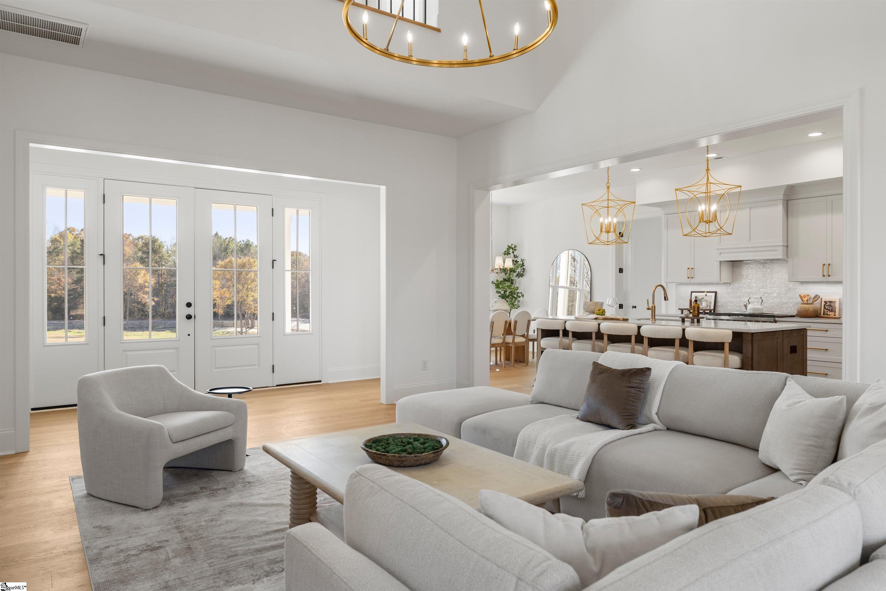 MOVE-IN READY NEW CONSTRUCTION ON ±9 ACRES! ||| Have you been dreaming of a brand-new, custom-built home on acreage? This stunning 5-bedroom, 4-bath residence is set on nearly 9 private acres in the new Chapman Branch Farms community, combining peaceful country living with thoughtful design and high-end finishes. An oversized front porch welcomes you into a well-appointed foyer and a highly functional floor plan designed for both everyday living and entertaining. The Great Room features a soaring vaulted ceiling, built-in shelving, and a gas fireplace as its centerpiece. Just beyond, the chef’s kitchen showcases Taj Mahal quartzite countertops, an expansive island with bar seating, upgraded stainless steel appliances, generous storage, and a charming breakfast nook overlooking the private backyard. A wall of French doors floods the main living spaces with natural light and opens to a covered back patio complete with a wood-burning fireplace, the ideal setting for outdoor gatherings or quiet evenings enjoying the surrounding acreage. The main-level primary suite is a true retreat, featuring a custom walk-in closet and a spa-inspired bathroom with a freestanding tub. Also on the main floor is a secluded home office, a guest suite, a spacious mudroom and laundry room, and convenient access to the oversized 3-car garage. Upstairs, you’ll find 3 additional bedrooms with excellent closet space and 2 full bathrooms. A large flex room above the garage provides endless possibilities for a second office, media room, playroom, or hobby space. The nearly 9-acre setting offers exceptional privacy, usable land, and room to roam, explore, or create your ideal outdoor lifestyle. A picturesque swing beneath an oak tree and an existing chicken coop add charm and character, while the front and back porches provide multiple spaces to relax, enjoy morning coffee, and take in the peaceful surroundings. Enjoy the best of both worlds with private acreage within a welcoming community, just minutes from City Scape Winery and Happy Cow Creamery, and approximately 30 minutes from downtown Greenville.