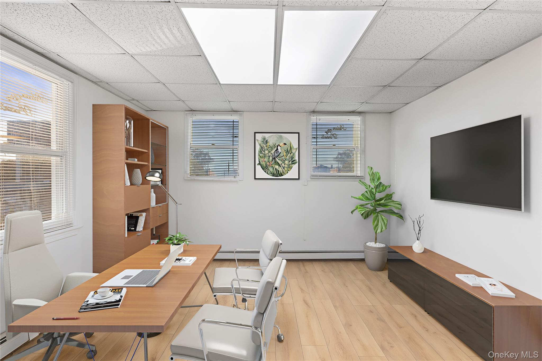 Discover a versatile three-story commercial office building with a full basement with outside entrance. Offering 3, 600 sq ft of flexible space ideal for professional, medical, law office, physical therapist, or other service-based businesses. The property features a well-maintained exterior with stone and siding accents, ample natural light throughout, an office-style kitchen, and a layout that supports both private offices and open workspaces. A standout advantage is the private on-site parking in the rear, providing convenience for both clients and staff. Situated in a prime Hicksville location near major roadways, retail centers, and transportation, this building offers excellent visibility, accessibility, and adaptability for a growing or established business. **Also open to leasing the 1st floor and the basement** **Building can be delivered vacant or with paying tenant on 2nd floor. **