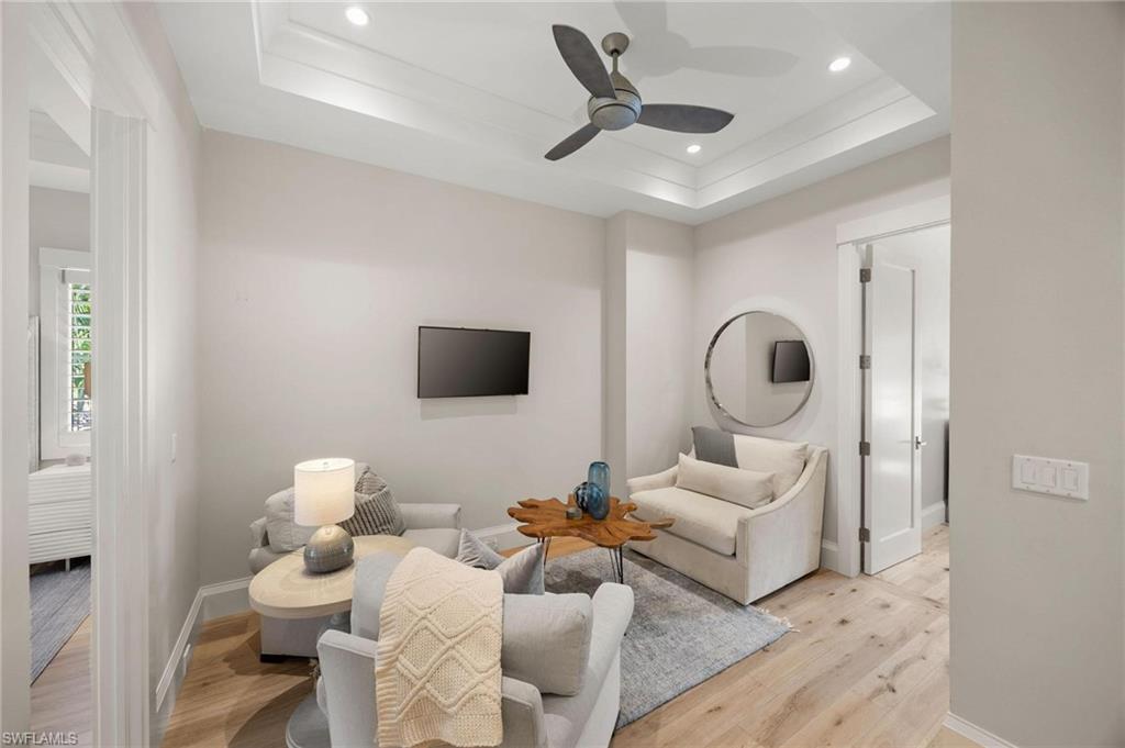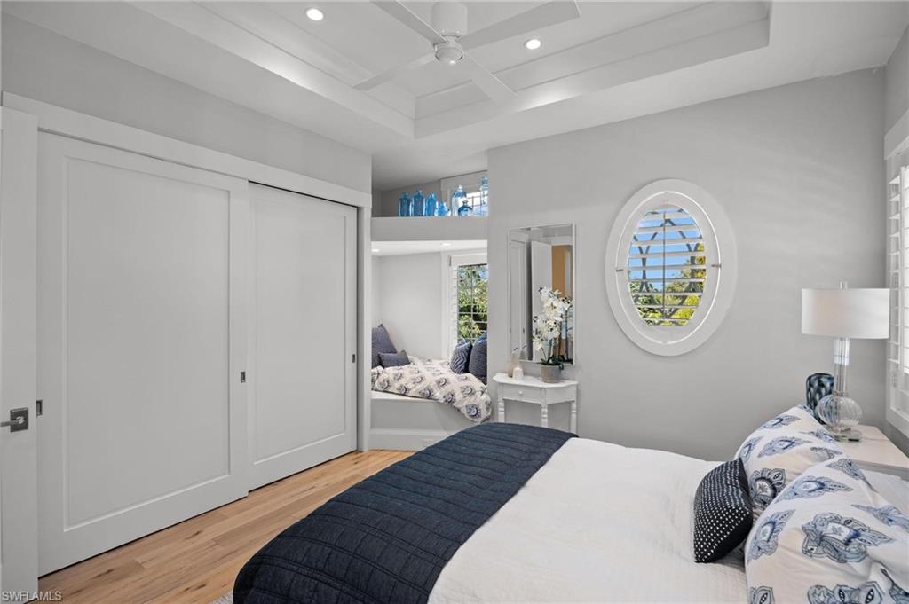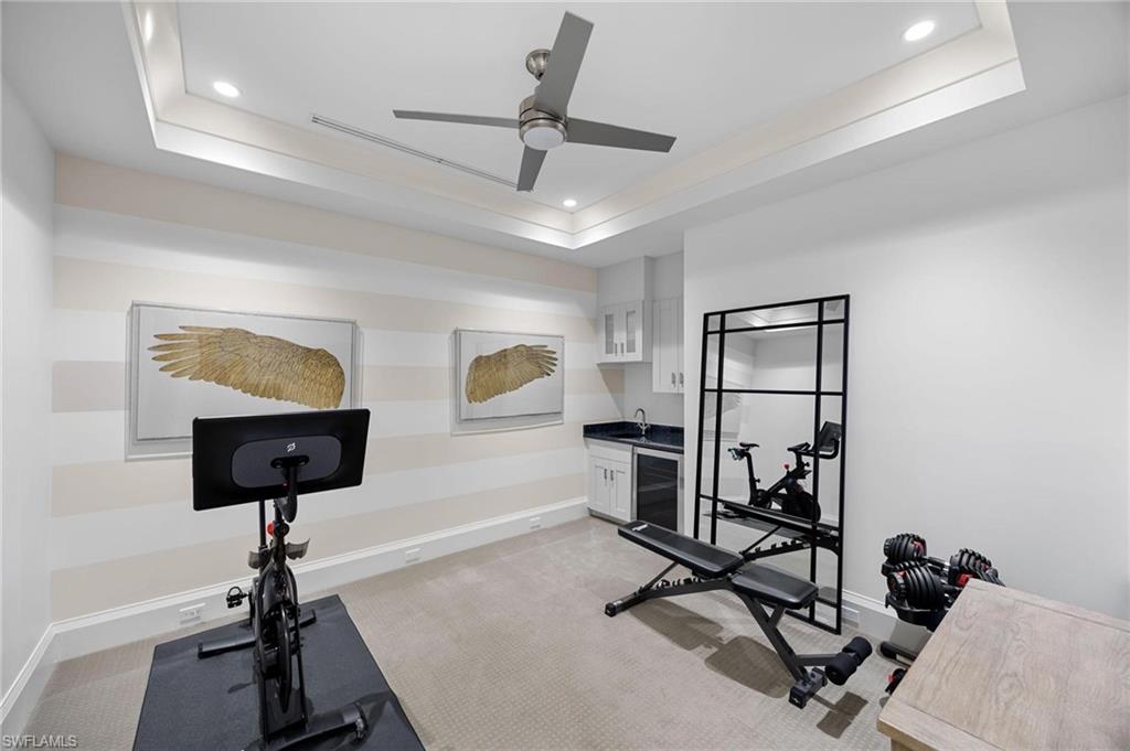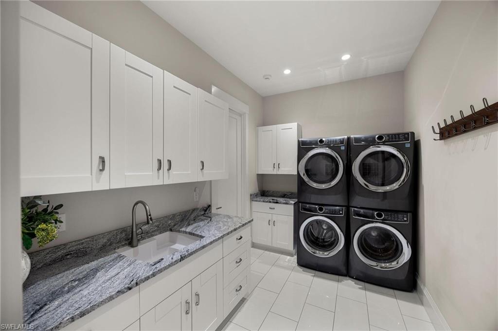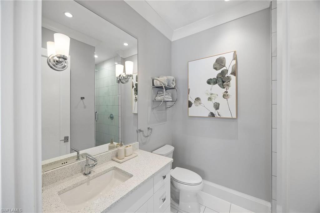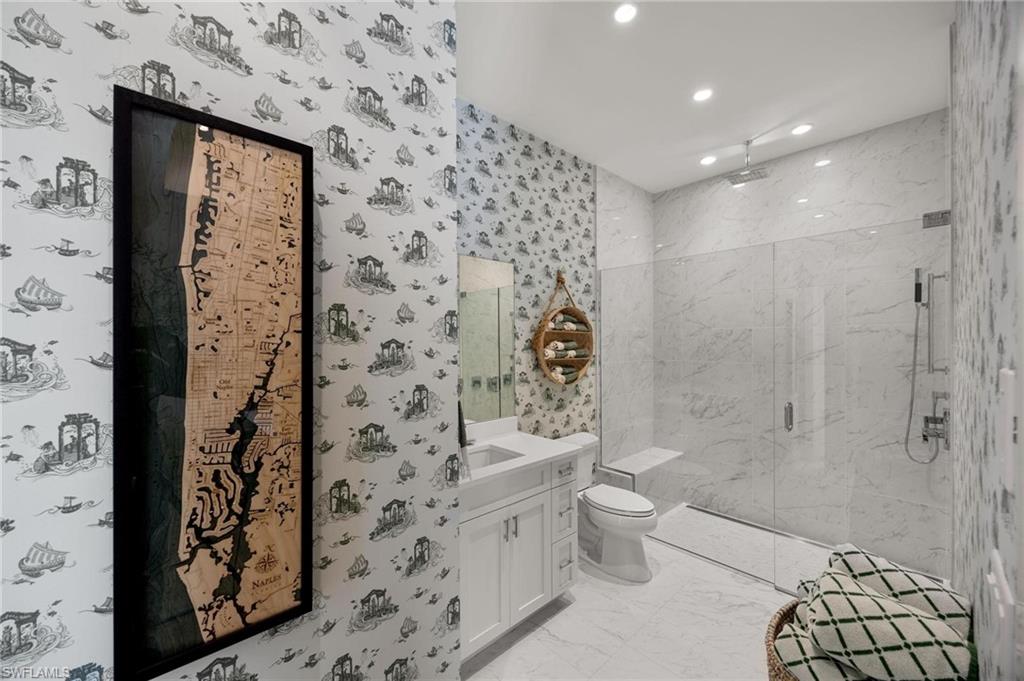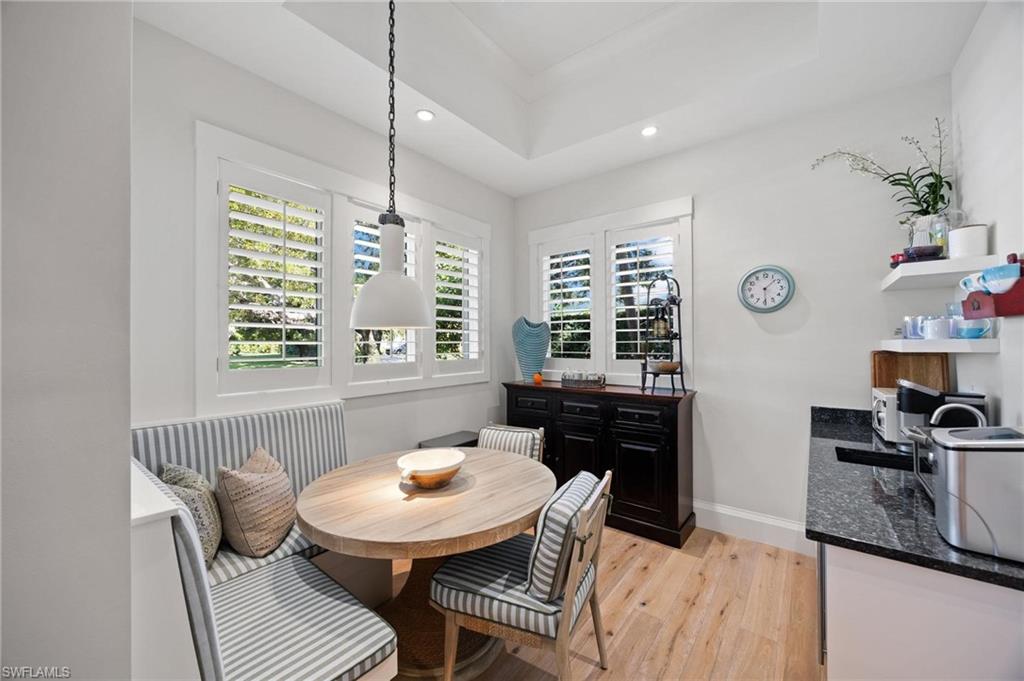 Just blocks from Naples’ famous sugar sand beaches and the charm of downtown, this elegant Olde Naples residence sits on an oversized southern exposure corner lot within the highly desirable X500 flood zone. This custom home combines timeless design, modern craftsmanship, and a premier location to deliver an exceptional living experience. The five bedroom, seven and a half bath residence features a climate controlled four car garage with alley access, a circle driveway, mature manicured landscaping, and an oversized front porch with two charming porch swings that create a warm and welcoming sense of arrival. Inside, the light filled foyer opens to a spacious great room with custom built-in cabinetry and expansive glass doors leading to the covered lanai. The outdoor living space is ideal for entertaining year round, with a gas fireplace, outdoor kitchen, and a heated pool with sun shelf surrounded by lush tropical landscaping, elegant landscape lighting, and a rarely available large fenced in artificial grass yard perfect for outdoor activities many can only dream of in Old Naples. At the heart of the home, the gourmet kitchen impresses with a large center island, paneled Sub-Zero refrigerator and freezer, Wolf gas cooktop, double wall ovens, wine chiller, beverage center, and walk-in pantry. A custom breakfast banquette and formal dining room framed by French doors create a seamless indoor outdoor flow, perfect for gatherings of any size. The first floor primary suite is a private retreat offering two walk-in closets, a morning bar, and a spa inspired bath with dual vanities, a soaking tub, and a glass enclosed shower with bench seating and multiple shower heads. Four additional ensuite bedrooms provide comfort and privacy, including a separate guest casita with private entrance, kitchenette, and custom seating area. Additional features include a study, a flex or exercise room with wet bar, a loft, and a laundry room with built-in cabinetry, sink, and dual stacked washer dryer sets. The elevated homesite provides a rare combination of a large yard and resort style pool, a unique feature in Olde Naples. Designer finishes throughout include wide plank wood flooring, custom millwork, detailed ceilings, plantation shutters, and abundant storage. This remarkable home offers the best of Naples living, style, sophistication, and location. A sanctuary of elegance, innovation, and effortless luxury designed for those who seek the extraordinary. A must see!