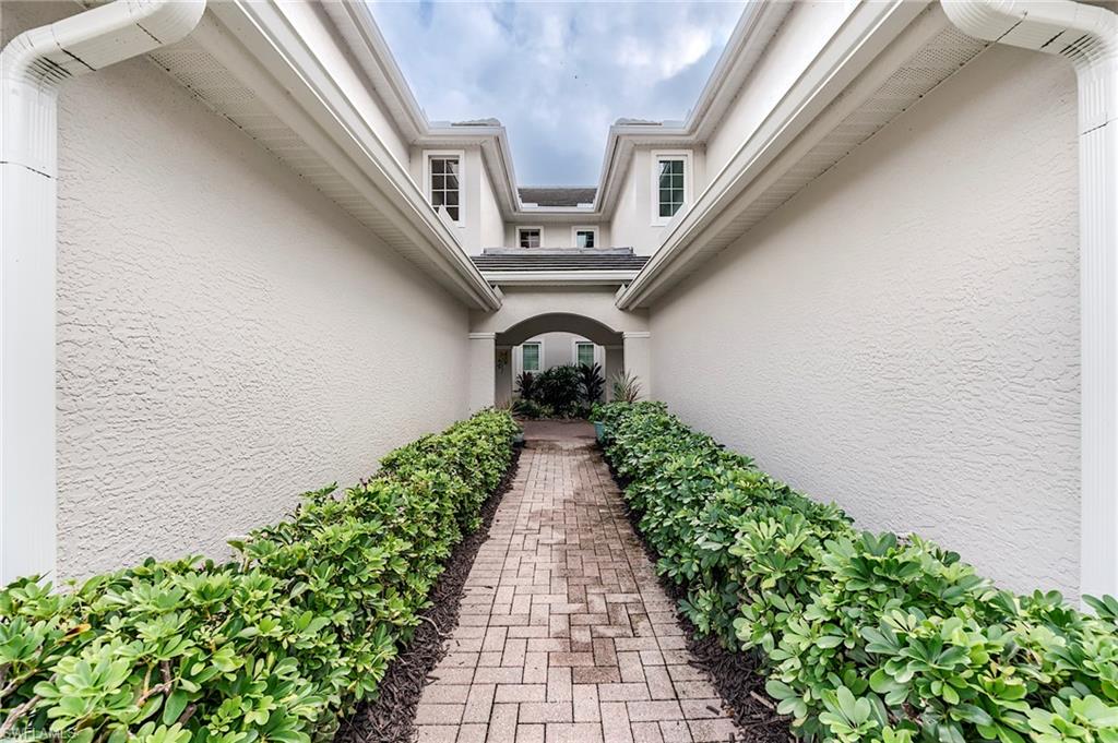 Absolutely amazing long lake, golf, and nature views from this PREMIER CUL-DE-SAC location in the exclusive Shadow Wood at The Brooks community. This residence offers one of the longest, most breathtaking panoramic views—a stunning picture straight down the fairway framed by shimmering lake water, lush littoral grasses, and a beautiful oak tree, with ducks gliding along the shoreline. This end unit is uniquely set back and angled, creating exceptional privacy where you scarcely see another home. The setting feels like an island retreat with mile-wide views.