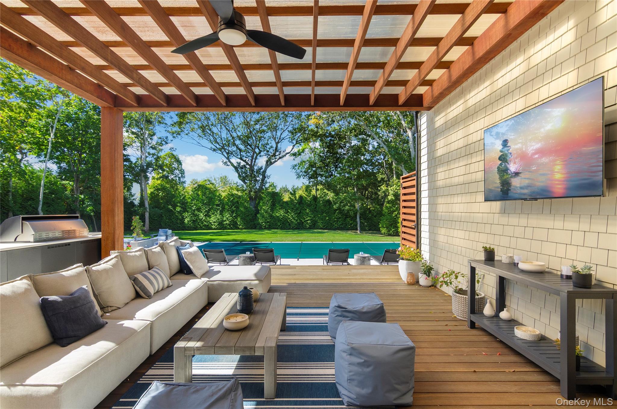 A modern sanctuary in Quogue: Discover an exquisite fusion of modern design, advanced technology, and effortless coastal living in this exceptional residence. Encompassing approximately 6300 ft. ² across three impeccable finished levels, this smart home has been crafted for those who seek refined luxury without compromise. At its core, the residence is powered by state-of-the-art geothermal heating and cooling system, ensuring comfort and remarkable efficiency year-round. A sophisticated, smart home infrastructure allows, effortless control of lighting, climate, security, and entertainment with a touch of a button. the heart of the home has a gourmet chef kitchen appointed with top-tier appliances, custom millwork, and sleek designer finishes. It’s fluid connection to the homes expansive living and dining spaces creates an atmosphere ideal for hosting or simply unwinding in understated elegance. Floor to ceiling glass invites, natural light throughout, while curated, indoor outdoor transitions, lead to a heated saltwater gunite pool, framed by lush landscaping for complete privacy. With six luxurious bedrooms, all en suite, multiple lounge and recreation areas, and a two car garage, this retreat offers exceptional comfort for both intimate, living and stylish, entertaining. Quogue ocean Private beaches And super low taxes represents a rare offering.
