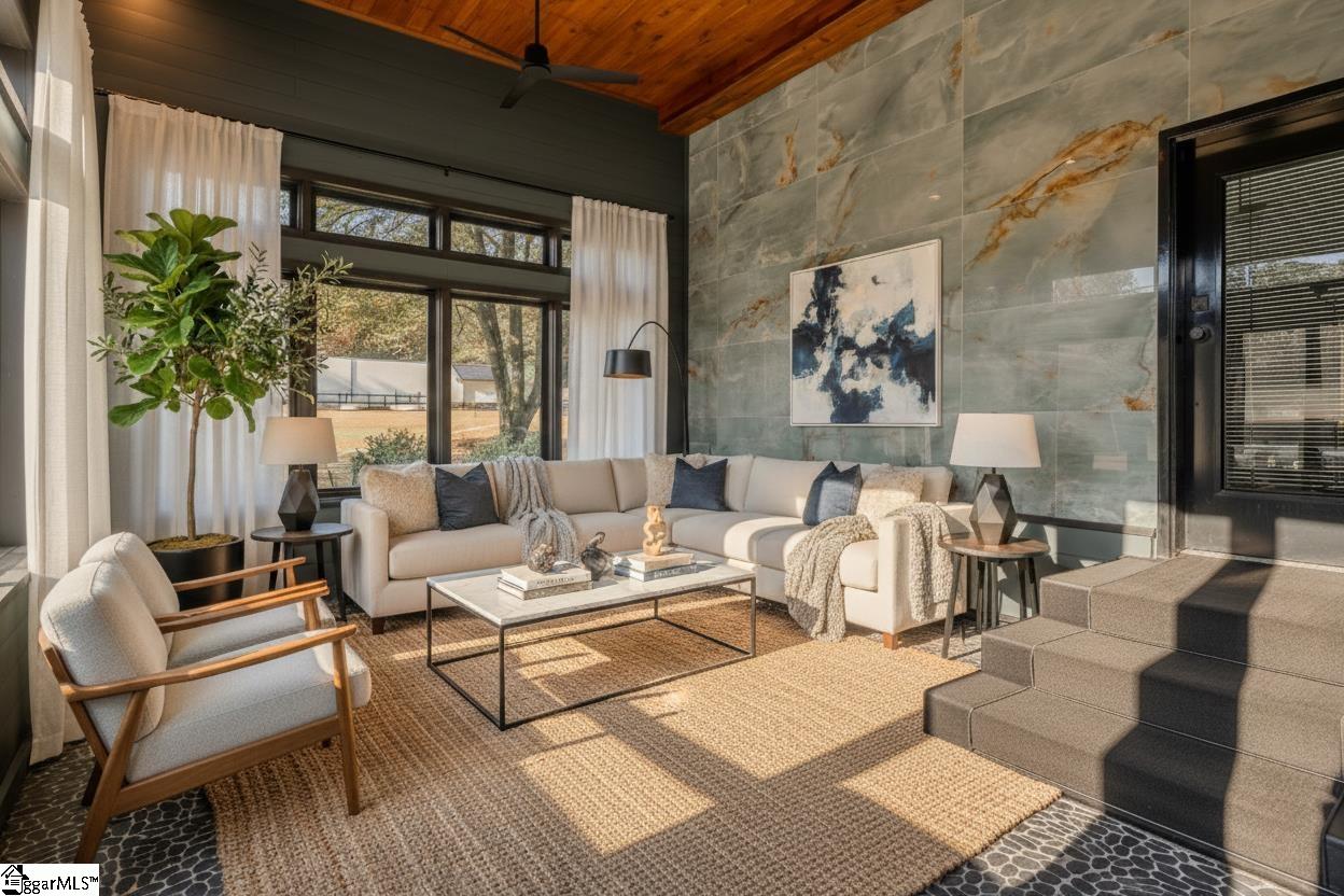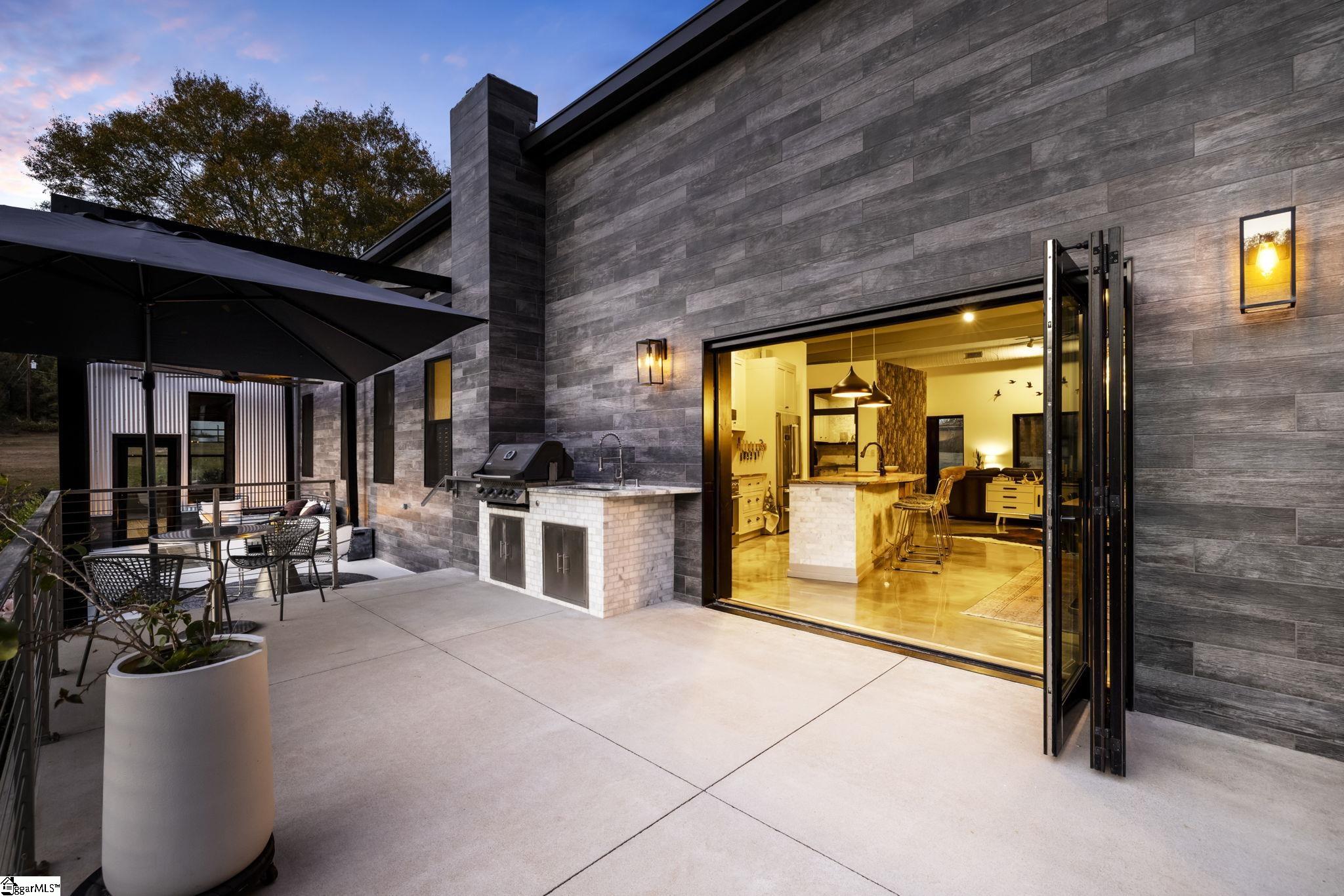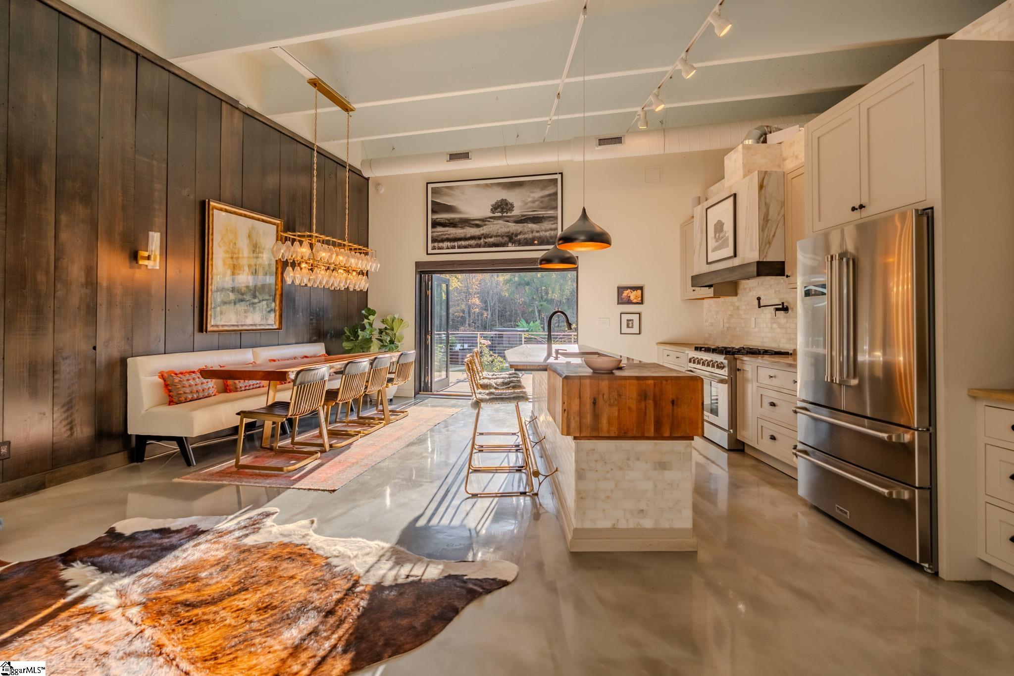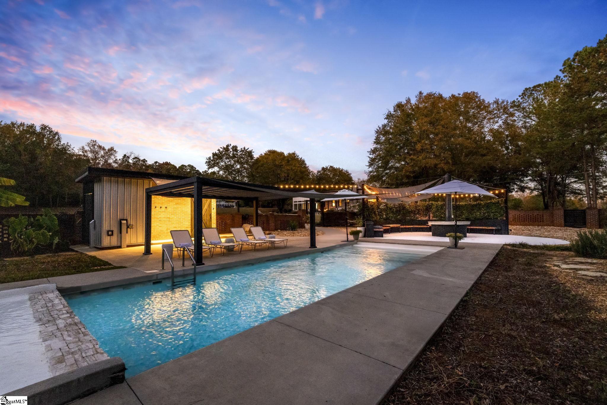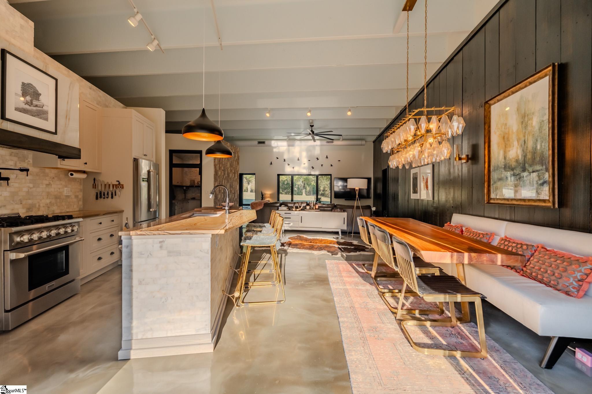 A truly exceptional property blending industrial heritage with modern luxury, this 13-acre retreat was originally a farm equipment and hay storage warehouse and has been completely transformed into a stunning designer residence, expansive workshop, and resort-style pool sanctuary. Just 10 miles from Clemson and Anderson and 30 minutes from Greenville via I-85, it offers a rare balance of seclusion, sophistication, and convenience. Every element of the property tells a story of craftsmanship and creativity. The main residence, designed with input from SCAD alumnus Don Chapman, pairs commercial-grade structure with warm, modern design. Subtly angled walls, 14-foot ceilings, and custom Sierra Pacific windows fill the home with natural light, while pearlescent epoxy floors, exposed spiral ductwork, and a 38-foot hand-planed longleaf pine accent wall create an unforgettable sense of style. The open-concept kitchen and living space form the heart of the home, featuring an 11-foot sandstone island incorporating a 19th-century family chopping block, Italian Carrara marble tile, a Thor six-burner gas range with pot filler, restaurant-grade ventilation, and a butler’s pantry with wine fridge—ideal for effortless entertaining and everyday living. The primary suite feels like a private retreat with its hardwood ceiling, custom lighting, and spa-inspired bath complete with a freestanding soaking tub, dual shower with river rock floor, heated tile, and custom West Elm vanity. Guest spaces each offer distinct charm through designer wallpaper, curated finishes, and abundant natural light. Thoughtful details continue throughout the home—from the utility room with grooming station and penny tile floors to the four-season room/3rd Bedroom wrapped in windows with shiplap walls, a hand-planed ceiling, and its own mini-split. The double-deep garage functions as both gym and workspace with SwissTrax flooring, dual mini-splits, a smart door system, and built-in ice maker. Seamless indoor-outdoor living expands through a tri-fold door opening to a two-tiered patio and outdoor kitchen with marble tile base, granite counters, and stainless appliances. Raised herb beds, a firepit, and custom steel railings lead to a 13’ x 36’ saltwater pool with tanning ledge, marble border, and volcanic stone accents. Surrounded by lush landscaping, a brick privacy wall, cedar pergola, and a pool house with half bath and outdoor shower, this space feels like a private resort. Thoughtfully designed walkways connect the home, workshop, and pool, while a one-mile private trail winds through the grounds—perfect for walking, biking, or ATV adventures. Backing up to 350 acres of private farmland, the property enjoys unmatched privacy and uninterrupted views. The 5, 000-square-foot CMU workshop offers incredible versatility with 14-foot ceilings, new TPO roofing, roll-up doors, and a dedicated half bath, ideal for creative pursuits, car storage, or equipment use. A 50’ x 60’ fenced garden with raised beds, irrigation, and potting shed enhances the property’s self-sufficient lifestyle appeal. Every inch of this property reflects thoughtful design and lasting quality—from high-efficiency HVAC and Starlink internet to whole-house filtration and custom craftsmanship throughout. This is a place where industrial strength meets refined living—a private sanctuary offering modern luxury, creative freedom, and a deep connection to nature just beyond the city. Some properties impress. A few inspire. Almost none feel like they were waiting for the right person. This one does. For the buyer seeking acreage without isolation, luxury without pretense, and a home that fuels imagination—you’ve just found it.