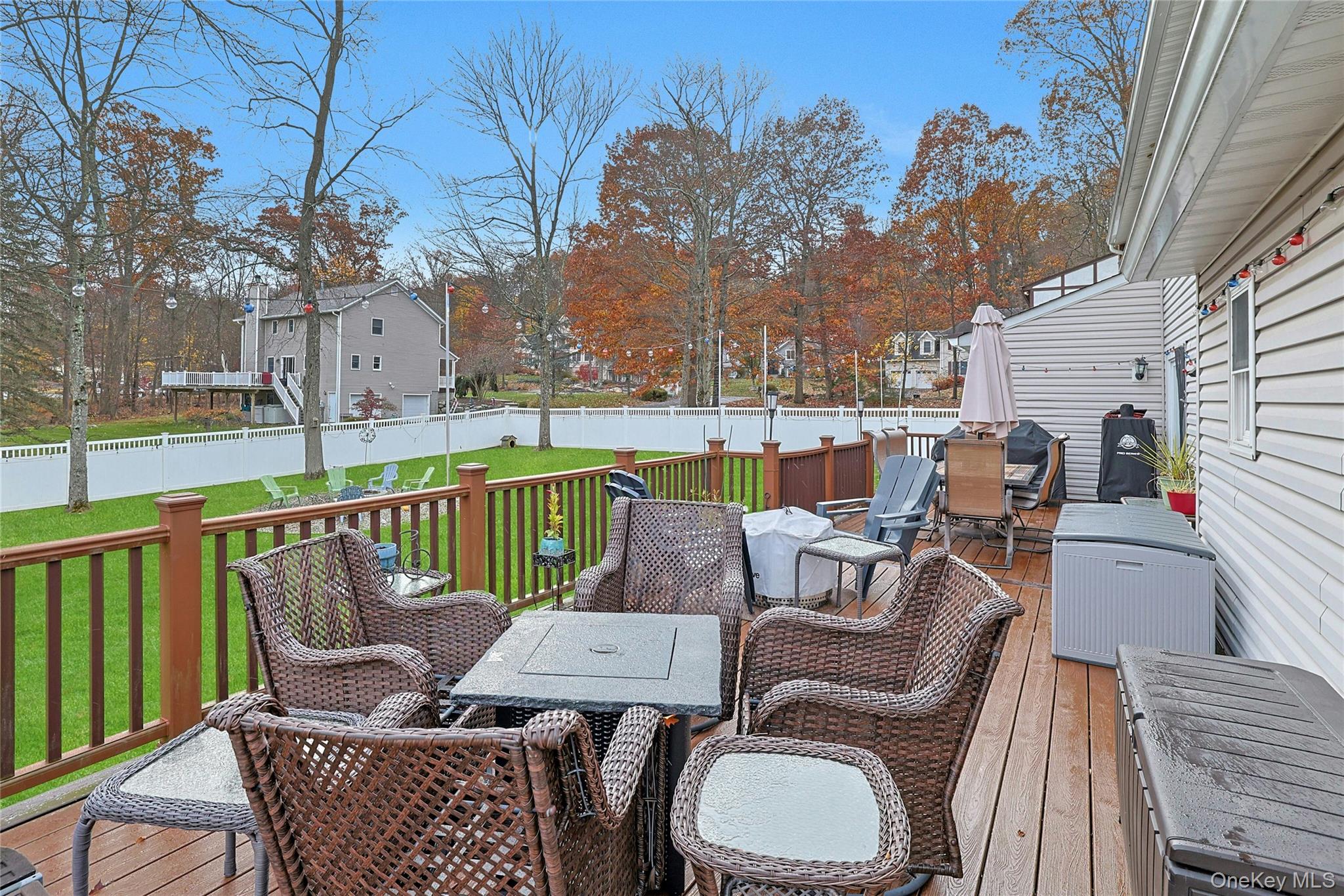 "PRETTY ON PELHAM" - At long last, the home you've been waiting for has arrived. Nestled on a quiet residential street in the heart of Nanuet - renowned for its Blue Ribbon, award-winning school, this beautifully maintained five bedroom residence offers nearly 2, 800 square feet of comfort, character, and undeniable warmth, all just 35 minutes from NYC. From the moment you cross the threshold of 30 Pelham Avenue, the home unfolds with a serene, inviting energy: expansive yet intimate, refined yet deeply livable. It is the kind of place where life settles in effortlessly, where holidays stretch happily from room to room, and where laughter travels easily from the kitchen to the fireside. The main level sets the tone for both everyday living and inspired entertaining. Oversized, flexible spaces flow naturally from one to the next: an additional bonus room perfect for a dining alcove, a bar lounge, or a cozy reading nook; an updated, modern eat-in kitchen that anchors the home with its openness and connection to both the living and family rooms; and a highly convenient first floor bedroom and full bath ideal for guests or multi-generational living. Sunlight drifts in from every angle, enhancing the home's atmosphere of effortless comfort. Sliding doors off the kitchen extend the living experience outdoors, opening to a long deck that overlooks a fully fenced level 0. 34 acre yard, a true backyard sanctuary. Here, summer days stretch into evening barbecues, little ones and pets roam freely on the open lawn, and nights end beneath the stars gathered around a warm fire pit. . . an oasis for memory-making. Upstairs, the tranquil primary suite offers a welcome retreat with its renovated bath and generous walk-in closet. Three additional well-proportioned bedrooms and a dual-sink hall bath provide thoughtful space for guests alike, with one bedroom perfectly suited as a home office or playroom. Below it all, a full unfinished basement offers yet another layer of possibility: an expansive space ideal for storage with incredible potential to evolve into additional bedrooms, a home gym, creative studio, or a spacious home office. Every corner reflects the meticulous care and updates the home has received, including a newer roof and impeccable curb appeal that elevates its presence from the moment you arrive. Conveniently located minutes from shopping, dining, major highways, public transportation, and just 35 minutes from the heart of New York City. More than a house, 30 Pelham Avenue is a home that feels both expansive and grounding, luxurious yet familiar. Experience it while you can as places this special rarely become available. . .